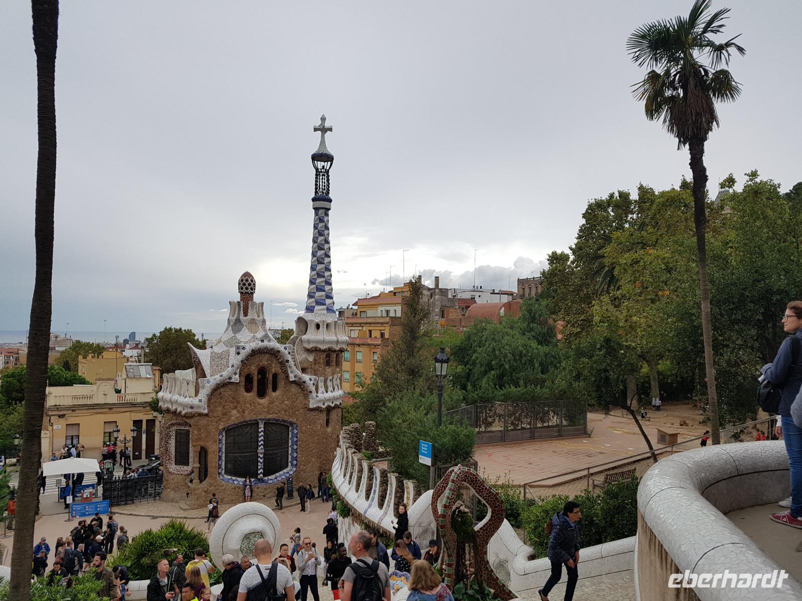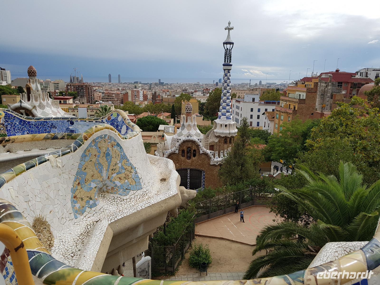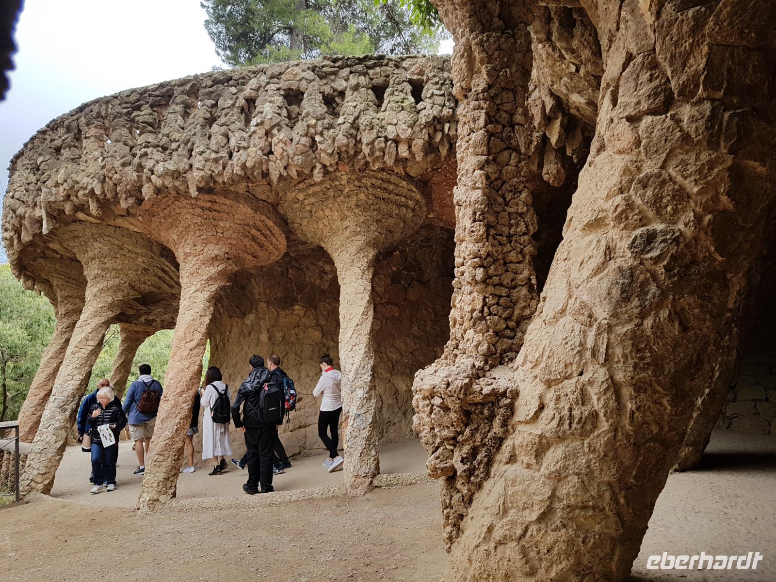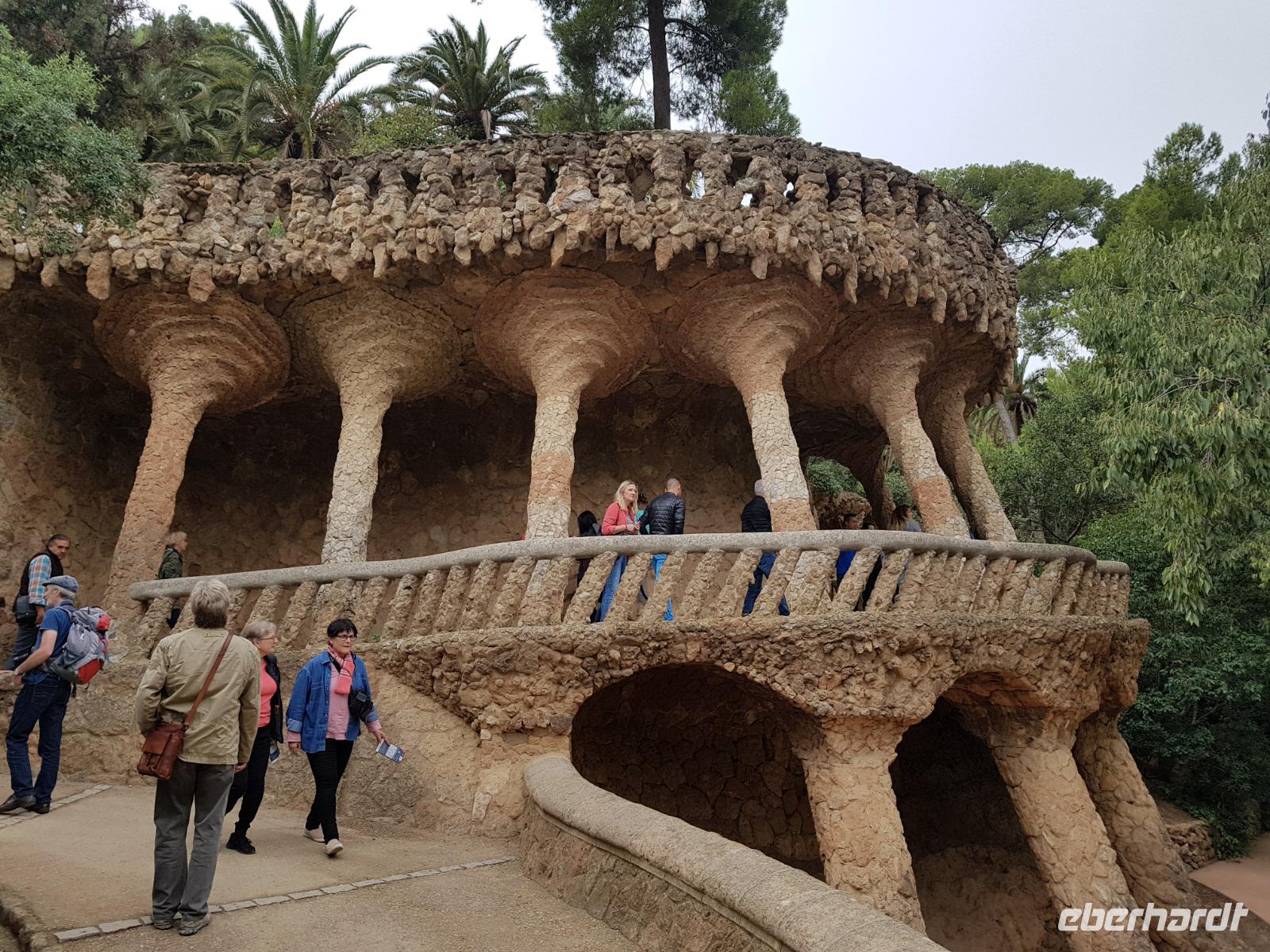 Von hier fuhren wir wieder mit dem Bus zum Besuch des Park Güell. Der Park war von den englischen Parkanlagen inspiriert und wurde zwischen 1900 und 1914 erbaut. Eusebi Güell, Industrieller und Namensgeber der riesigen Parkanlage, beauftragte Gaudi, ein Wohngebiet mit über 55 Villen zu gestalten. Dieses Vorhaben scheiterte jedoch und somit ist die Anlage uns heute als Touristen mit Eintrittskarten zugänglich. Die Anlage beeindruckt vor allem mit der schlangenförmigen Sitzbank aus Mosaiken. Uns gefällt es ser der Salamander-Brunner. Ist das beliebte Fotomotiv und befindet sich auf einem riesigen, von Säulen getragenen, Platz.