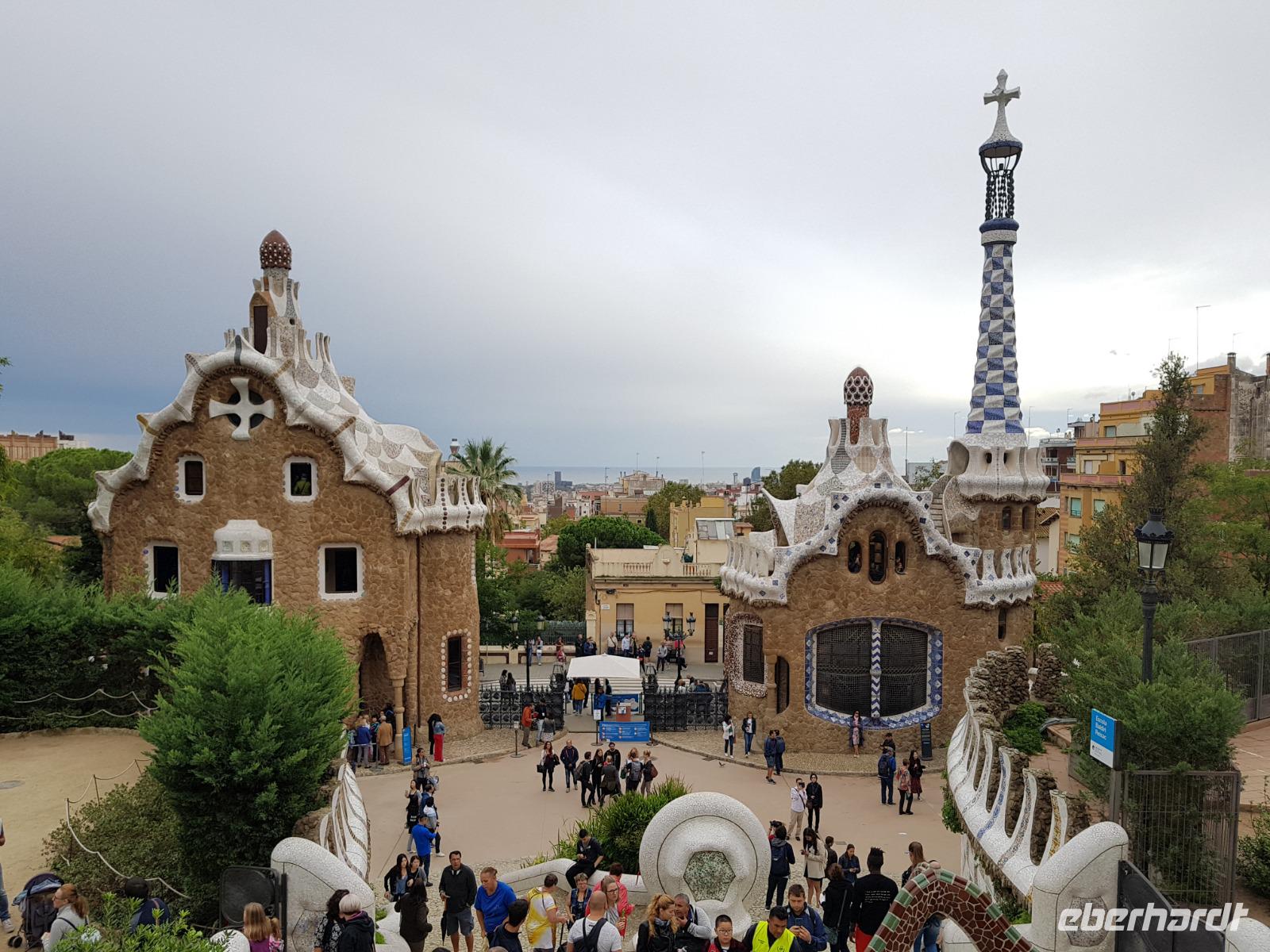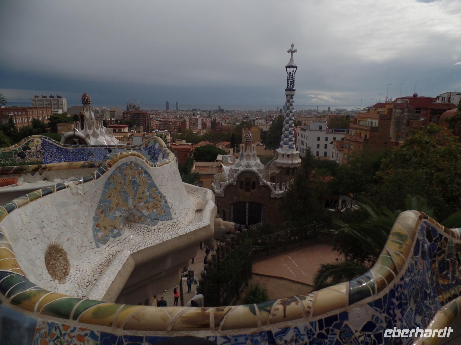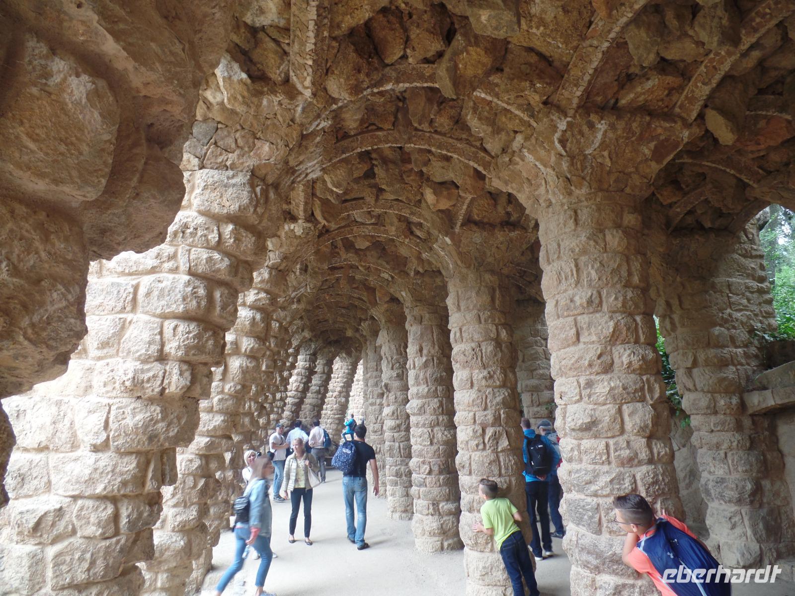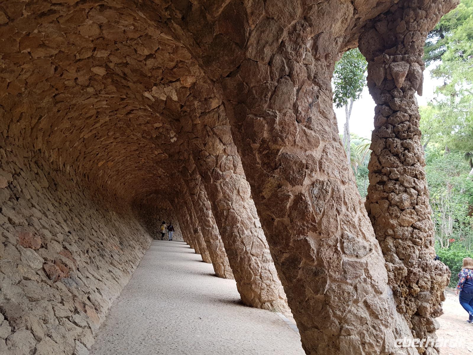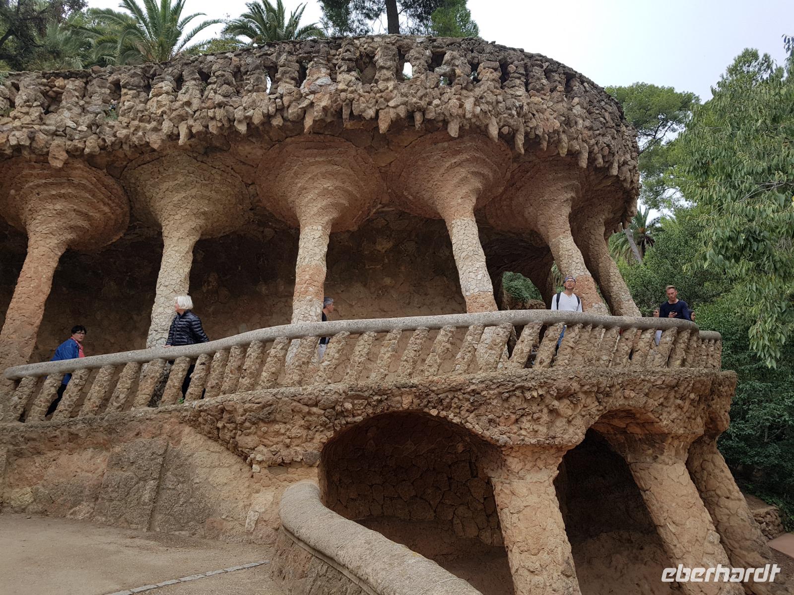 Von hier fuhren wir wieder mit dem Bus zum Besuch des Park Güell. Der Park war von den englischen Parkanlagen inspiriert und wurde zwischen 1900 und 1914 erbaut. Eusebi Güell, Industrieller und Namensgeber der riesigen Parkanlage, beauftragte Gaudi, ein Wohngebiet mit über 55 Villen zu gestalten. Dieses Vorhaben scheiterte jedoch und somit ist die Anlage uns heute als Touristen mit Eintrittskarten zugänglich. Die Anlage beeindruckt vor allem mit der schlangenförmigen Sitzbank aus Mosaiken. Uns gefällt es ser der Salamander-Brunner. Ist das beliebte Fotomotiv und befindet sich auf einem riesigen, von Säulen getragenen, Platz.
