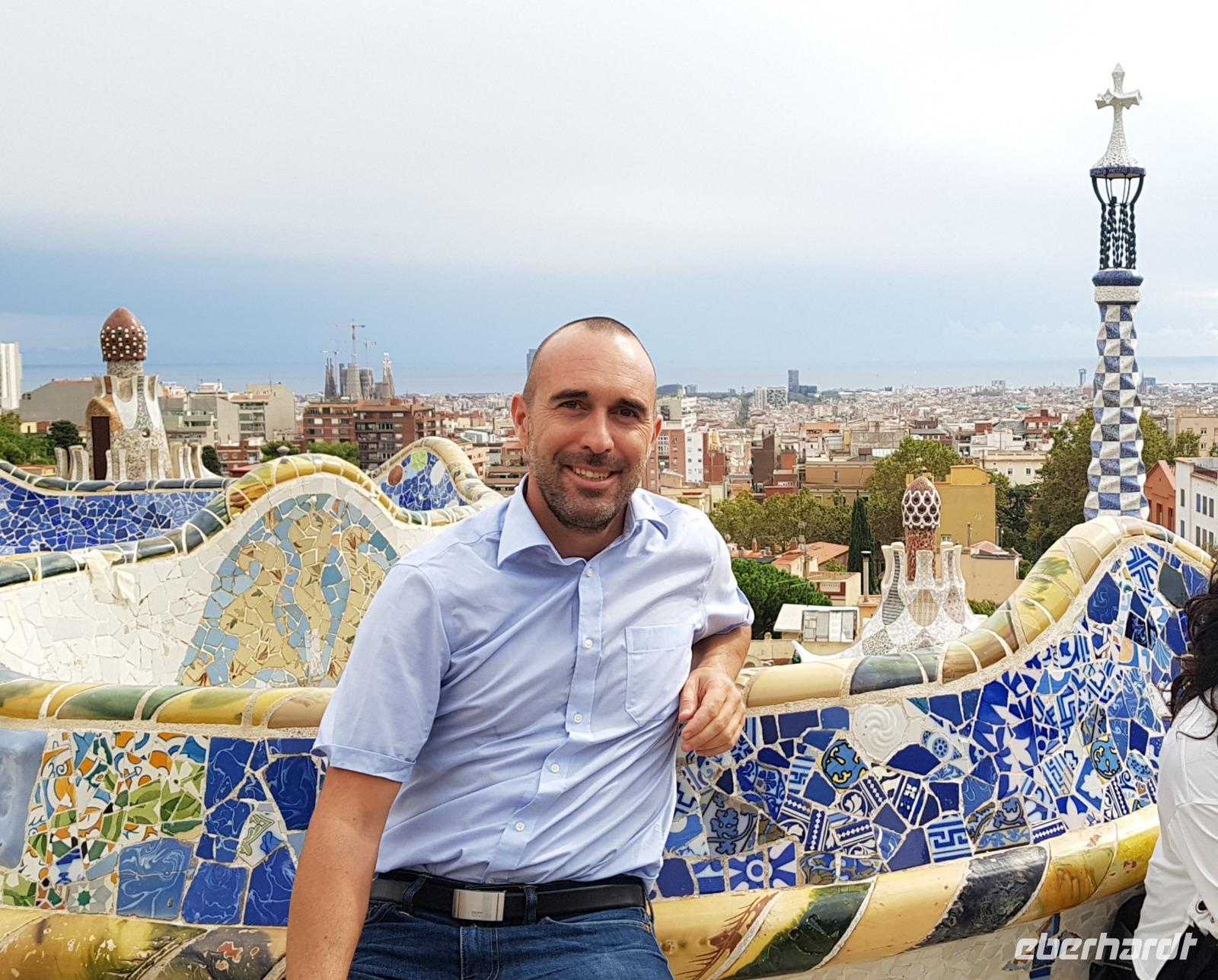 Nach dem köstlichen Frühstück im Hotel widmeten wir den Tag heute Gaudi und seinen Meisterwerken. Der zauberhafte Park Güell und die atemberaubende Kirche Sagrada Familia sind u.a. Ziel unseres tägigen Ausfluges. Bereits um 10:00 Uhr kam heute unser örtlichen Reiseleiter Lorenzo und starteten unseres ersten Besichtigungstour erstmal mit dem Bus. Wir erlebten eine kurze, aber sehr eindrucksvolle Stadtrundfahrt. Wir fuhren mit dem Bus durch Zentrum mit dem berühmten Columbus-Denkmal und am Strand und Hafen vorbei und warfen schon einen Blick auf den Paseo de Gracia. Dort stehen zwei berühmte Gebäude des berühmten Künstlers Antonio Gaudi: Casa Batlo und Casa Pedrera. Gemeinsam mit Lorenzo, unserem örtlichen Reiseleiter heute und langjähriger Guide für Eberhardt TRAVEL, konnten wir uns von der Einzigartigkeit der Sehenswürdigkeiten überzeugen.