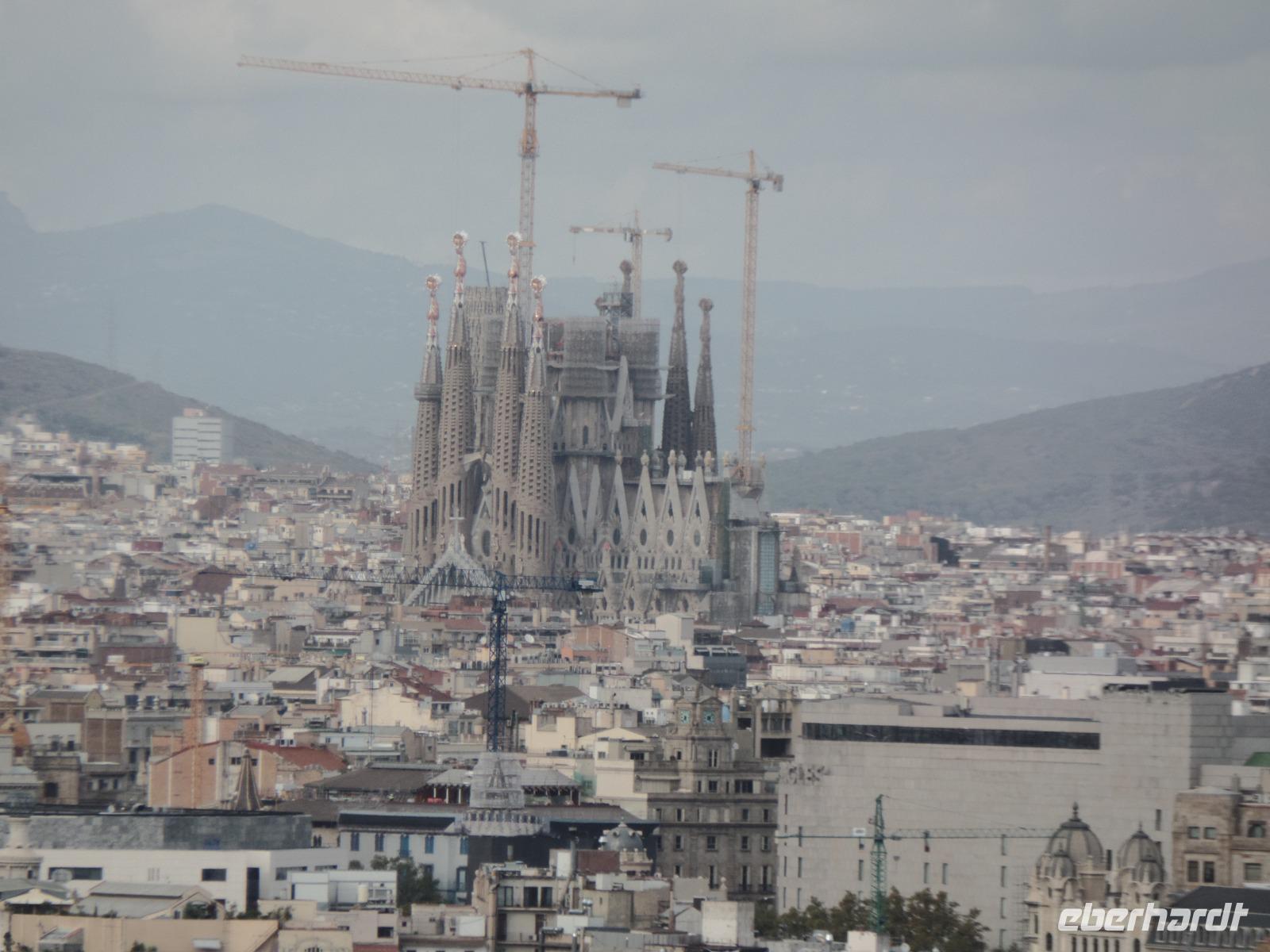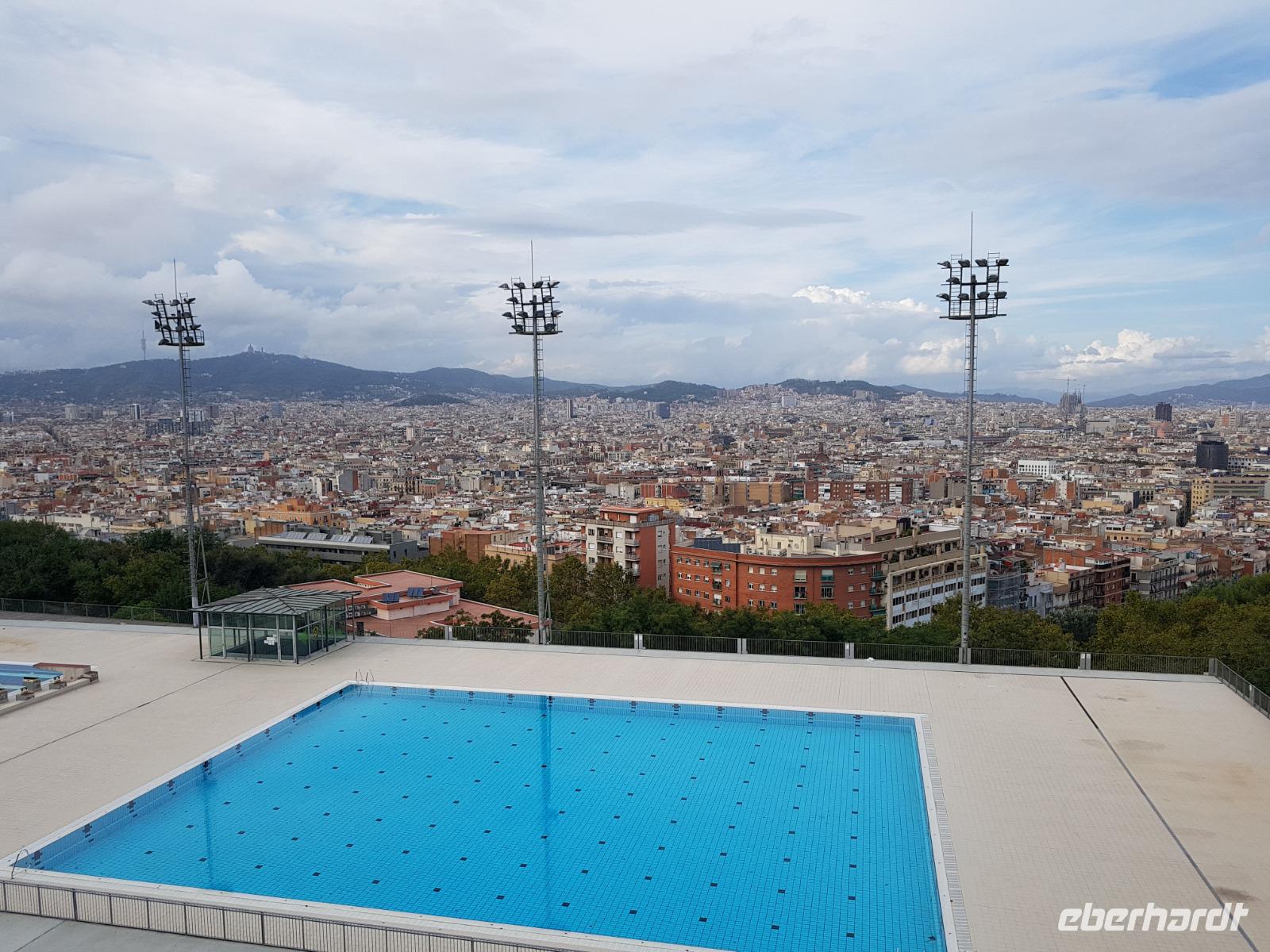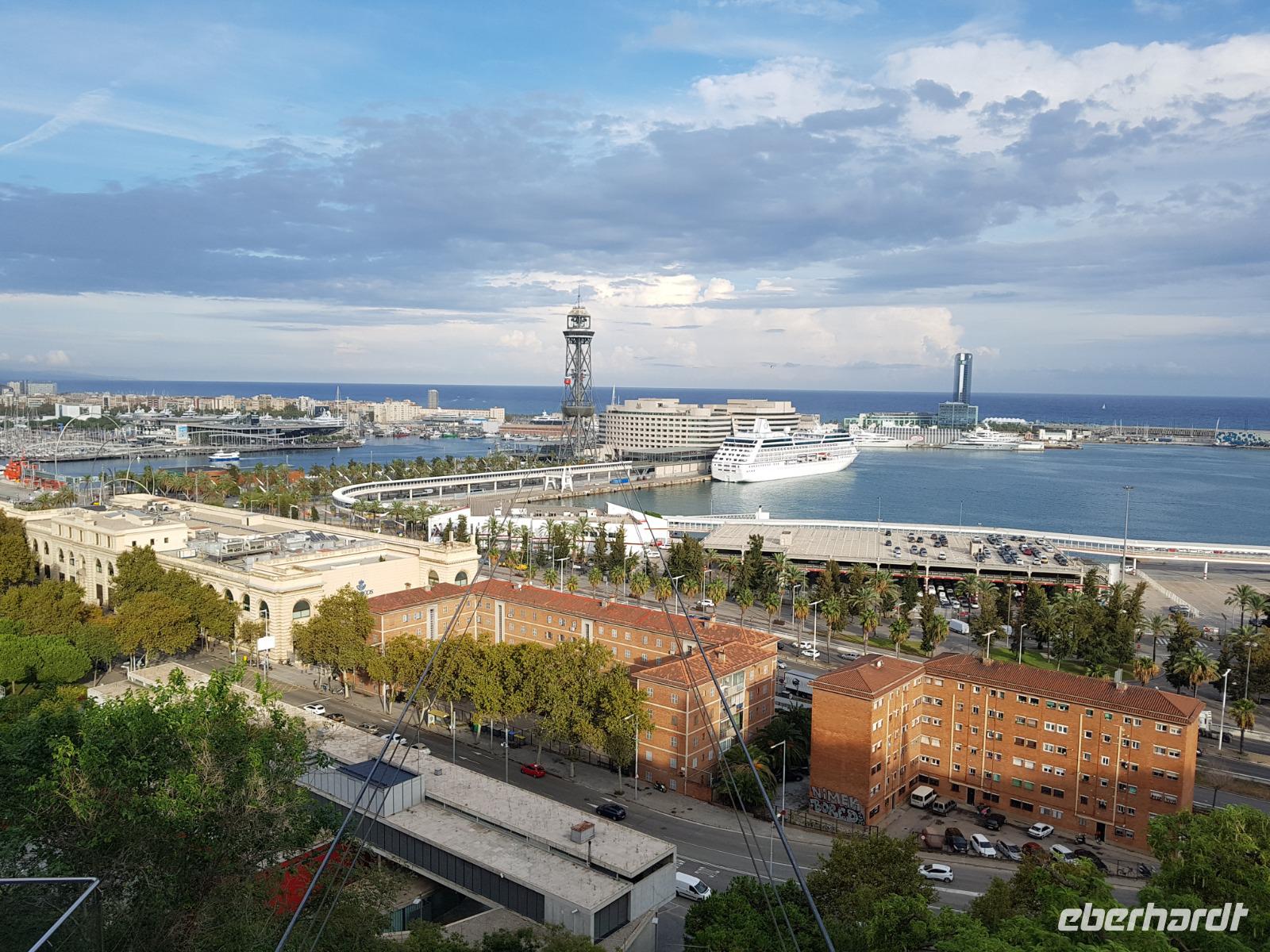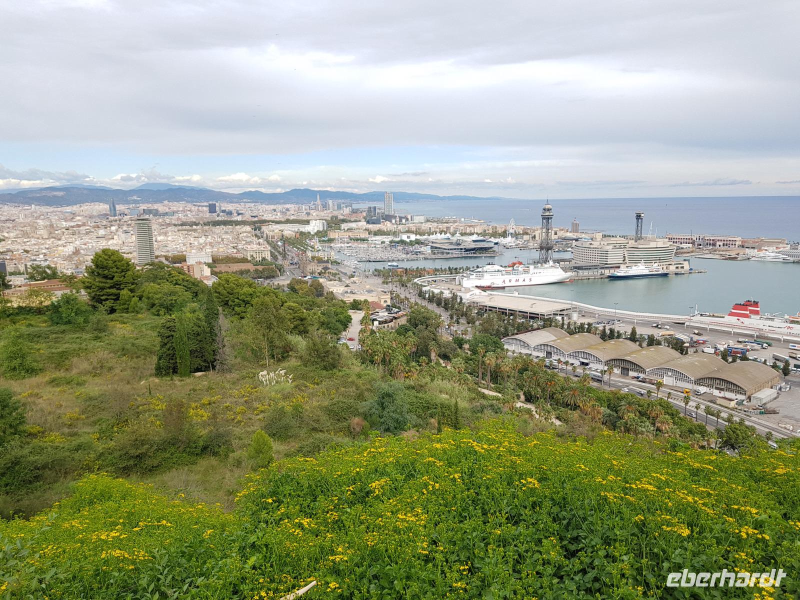 Danach fahren wir mit dem Bus in Richtung Montjuic, wo wir weitere Schnappschüsse mit unseren Kameras einfangen können. Nach einem kurzem Blick am Olympischen Stadium hielten wir an der Aussichts-Plattform Mirador del Alcade mit unvergesslichem Blick über den Hafen von Montjuic und ganz Barcelona. Die Aussicht war herrlich und genau richtig, um von hier oben Fotos die wunderschöne Skyline der Stadt einzufangen. Hier hatten wir Zeit um einen Kaffee auf der Terrasse zu trinken oder ein kleines Baguette.