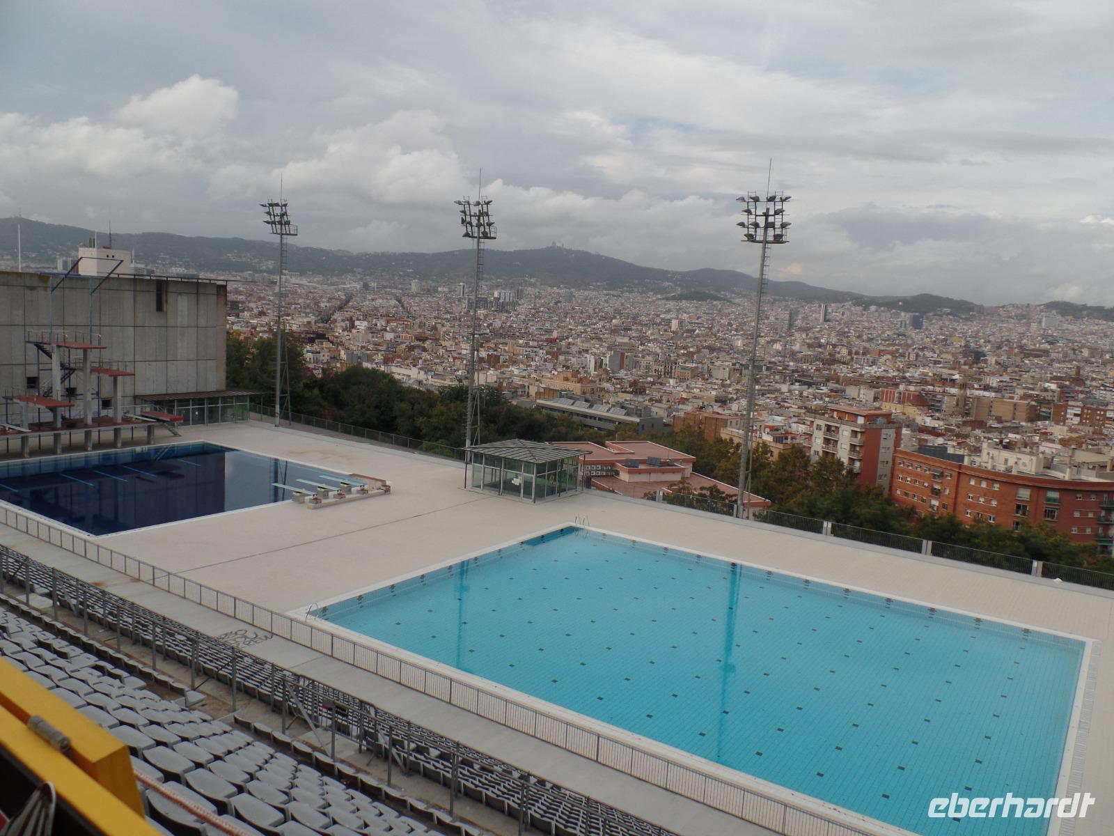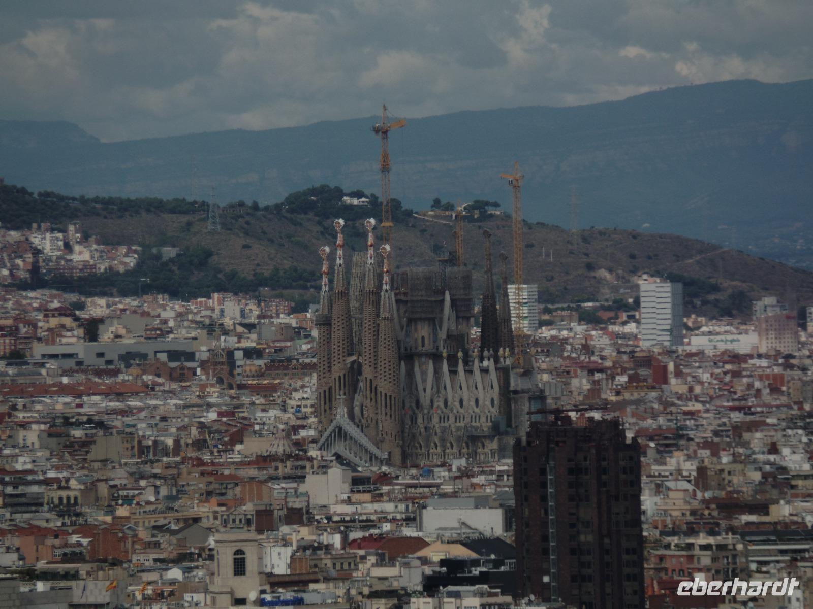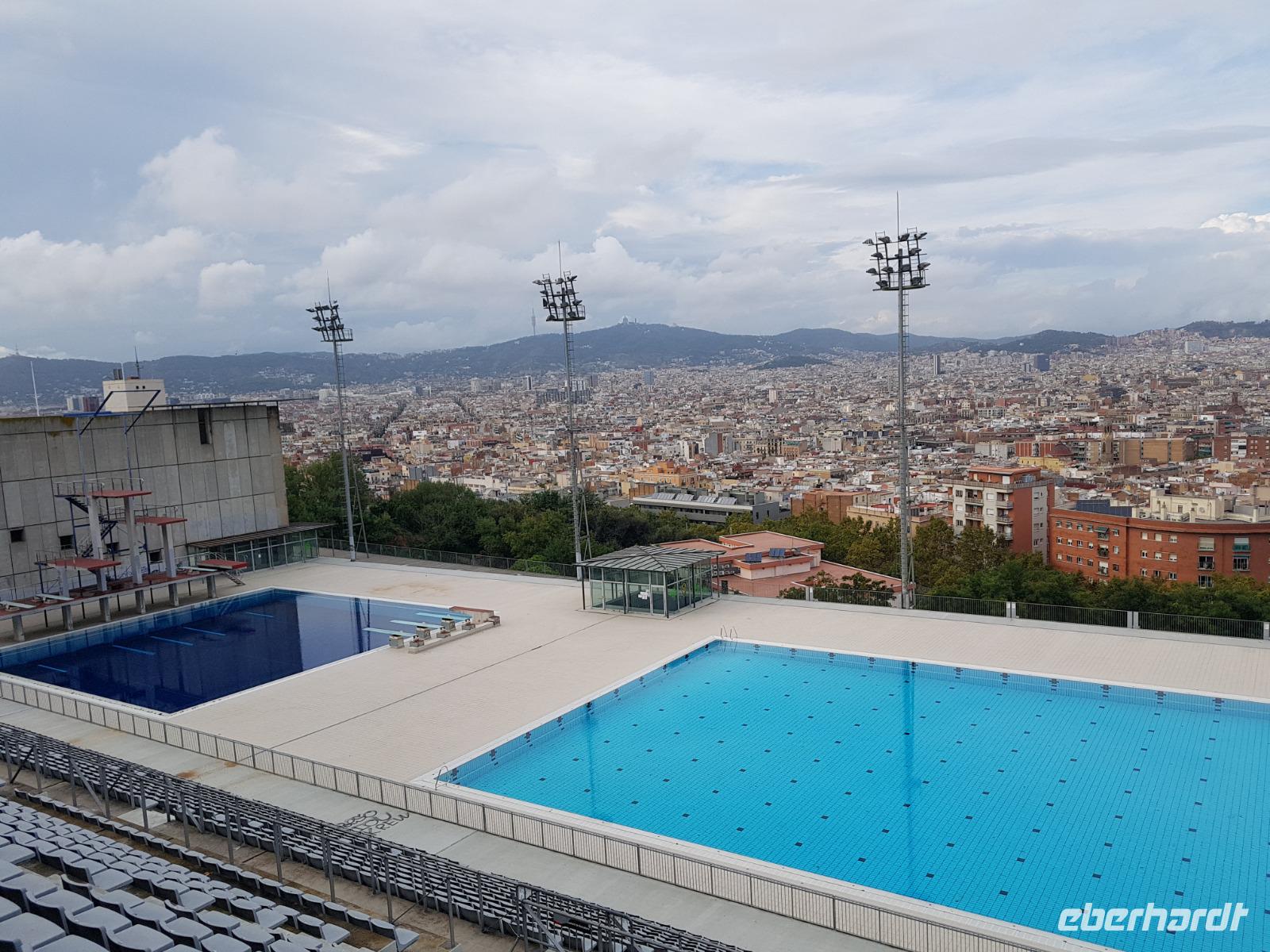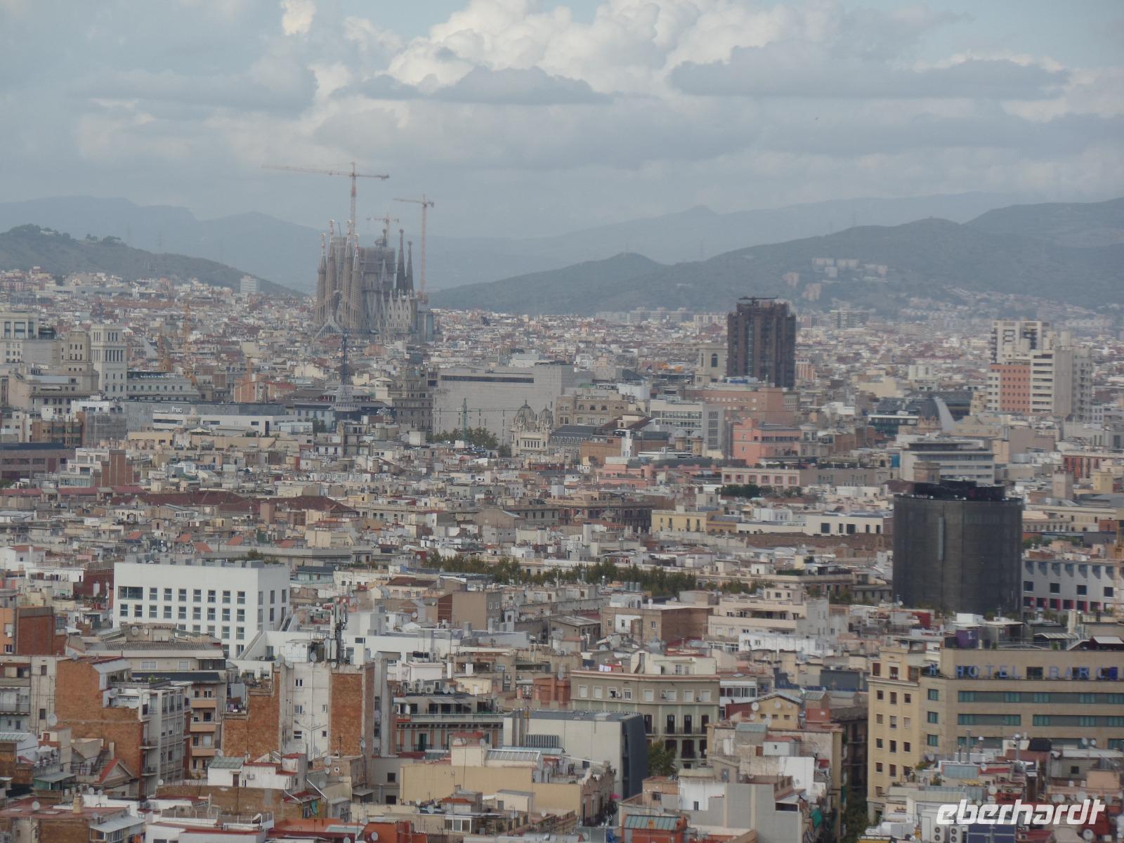 Danach fahren wir mit dem Bus in Richtung Montjuic, wo wir weitere Schnappschüsse mit unseren Kameras einfangen können. Nach einem kurzem Blick am Olympischen Stadium hielten wir an der Aussichts-Plattform Mirador del Alcade mit unvergesslichem Blick über den Hafen von Montjuic und ganz Barcelona. Die Aussicht war herrlich und genau richtig, um von hier oben Fotos die wunderschöne Skyline der Stadt einzufangen. Hier hatten wir Zeit um einen Kaffee auf der Terrasse zu trinken oder ein kleines Baguette.