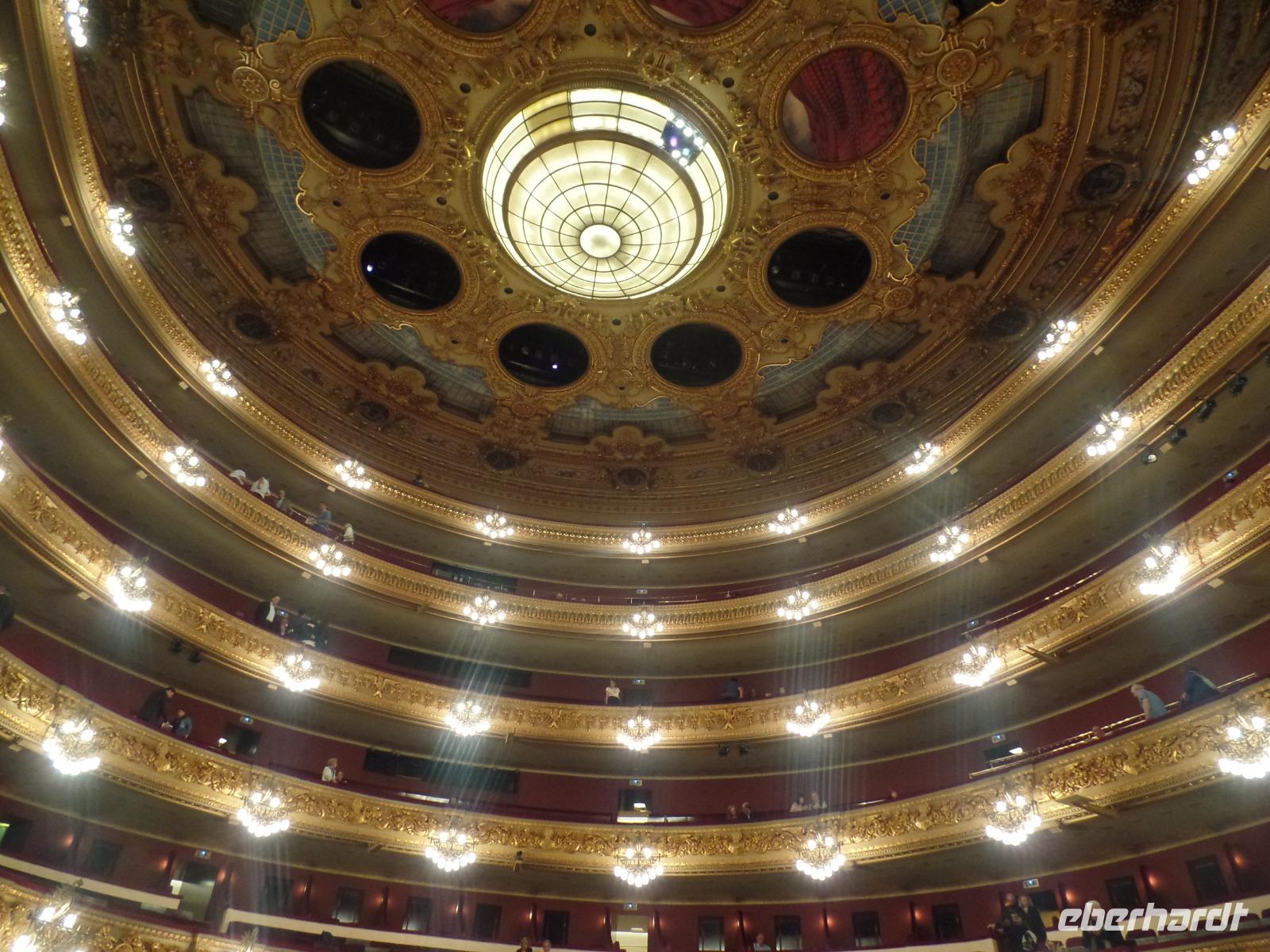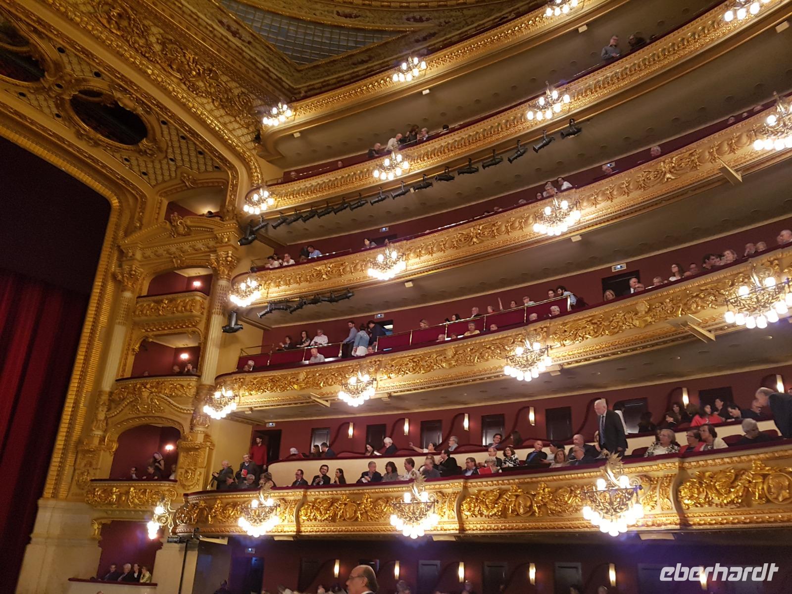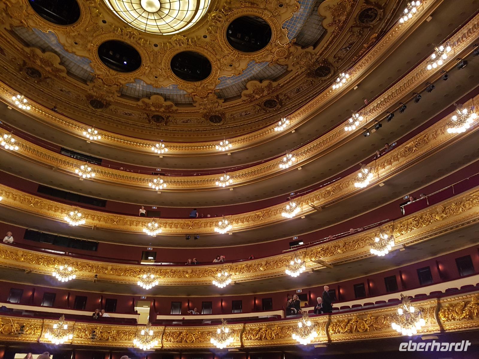 Für Susanne und für viele ist das Liceo vor allem wegen seiner einmaligen Akustik das zweitwichtigste Opernhaus der Welt. Wir hatten sehr gute Plätze. Heute genossen wir die romantische Liebes-Drama Oper "I Puritani", geschrieben von Bellini. Eine tolle Geschichte von Liebe. Das Stück wurde hier in Barcelona schon mehrmals aufgeführt. Vorgestern ist Montserrat Caballe gestorben, heute in Barcelona beigesetzt und hier das Liceu war wie Ihr Zuhause. Sie wurde am Anfang gedacht und nachdem wir von Ihr ein Stück von Opera Gesang hörten, könnten man nur Gänsehaut bekommen. Eine der beste ist jetzt im Himmel. Wir genossen „I Puritani" mit einer Pause fast über 3 Stunden voller Emotionen mit berauschender Gesängen, Akustik und Musik. Es war -wie gesagt- eine Aufführung voller Gänsehaut-Momenten. Zum Glück hatten wir schon vorher gegessen da es war schon 23 Uhr als die Liebe am Ende siegte. Nach dem Stück gingen wir zu Fuß bis zum Hotel und waren alle begeistert von dem Tag und den vielen Eindrücken, aber gleichermaßen erschöpft. Mit Gesang im Kopf schliefen wir heute ein wie Engel.