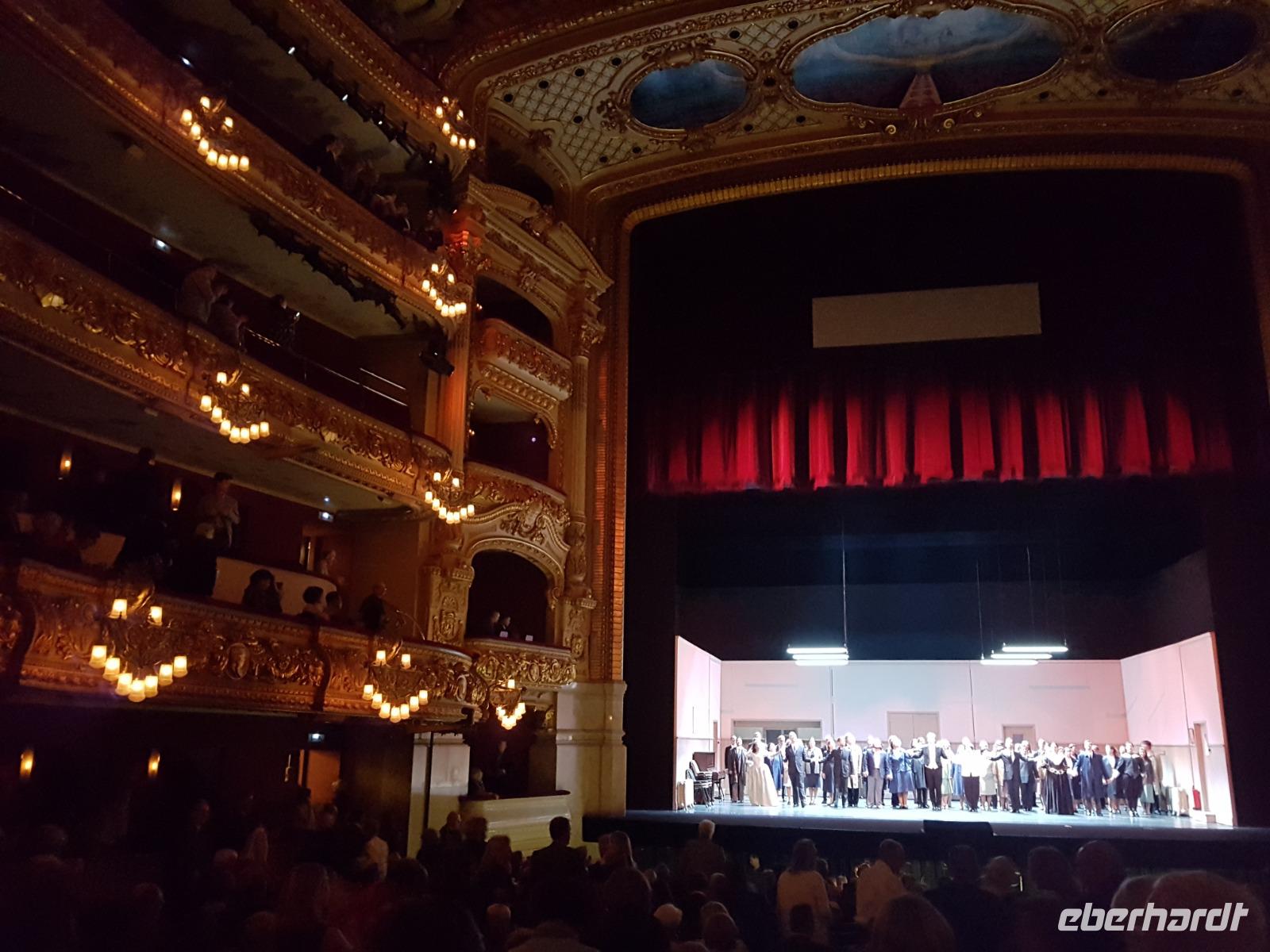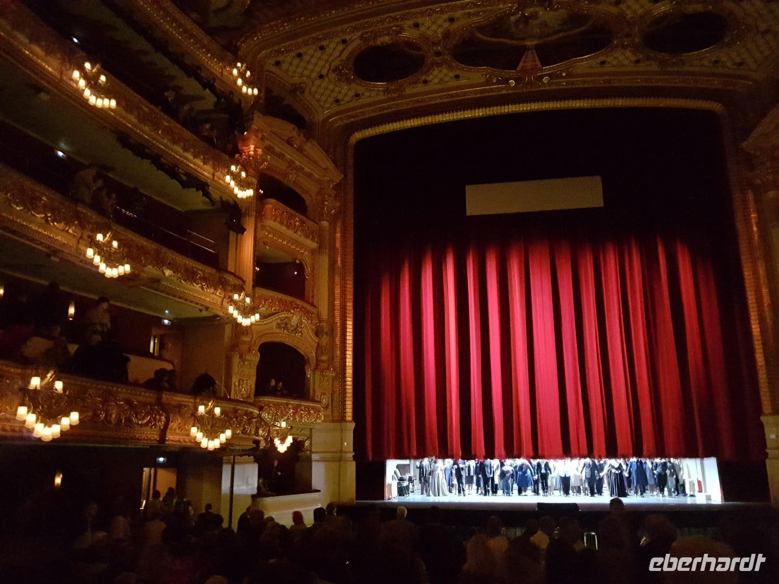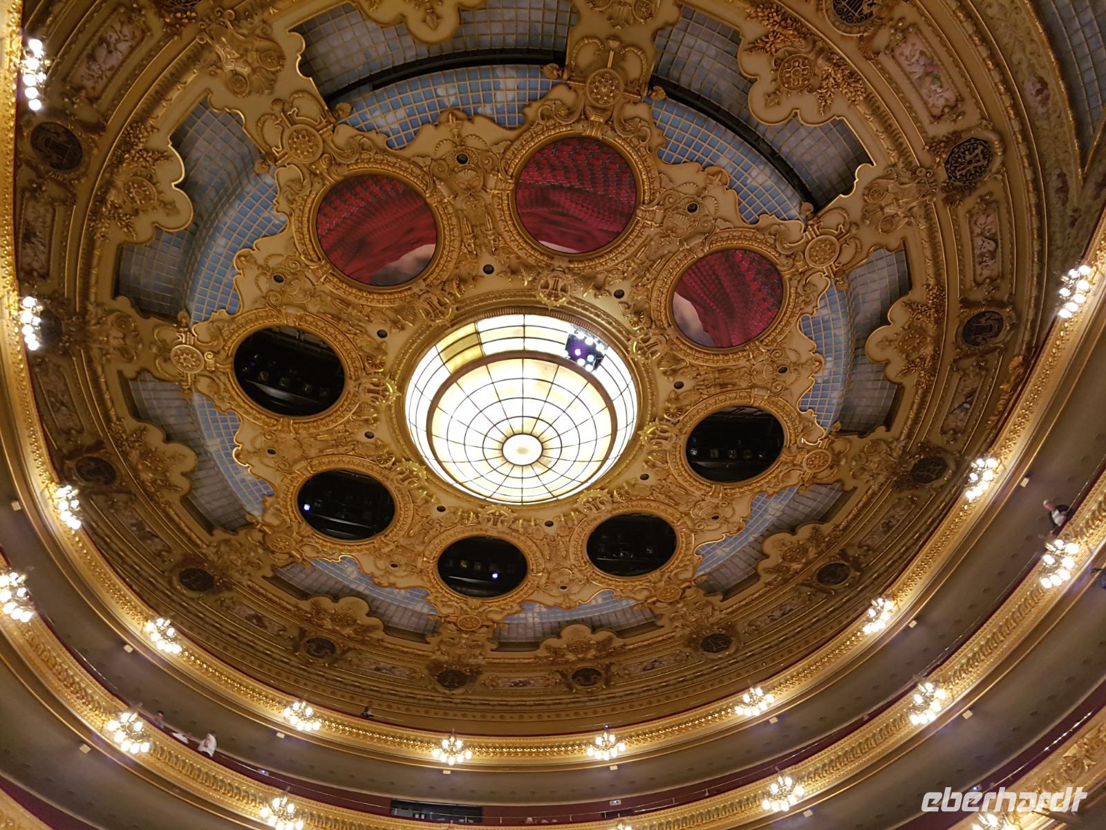 Für Susanne und für viele ist das Liceo vor allem wegen seiner einmaligen Akustik das zweitwichtigste Opernhaus der Welt. Wir hatten sehr gute Plätze. Heute genossen wir die romantische Liebes-Drama Oper "I Puritani", geschrieben von Bellini. Eine tolle Geschichte von Liebe. Das Stück wurde hier in Barcelona schon mehrmals aufgeführt. Vorgestern ist Montserrat Caballe gestorben, heute in Barcelona beigesetzt und hier das Liceu war wie Ihr Zuhause. Sie wurde am Anfang gedacht und nachdem wir von Ihr ein Stück von Opera Gesang hörten, könnten man nur Gänsehaut bekommen. Eine der beste ist jetzt im Himmel. Wir genossen „I Puritani" mit einer Pause fast über 3 Stunden voller Emotionen mit berauschender Gesängen, Akustik und Musik. Es war -wie gesagt- eine Aufführung voller Gänsehaut-Momenten. Zum Glück hatten wir schon vorher gegessen da es war schon 23 Uhr als die Liebe am Ende siegte. Nach dem Stück gingen wir zu Fuß bis zum Hotel und waren alle begeistert von dem Tag und den vielen Eindrücken, aber gleichermaßen erschöpft. Mit Gesang im Kopf schliefen wir heute ein wie Engel.