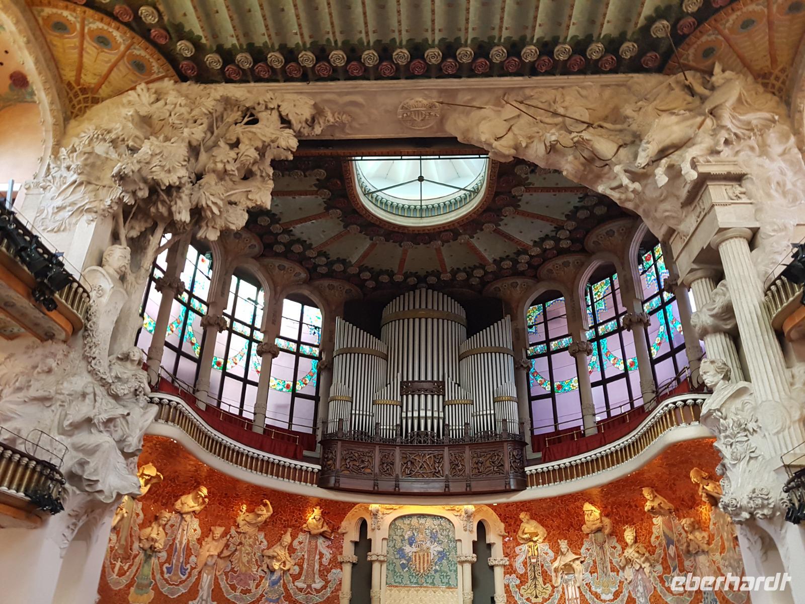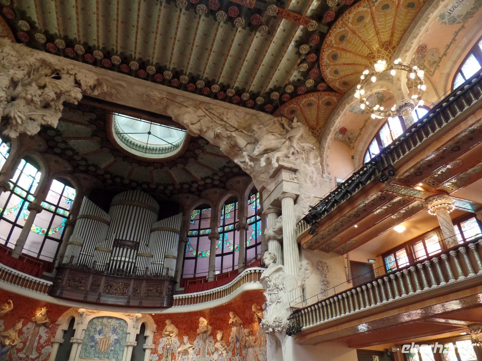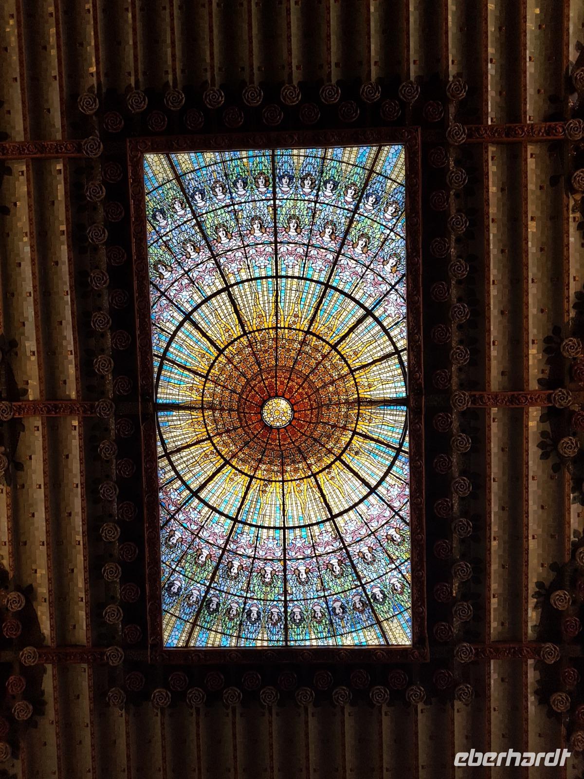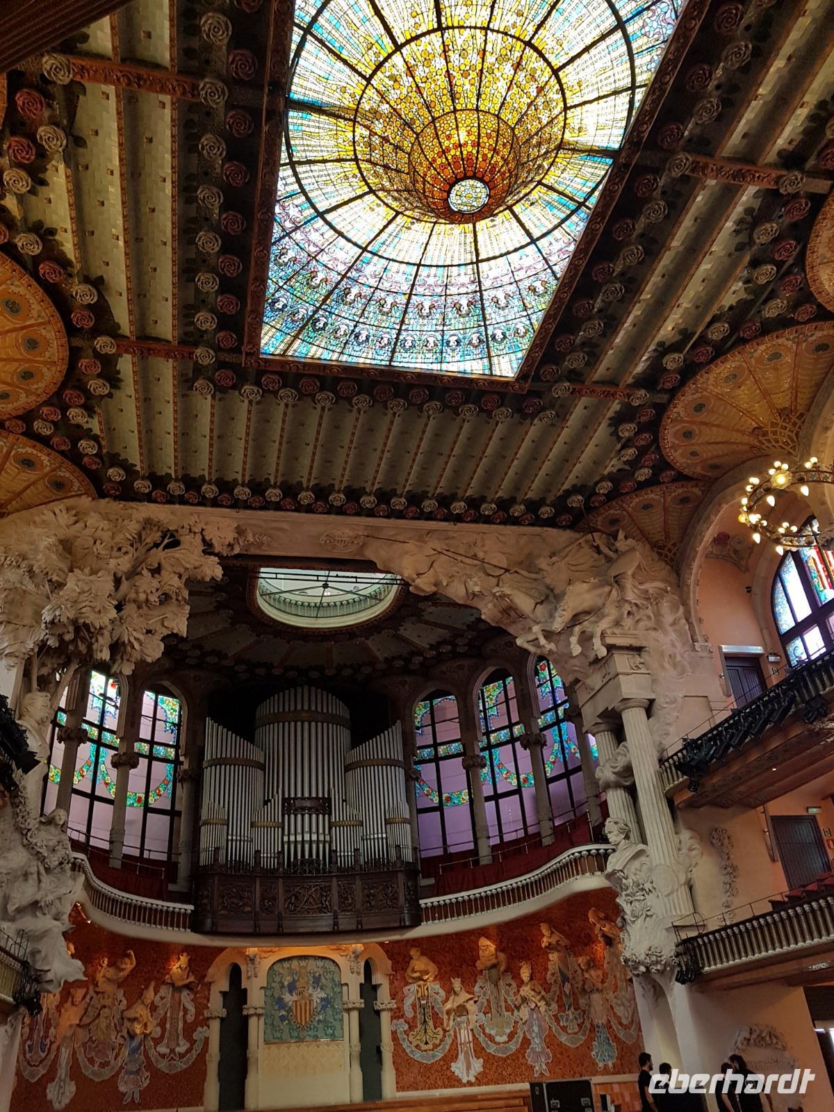 Nach diesem farbgewaltigen Erlebnis gingen wir weiter mit Quim durch die verträumten Gassen bis zum Palau de la Musica, einem Konzertsaal, entworfen von dem katalanischen Architekten Lluis Montaner ganz im Stil des Modernisme. Der Bau dauerte von 1905 bis 1908. Schon von Außen sah es wunderschön aus, noch viel eindrucksvoller wurde es aber dank unserer Entdeckungen während er Führung durch das Haus. Als Überraschung und fast am Ende der Führung, durfte Benjamin ein Lied im Konzertsaal vorsingen. Es war pure Gänsehaut, hier singen zu dürfen: „O Sole Mio ". Herrlich. Gemeinsam noch mit Quim liefen wir weiter bis zum Plaza del Rey. Der ehemalige Palast des Statthalters ist heute ein Archiv. Benjamin zeigte uns späeter und nicht weit von hier den römischen Tempel Barcino. Auf diesem kleinen Hügel wurde Barcelona damals gegründet.