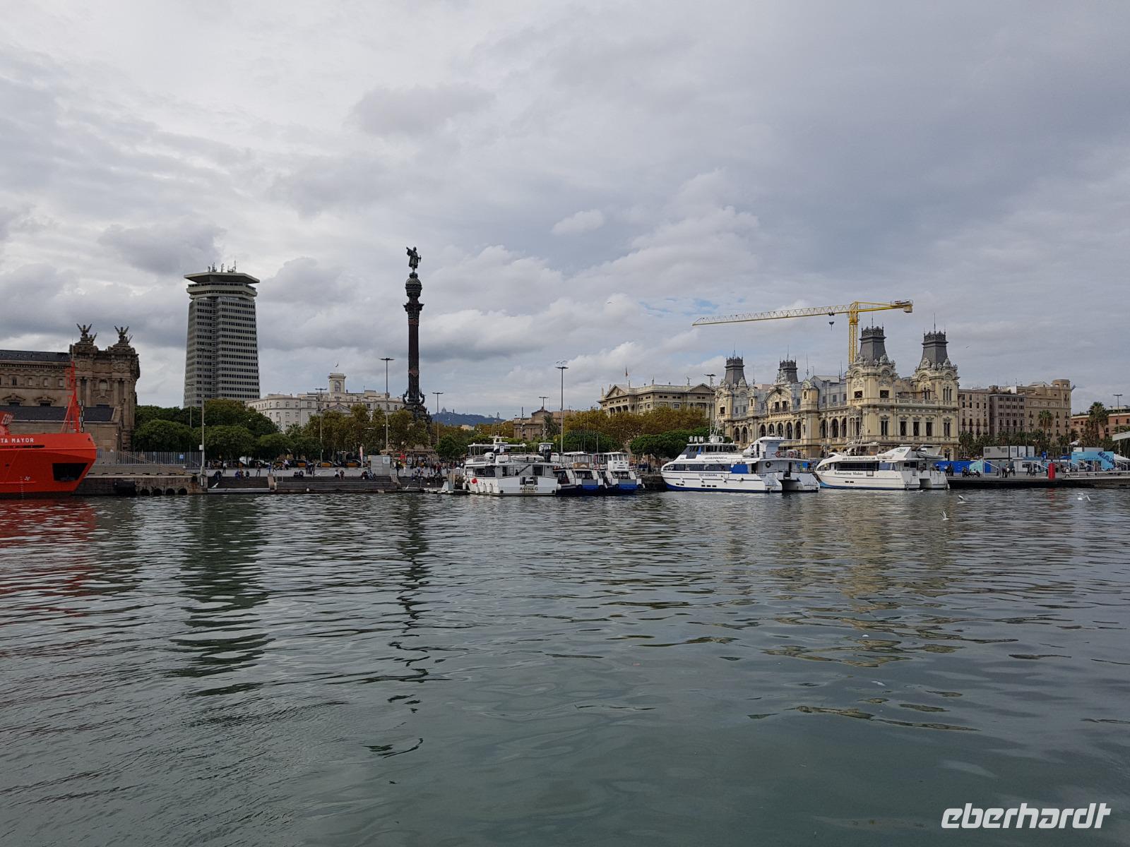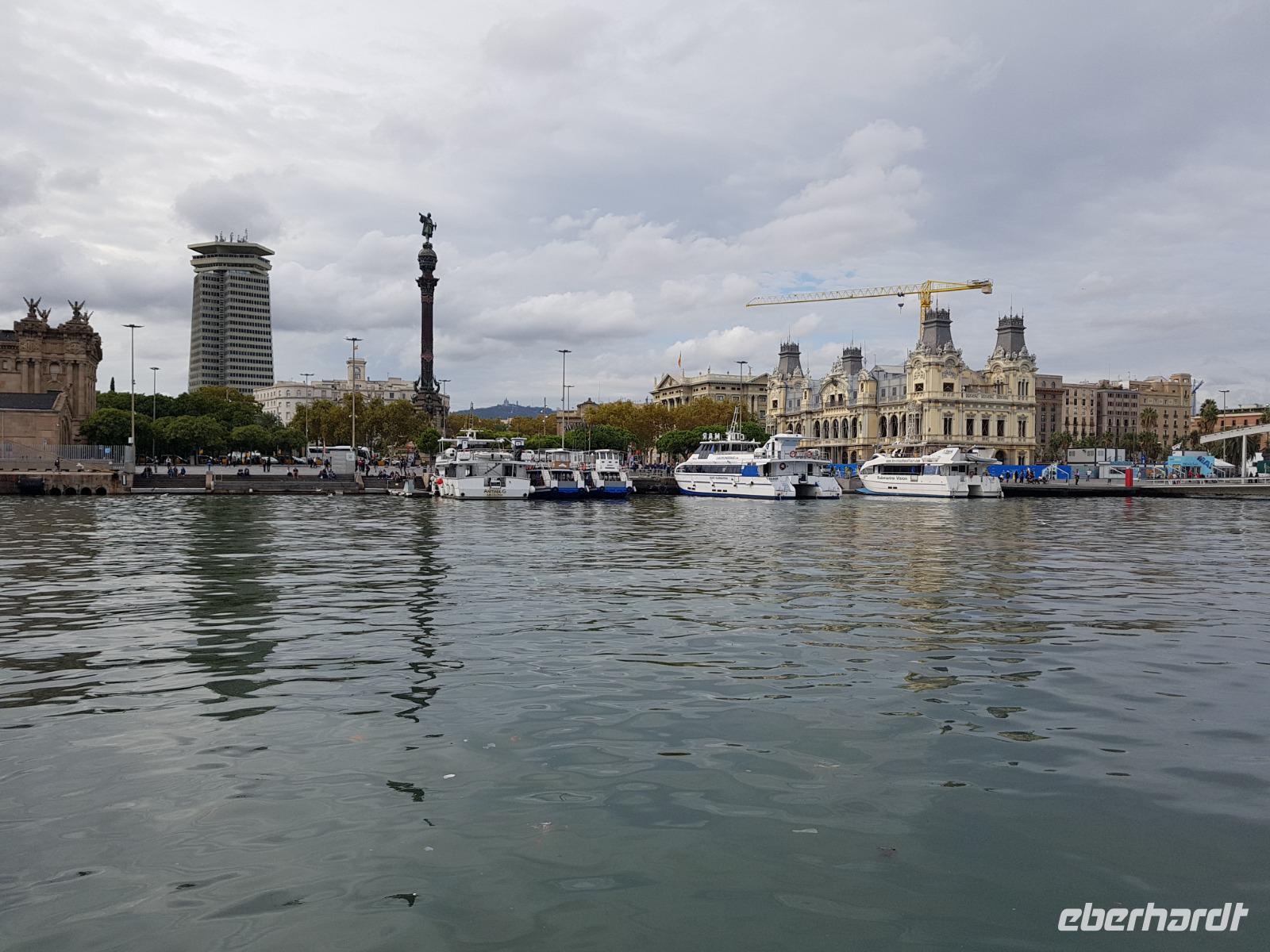 Wir werden morgen individuell die Markthalle La Boqueria Markt da es dort immer mehr viele Touristen gibt und so erkundeten wir lieber den Markt von St. Katalina, der köstlichen Fisch, Obst, Gemüse und Schinken anbot. Nun war es Mittagszeit - perfekter Moment für Tapas! Hier in einer kleine Laden am Rand von Markt genossen wir die Tapas zusammen mit Rot Wein ganz in Ruhe und abseits der vielen Markt-Besucher. Gut gesättigt und nach dem kleinem Bummel über den Markt stand nun ein weiteres Highlight des Tages: eine Segelbootsfahrt vor der Küste Barcelonas.