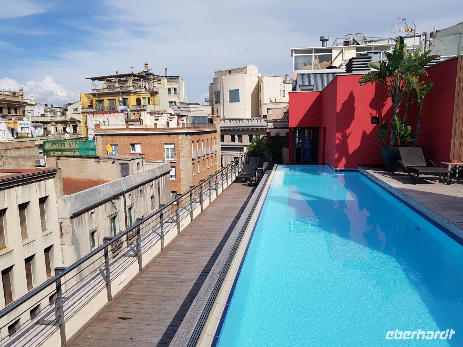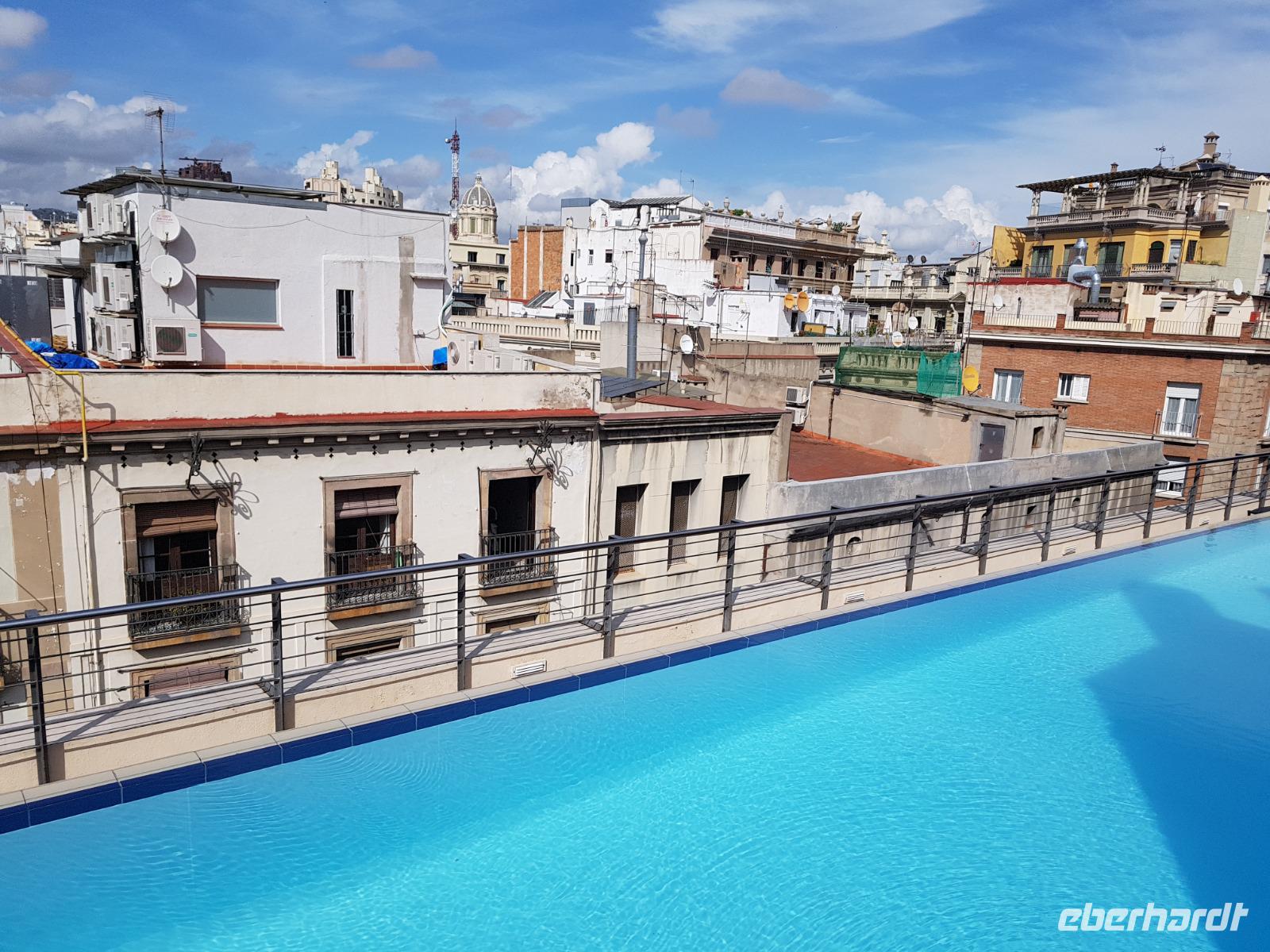Da wir schon gestern die Segelbootsfahrt stand der Vormittag uns heute zur freien Verfügung bis zum früh Nachmittag. Einige wollten allein individuell die Stadt erkundigen oder einkaufen gehen. Empfehlungen von Benjamin war die Markthalle La Boqueria in Ruhe zu besuchen. Einige ginge zu Fuß oder mit dem U-Bahn bis zum Arco del Triunfo oder Sieger Tor oder sogar bis zum Sant Paul Krankehaus, nicht weit von der Sagrada Familia. Das Hospital Sant Paul, welches Luis Domenech entwarf und ab 1902 erbaut wurde, ist mit seinen modernistischen 26 Pavillons und seiner Parkanlage eine wahre Augenweide. Hier kann man einen gemütlichen Spaziergang durch das herrliche Herbstwetter in Barcelona genießen. Man taucht damit so mitten in das alltägliche Leben der Einheimischen ein. Auf den schönen Terrassen verweilen sich die Einheimische oder Touristen. Herrlich. Nach so einem schönen und erlebnisreichen Vormittag gingen wir alle langsam zu Fuß bis zum Hotel, wo wieder Siesta oder Pool auf der Terrasse angesagt war. Hier konnten wir uns ein wenig ausruhen für den tollen Abend, den Benjamin für uns organisierte. Im Hotel gibt es oben eine stilvolle Dachterrasse mit Pool, den Benjamin erst heute für die Gruppe kurz ausprobierte und für super befand.