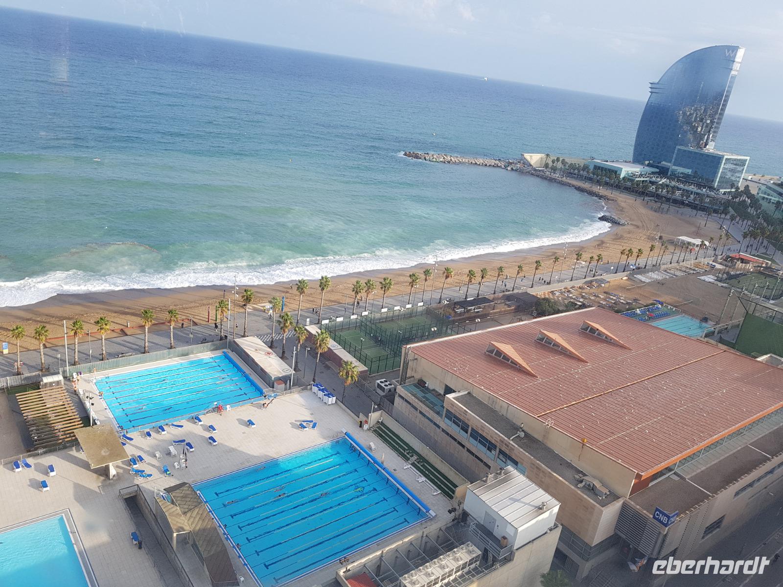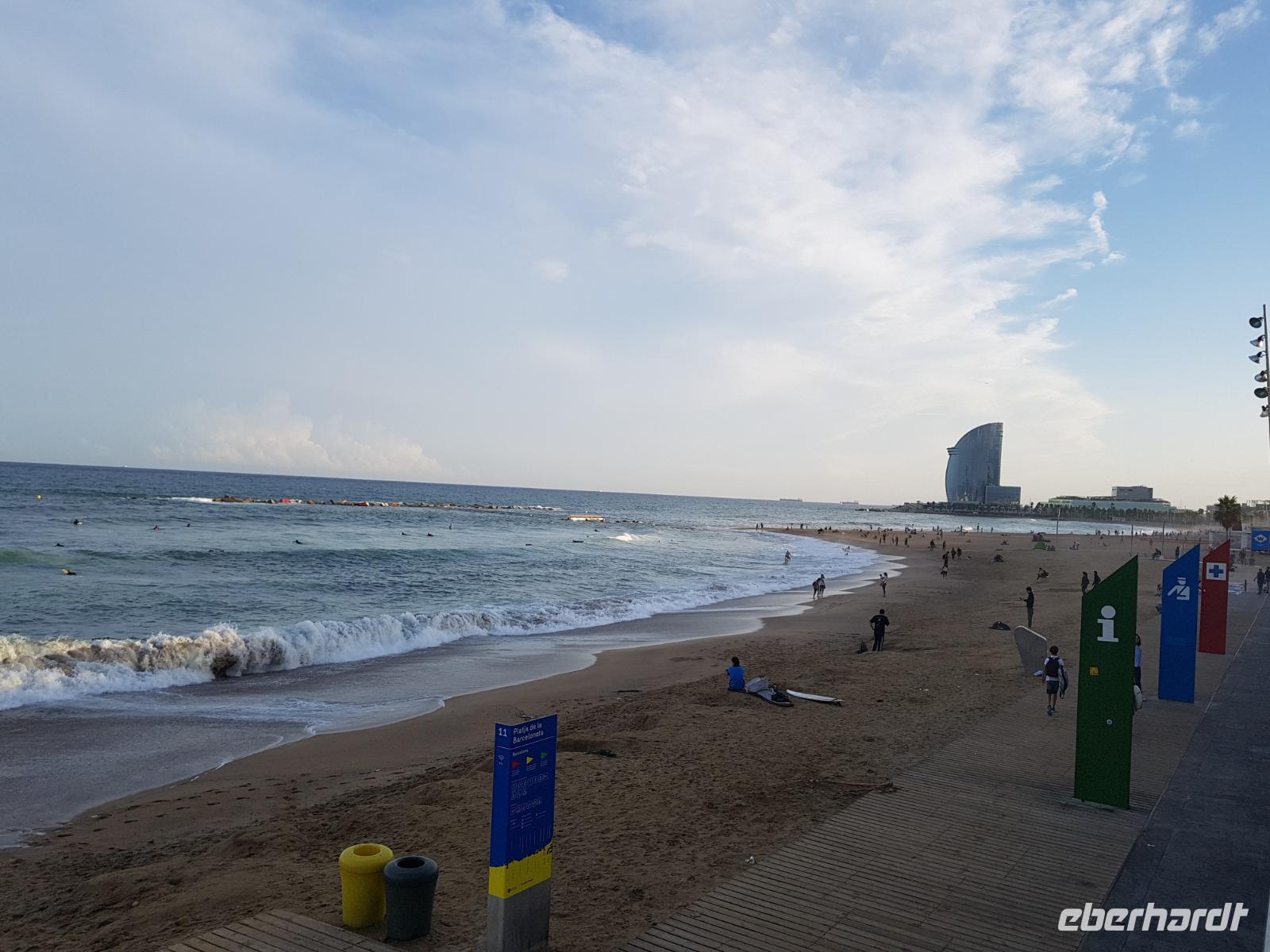 Wir gingen zu Fuß bis zum Hafen, wo das Olympische Viertel direkt am Strand steht und freuten uns auf unseren exklusiven Ausflug mit Segeltörn entlang der Küste von Barcelona. Zum Glück war das Regen schon vorbei. Es war herrlich: Wir ließen uns die kühle Brise um die Nase wehen und von der Sonne verwöhnen und genossen dabei einen ganz besonderen Blick auf die Skyline der Metropole: Montjuic und Tibidago Berg, die Sagrada Familia, der Dom und vieles, vieles mehr. Diese Perspektive auf Barcelona war einmalig: Wir fuhren Richtung Süden, wo wir ganz Barcelona sahen bis zum 5-Sterne-Segelschiff Hotel W in Barcelona, Wahrzeichen auch der Stadt. Da das Meer heute nicht so ganz ruhig war fuhren wir bis zum Luxus Hafen im Zentrum direkt am Kolumbus Saüle. Einige von uns laufen zurück mit Benjamin bis zum Hotel und andere nahmen ein Taxi dafür. Später um 20 Uhr fuhren wir mit Taxi zum Restaurant da es wieder wahnsinnig viel geregnet hat. Wir lassen den Abend bei einem Tapas-Abendessen ausklingen. Heute war einfach ein perfekter Tag voller unvergesslicher Momente, die wir beim Träumen heute Nacht weiter begleiteten.