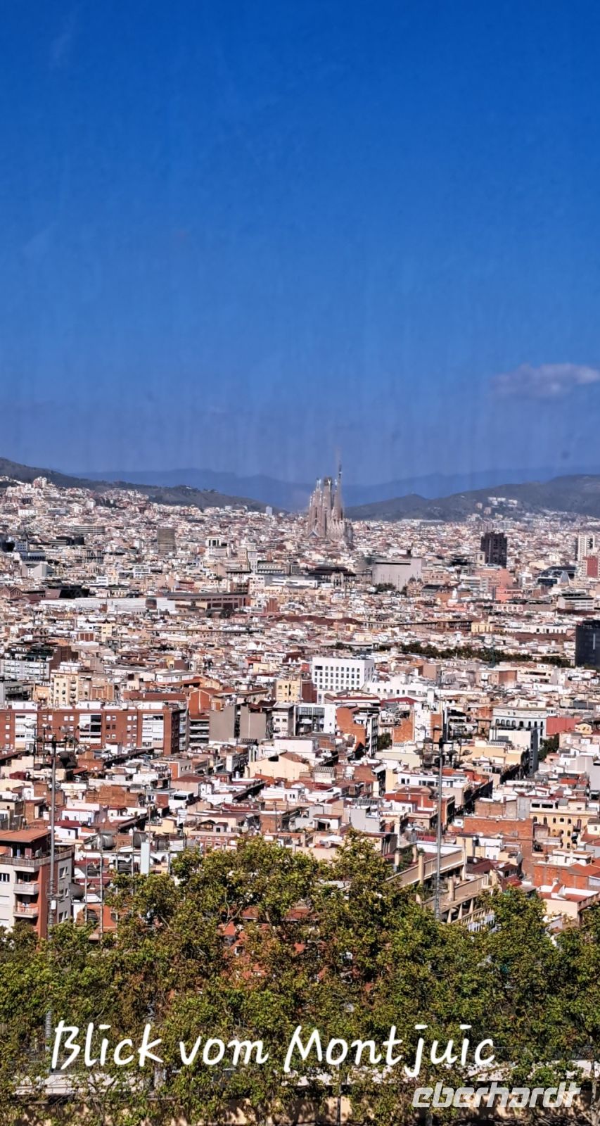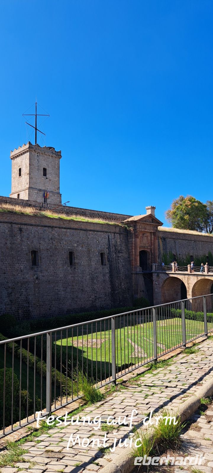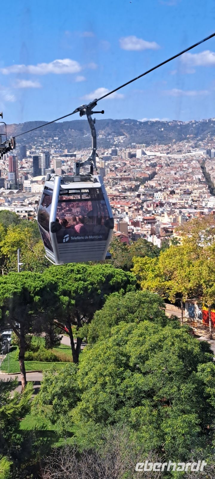 Mit der Metro fahren wir fahren zur Funicular einer Standseilbahn die uns direkt zur Talstation der Seilbahn bringt. Mit ihr geht es hoch auf den Montjuic , die Fahrt ist toll und wir haben eine fantastische Aussicht. Der Montjuïc ist der Hausberg von Barcelona immerhin 173m hoch. Nicht wirklich hoch aber mit jeder Menge Sehenswürdigkeiten gespickt und sehr weitläufig. Auf dem Gipfel erwartet uns die Burg Montjuïc, wir umrunden die Burg, eine ehemalige Verteidigungsanlage und genießen einen 360 Grad Blick bei herrlich klarem sonnigen Wetter.