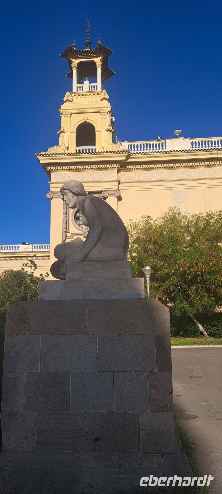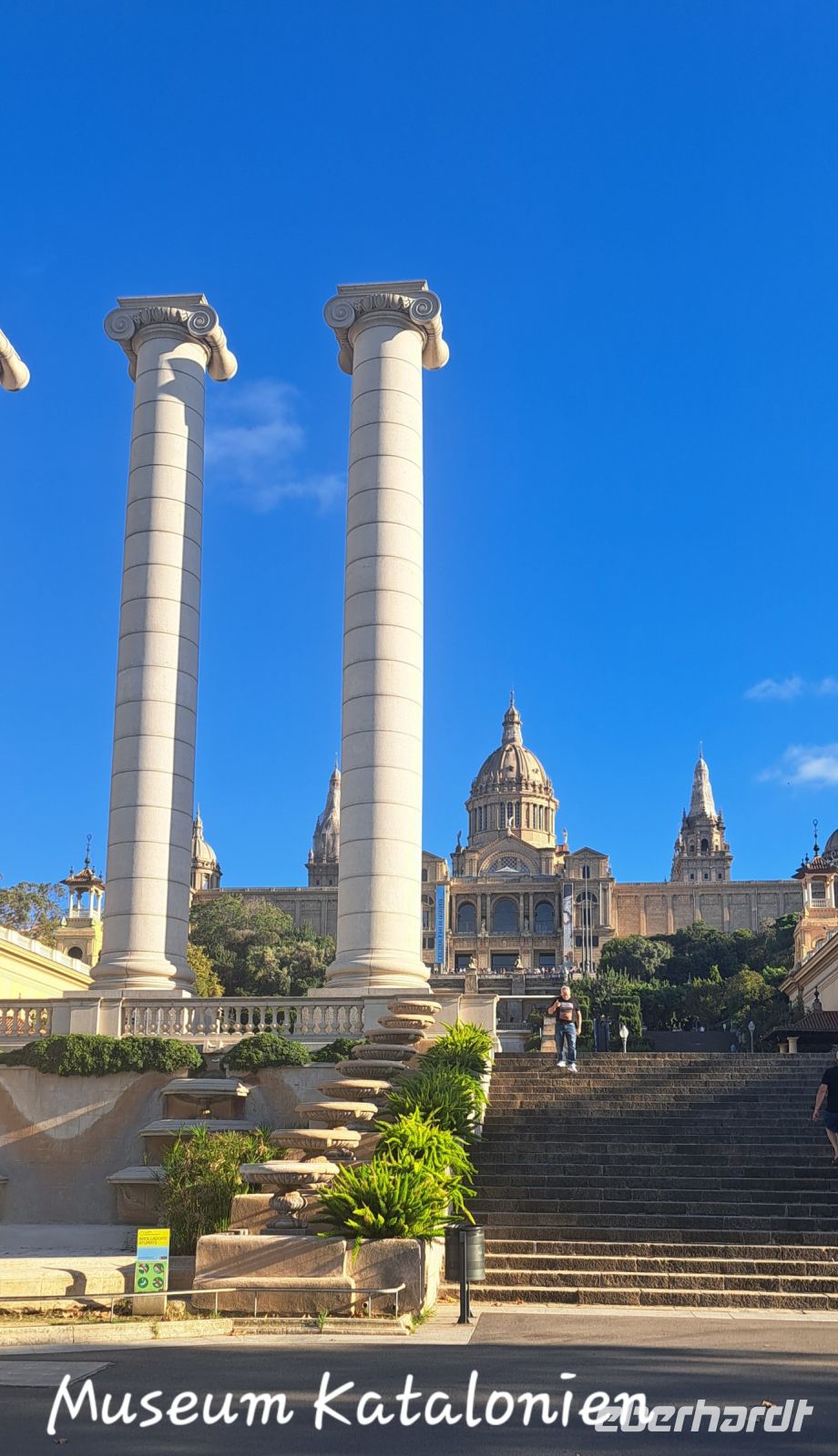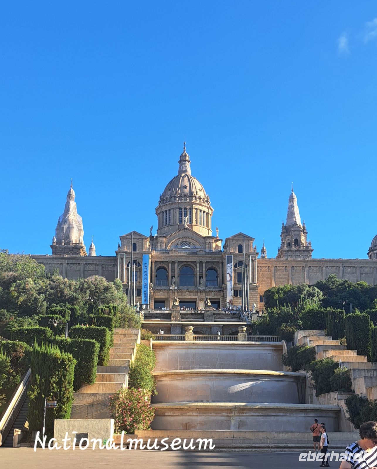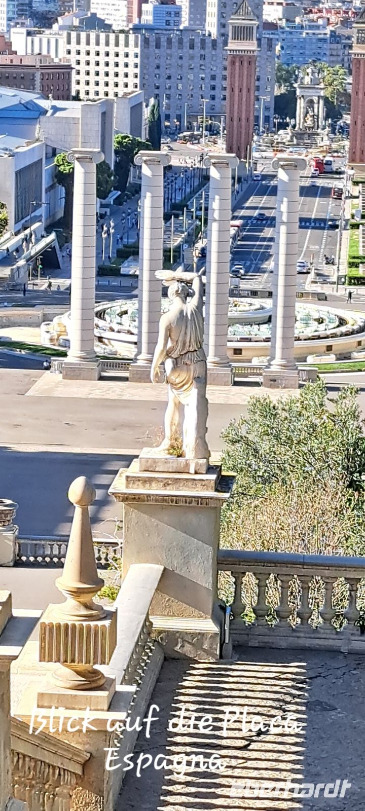 Wir schweben mit der Seilbahn wieder hinab zur Talstation und wandern gemütlich Richtung Placa de Espanya. Wir passieren den Palau National Sitz des Museu Nacional d`Art de Catalunya ein wunderschöner Bau. Das Museum wurde 1929 aus Anlass der Weltausstellung eröffnet. Von hier aus hat man eine super Aussicht auf den Placa Espanya. Dazwischen noch der Brunnen Font Magica. Normalerweise kann man hier Wasserspiele beobachten, doch leider sind alle Springbrunnen wegen akutem Wassermangel vorübergehend abgestellt.