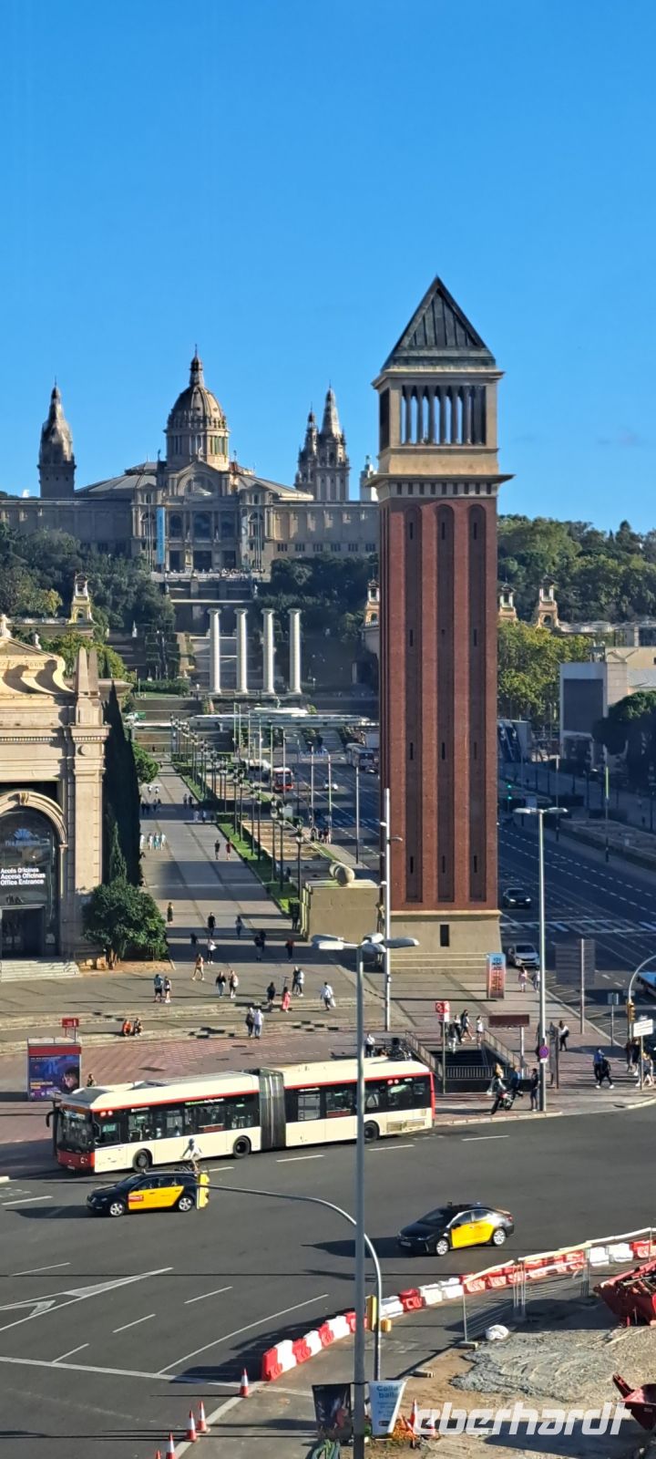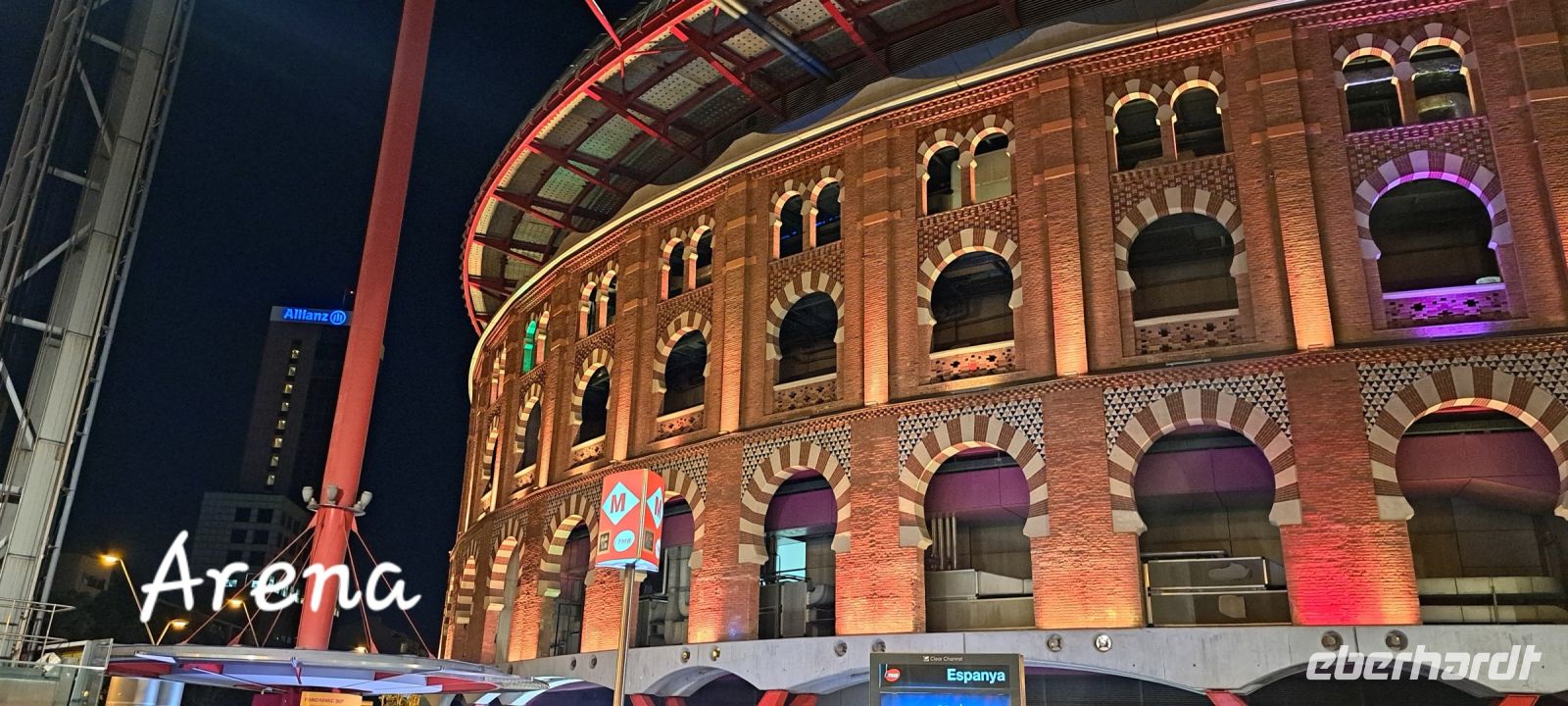 Anreise und Fahrt auf den Montjuïc, Spaziergang zur Placa d`Espanya, Abendessen in der "Arena"
