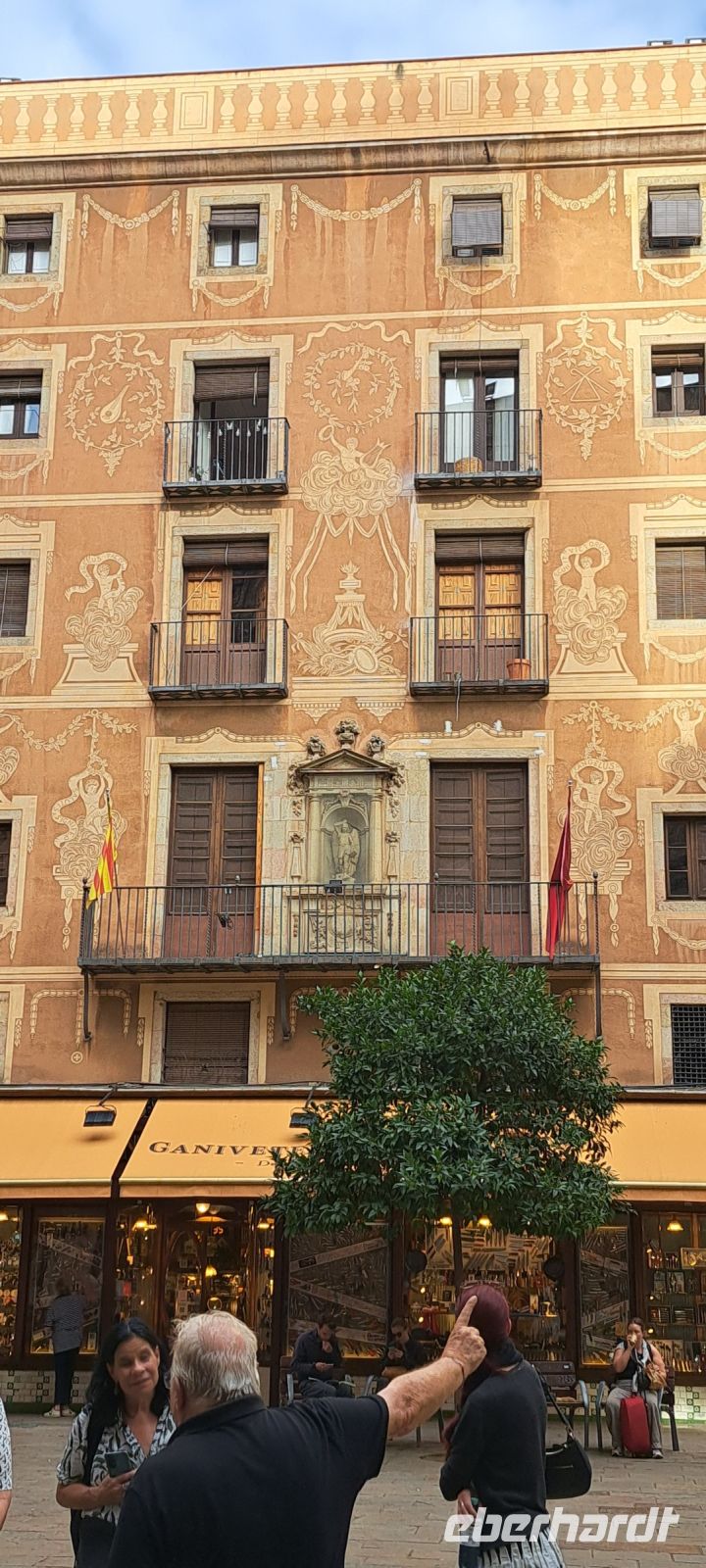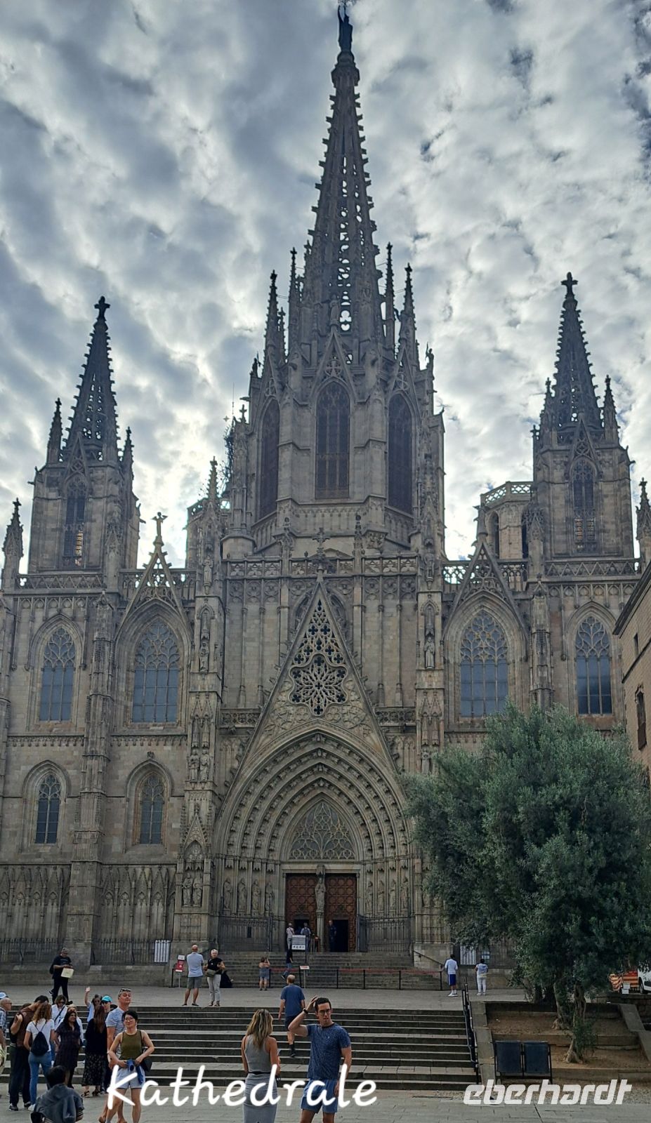 Bruno unser örtlicher Reiseleiter holt uns am Hotel ab und es geht zu Fuß in Richtung Altstadt mit seinen Vierteln genannt "Barrios". Wir entdecken zunächst das Barrio El Raval früher eher Armenviertel, mittlerweile multikulturell. Umfangreiche Modernisierungen zur Vorbereitung der Olympischen Spiele 1992 davon hat nicht nur dieses Barrio profitiert sondern ganz Barcelona. Wir marschieren durch die engen mittelalterlichen Gassen und Bruno weiß uns viel geschichtliches zu erzählen. Das nächste Barrio ist das trendige El Born, mit vielen Cafes und Boutiquen. Einige von uns schauen sich die berühmte Kathedrale Santa Maria del Mar an. Der Roman von Falcones " Die Kathedrale des Meeres" erzählt spannend ihre Entstehungsgeschichte im Mittelalter. Selbstverständlich darf das Barrio Gotic nicht fehlen. Hier hatte Barcelonas Geschichte seinen Anfang und wir bewundern die Baudenkmäler aus den 14. und 15 Jahrhundert der Zeit der katalanischen Gotik und der Blütezeit als Seemacht. Auch römische Spuren sind hier noch zu finden. Die Kathedrale von Barcelona 13.bis 15. Jahrhundert befindet sich ebenfalls im Barrio Gotic. Sie hat eine beindruckende Fassade einen gotischen Kreuzgang und einige besichtigen sie von Innen. 13 Gänse leben dort unbekümmert. Die Legende besagt, dass um das Jahr 290 das Martyrium der Heiligen Eulalia begann, sie dreizehn Jahre jung war. Sie ist die Schutzpatronin der Stadt. Bruno entlässt uns nachdem er noch die ein oder andere "Kleinigkeit" erklärt....