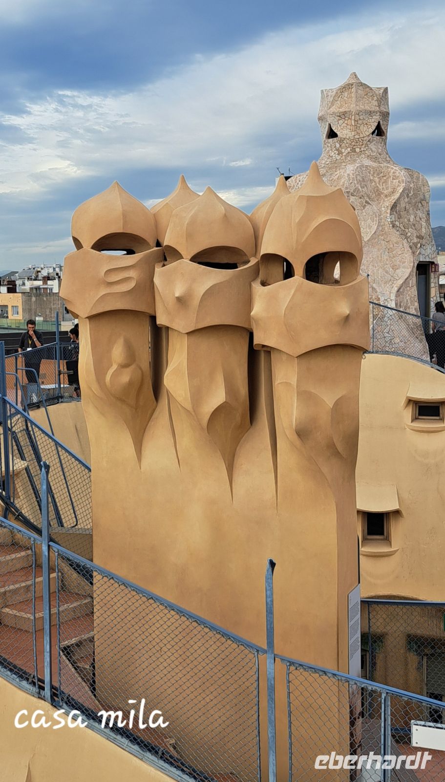 Wir fahren gemeinsam mit der Metro zur Besichtigung von La Pedrera (Der Steinbruch). Antoni Gaudi entwarf dieses Haus für die Familie Mila in den Jahren 1906-1912. Er leistete Pionierarbeit mit diesem durchdachten Gebäude. Es gibt eine natürliche Klimaanlage, drei Innenhöfe für Tageslicht in jedem Raum, für die damalige Zeit sehr ungewöhnlich. Die Fassade ist unregelmäßig mit vielen Vorsprüngen und fällt schon von weitem ins Auge. Wir besichtigen eine mit orginalen Möbeln uns Assesoires bestückte Wohnung. Besonders begeistert die Dachterrasse mit ihren ungewöhnlichen Belüftungsschächten die an Krieger aus Sicence Fiktion Filme erinnern. Die Casa Mila ist UNESCO Weltkulturerbe. Anschließend bleibt uns Zeit in Ruhe durch die Gassen und Geschäfte der Altstadt Barrio Gotic zu schlendern. Fast alle finden etwas Schönes, seien es nun neue Cowboystiefel oder tolle Umhängetaschen aus Leder hergestellt in Barcelona..