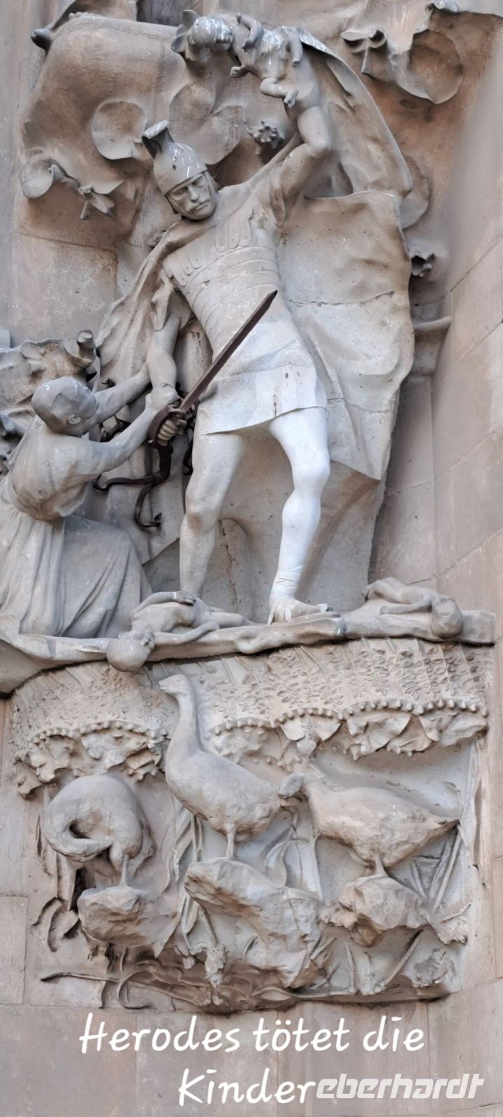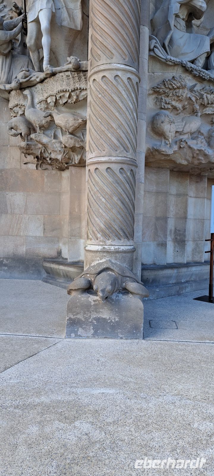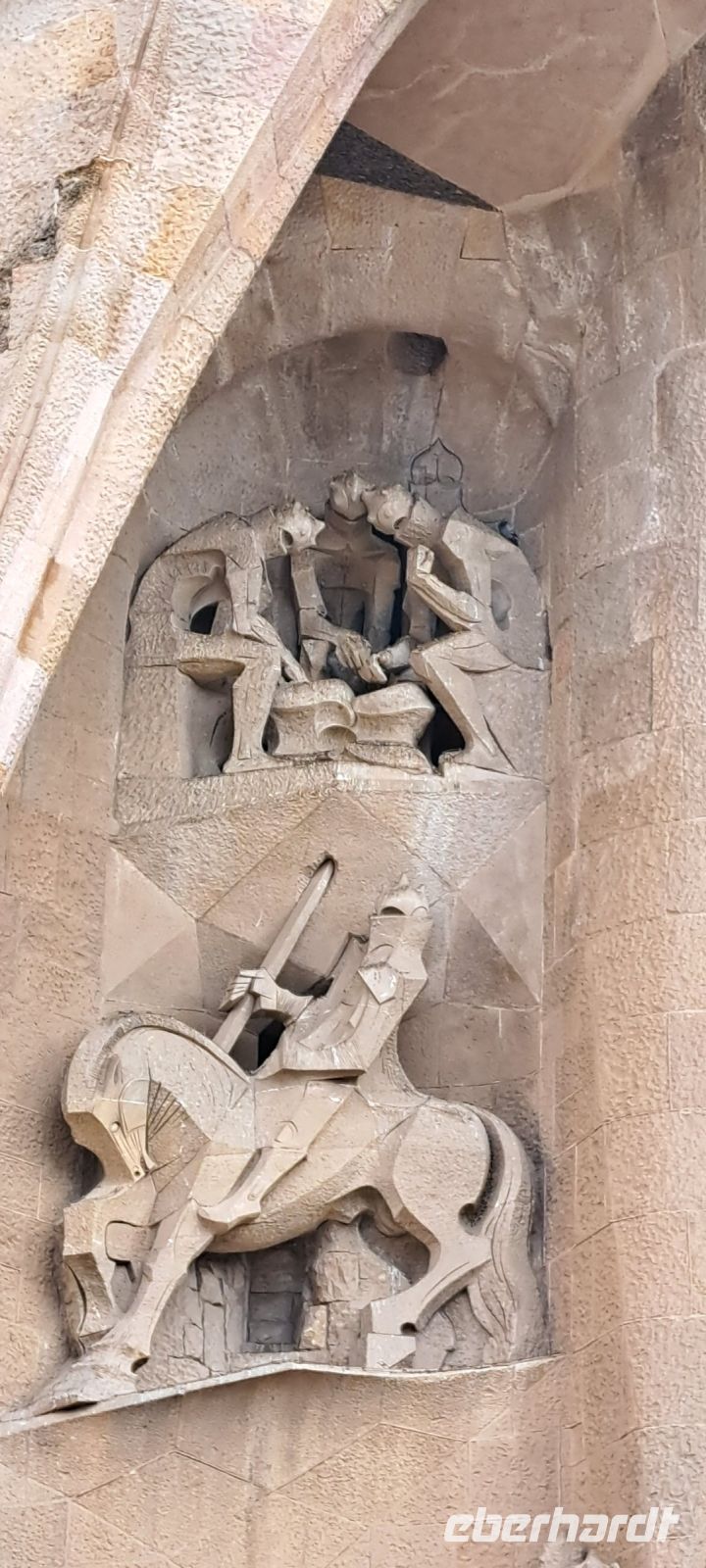 Heute steht der Tag ganz im Zeichen des großartigen Architekten Antoni Gaudi (1852-1926). Bruno unser Reiseleiter zeigt uns die prächtige einzigartige Sagrada Familia. Wir laufen einmal um die Basilika herum und Bruno macht uns auf jede "Kleinigkeit" aufmerksam . Es gibt so viele Details zu sehen. Die ganze biblische Geschichte von Christi Geburt bis zu seinem Tod am Kreuz ist auf der Fassade filigran festgehalten.