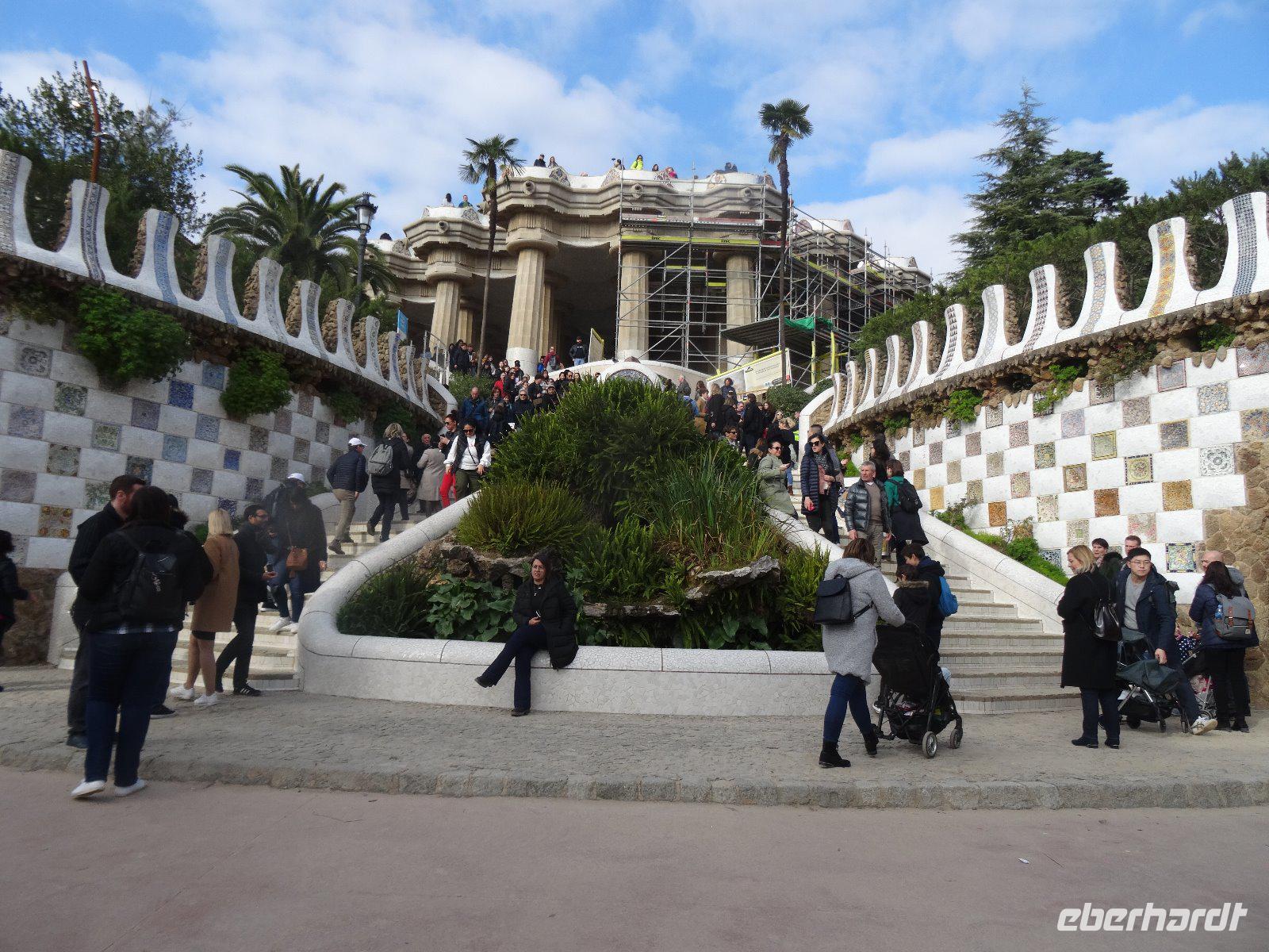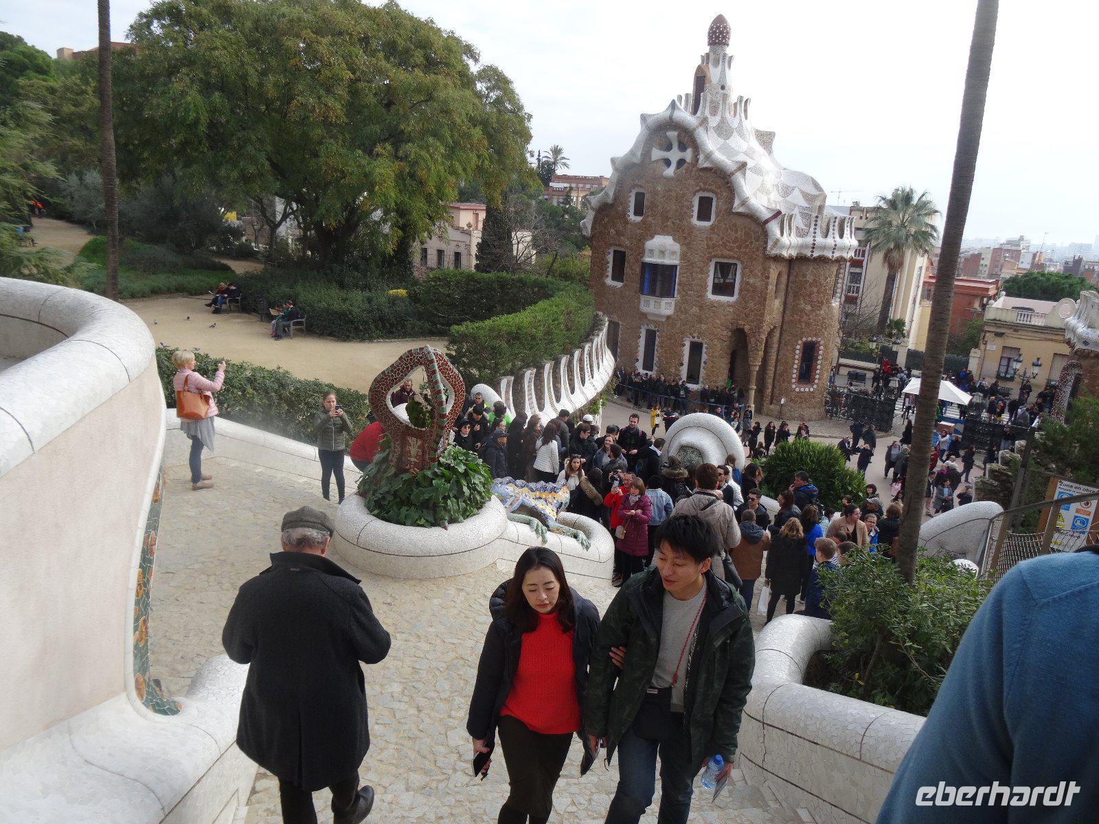 Dieser Tag beginnt im Zeichen Gaudis und wir fahren zum Park Guell. Das Wetter ist gut und so spazieren wir durch die weitläufigen Parkanlagen. Hier sollte nach den Plänen Gaudis im Auftrag von Eusebio Guell eine Gartenstadt entstehen, sie blieb jedoch unvollendet. Aber das, was gebaut wurde, trägt bereits den unverkennbaren Stil Gaudis. Die Familie Guell übergab das Gelände 1922 der Stadt Barcelona.