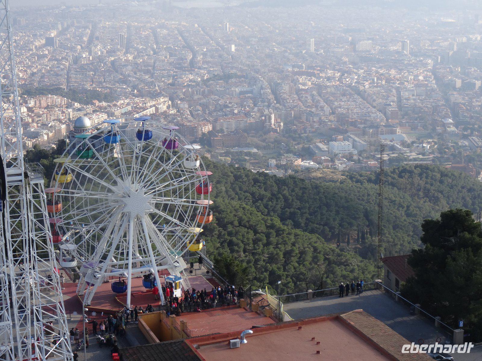 Nun wird es Zeit für eine weitere Bergbezwingung und wir fahren auf Barcelonas höchsten Berg, den Tibidabo (517 m). Auf diesem Berg befinden sich ein Vergnügungspark und eine Kirche. Der Vergnügungspark von 1901 ist schon etwas in die Jahre gekommen, die Fahrgeschäfte recht gemütlich.