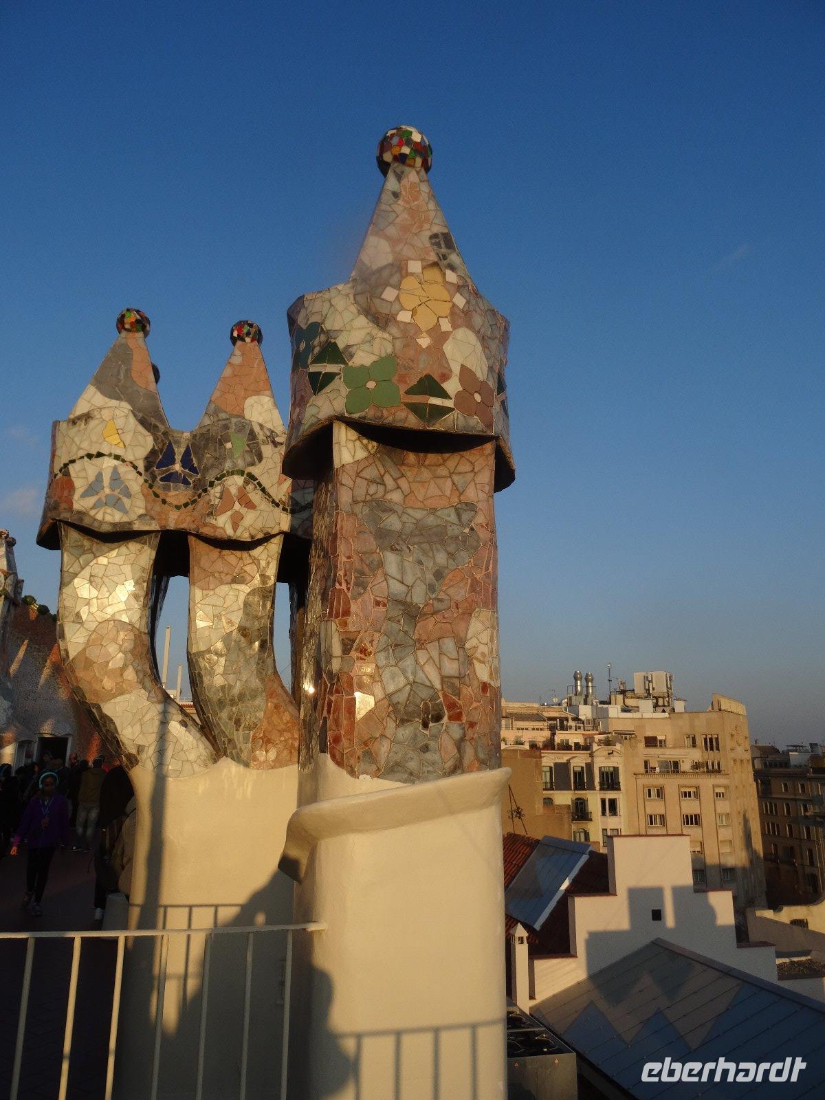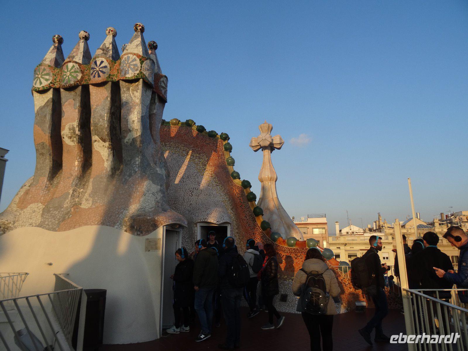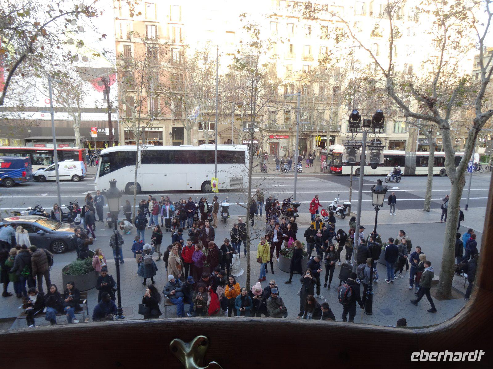 Bemerkenswert ist die Aussicht von der Plattform der Kirche aus,wohin wir mit dem Aufzug fahren. Gut durchgepustet gönnen wir uns eine kleine Mittagsrast und fahren danach wieder zurück in die Stadt, wir haben ja noch die Besichtigung Casa Batllo auf unserem Programm. Mehrfach passierten wir bereits das schöne Gebäude im Passeig Gracia, aber nun gehen wir hinein.Das Haus gehörte dem Industriellen Josep Batlló, zwischen 1902 und 1906 wurde es von Gaudi umgebaut. Wir wandern durch das Haus und bewundern die sanft geschwungenen Linien, die Fenster und Türen. Das Dach soll mit seiner schuppigen Bedeckung an eine Echse erinnern oder vielleicht auch an den Drachen, der von St. Georg, dem Schutzpatron Kataloniens, getötet wird. Beeindruckt verlassen wir das Haus, einige stärken sich im Nachbarhaus Casa Amatller noch mit eine heißen Schokolade. Nach einer kleinen Freizeit treffen wir uns 20:00 Uhr wieder um zum Abendessen in das Lokal "Mil Gritos" zu gehen. Das Essen schmeckt allen gut und der Wein ebenso, so werden 3 Flaschen Rotwein nachgeordert.