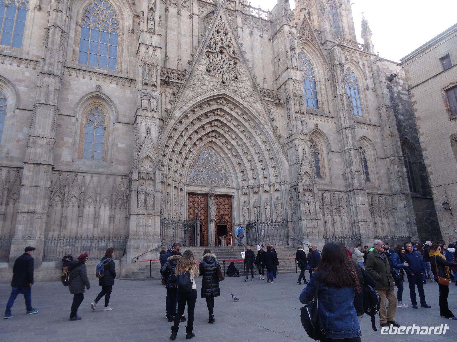 Die Markthalle ist leider geschlossen, wir unternehmen noch einen Abstecher zur gotischen Kirche Santa Maria del Pi, kehren zurück zur Rambla und bewundern das Gran Teatre de Liceu. Das Opernhaus war 1994 ausgebrannt, aber seit 1999 ist es wieder in Funktion. Wir überqueren die Placa del Rei, 1848 angelegt und mit Lampen von Gaudi geschmückt. Die Kathedrale Santa Eulalia sehen wir nur von außen, da ist gerade Messe. Am Königspalast vorbei kehren wir der Rambla nun ein wenig den Rücken und laufen durch die Straße Laietana. Hier finden wir ein Café, wo wir uns etwas ausruhen können und wir stärken uns mit einem Schinkenbrötchen oder etwas Süßem und Kaffee. Damit ist unser Rundgang beendet und es ist noch etwas Freizeit für etwas mehr Stadtbummel oder Relaxen im Hotel, wir haben ja am Abend noch einen schönen Programmpunkt: das Neujahrskonzert.