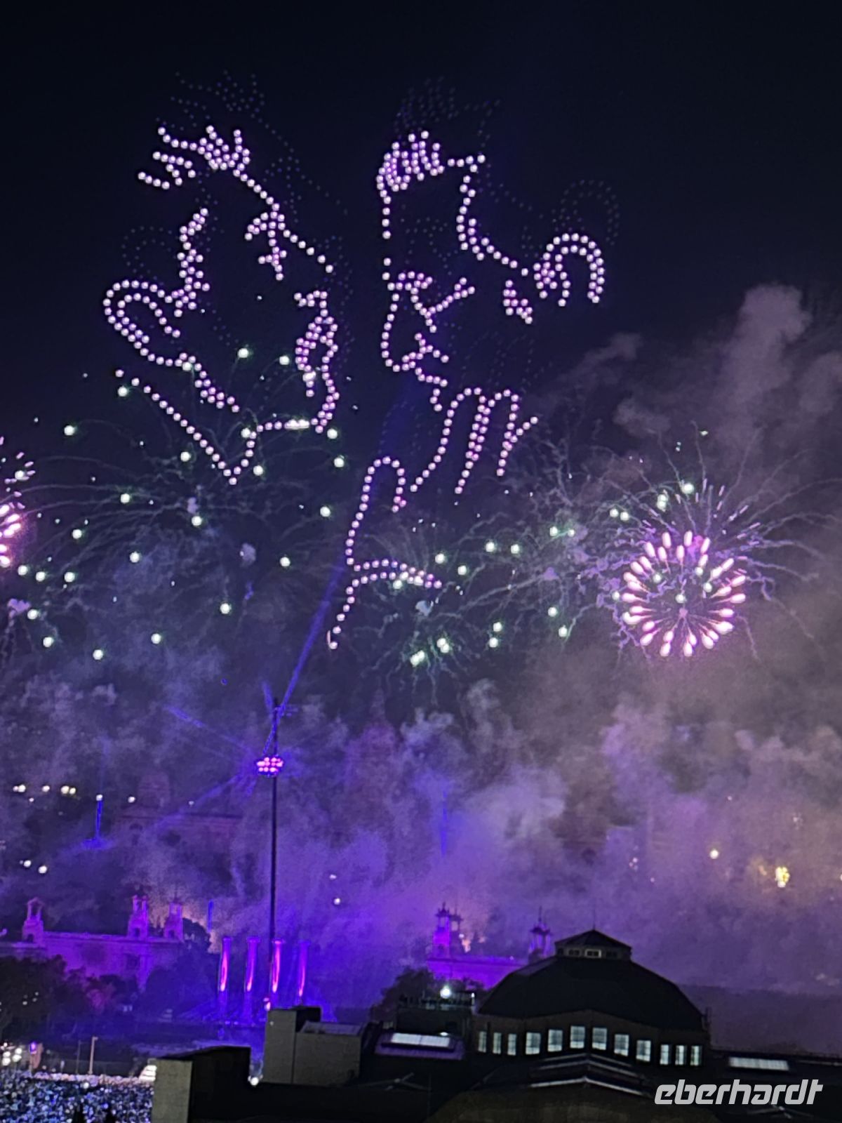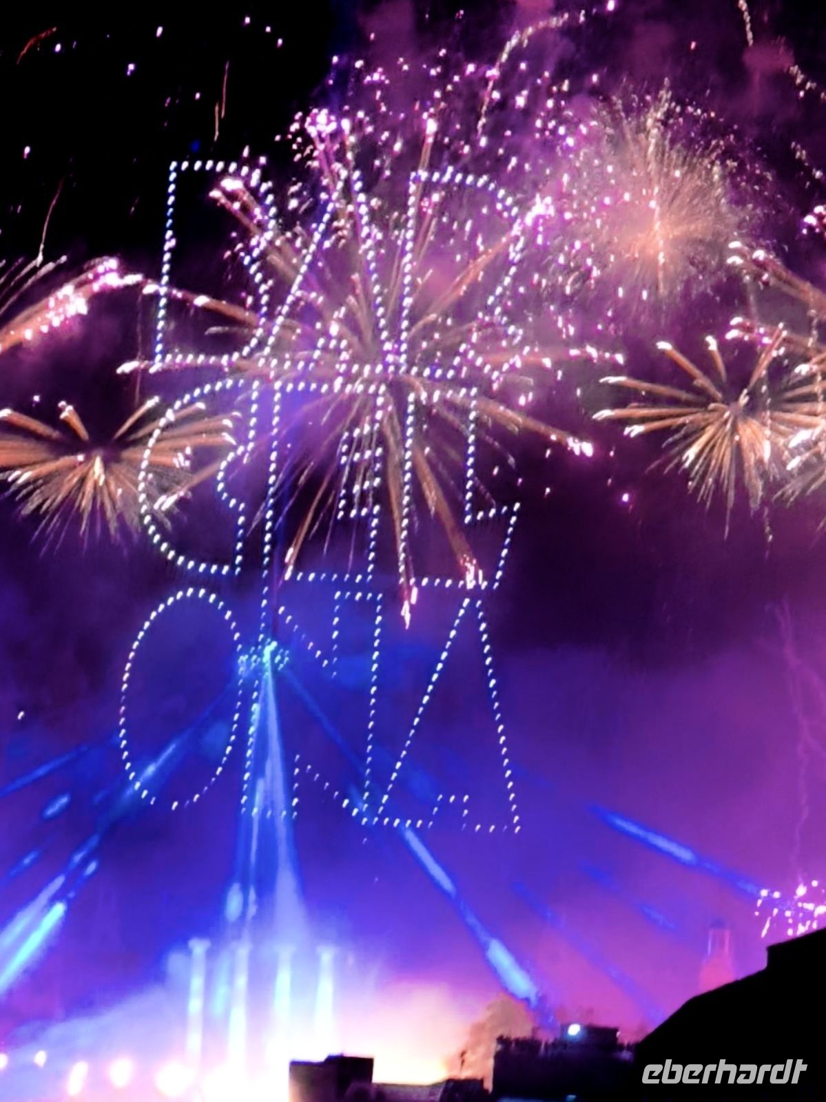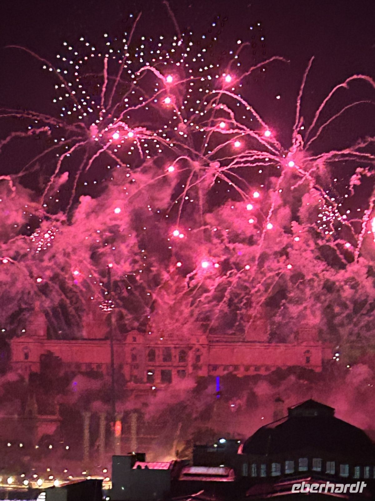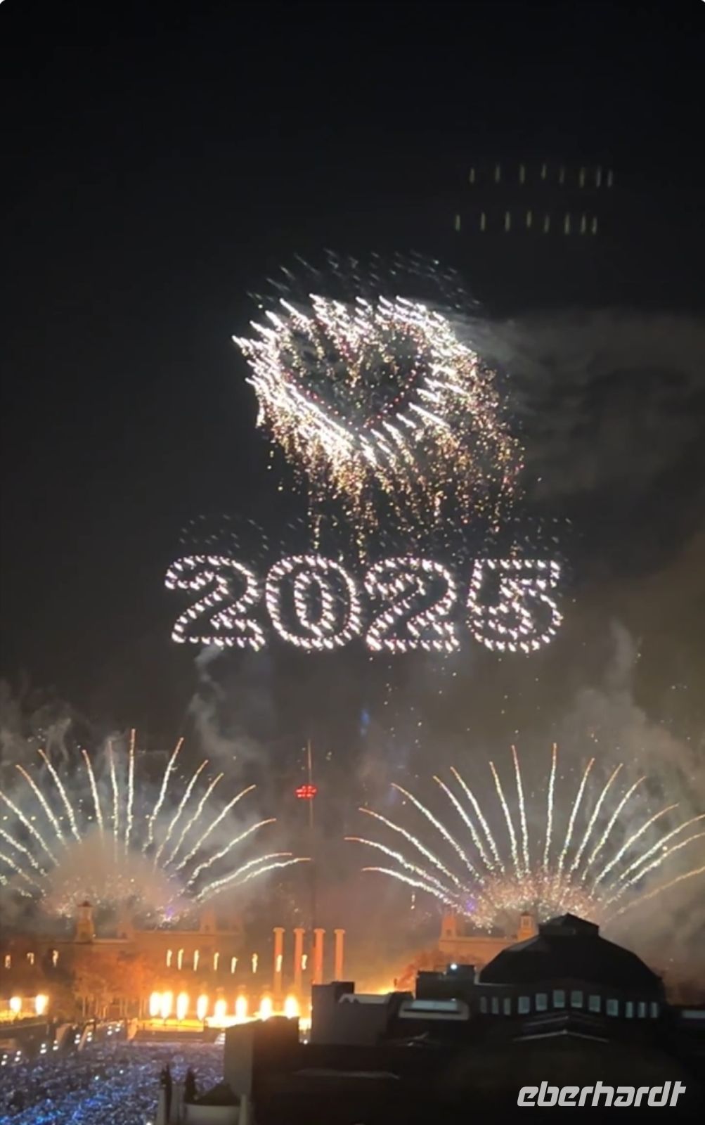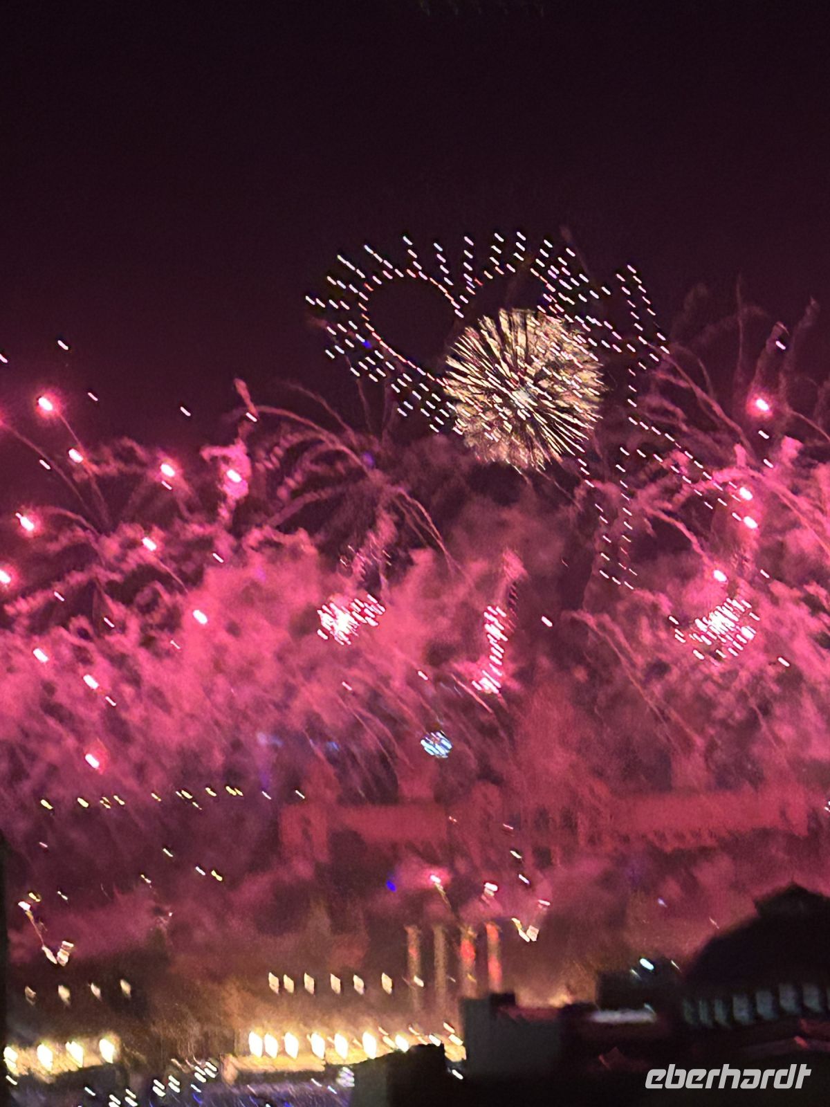 Pünktlich finden wir uns auf der Hotelterrasse ein und können von unserem „Logenplatz“ aus das beeindruckende Feuerwerk mit Drohnen-Show verfolgen. Es beginnt mit den zwölf Glockenschlägen - und je einer Weintraube dazu - und steigert sich dann in eine phänomenale Darbietung von Weltklasse! WOW! und Prosit Neujahr!