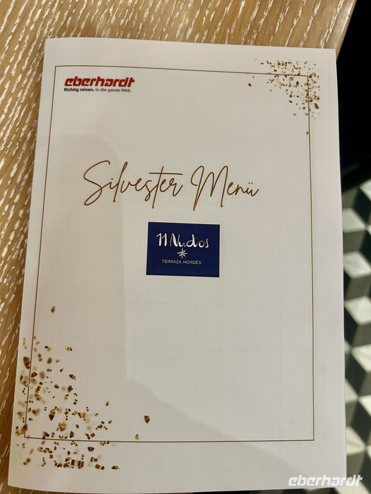 Wir werden dies von der Hotelterrasse bestaunen - exklusiv für Hotelgäste. Doch zuvor genießen wir ein feines Silvestermenü im Restaurant 11Nudos. Das Restaurant ist wunderschön geschmückt und das Essen ganz vorzüglich. Auch eine Partytüte gibt es dazu und so sorgen wir mit Hütchen, Tröten und Luftschlangen für die passende Stimmung. ?Nach spanischem Silvesterbrauch werden zu Mitternacht 12 Weintrauben gegessen - jede steht für einen Neujahrswunsch - und eigentlich sollten wir auch rote Unterwäsche tragen - das soll Glück bringen! Nun gut, wir hoffen, es klappt auch ohne!