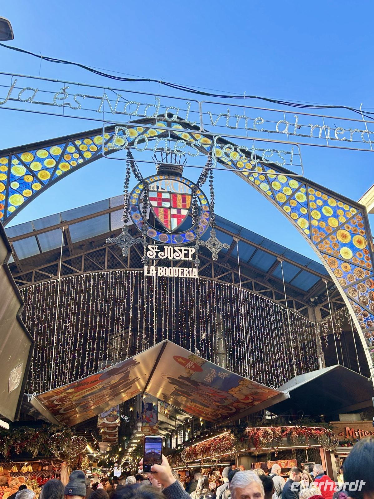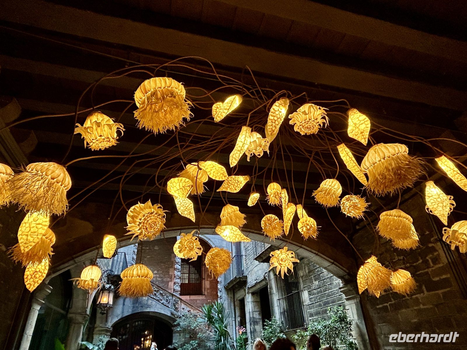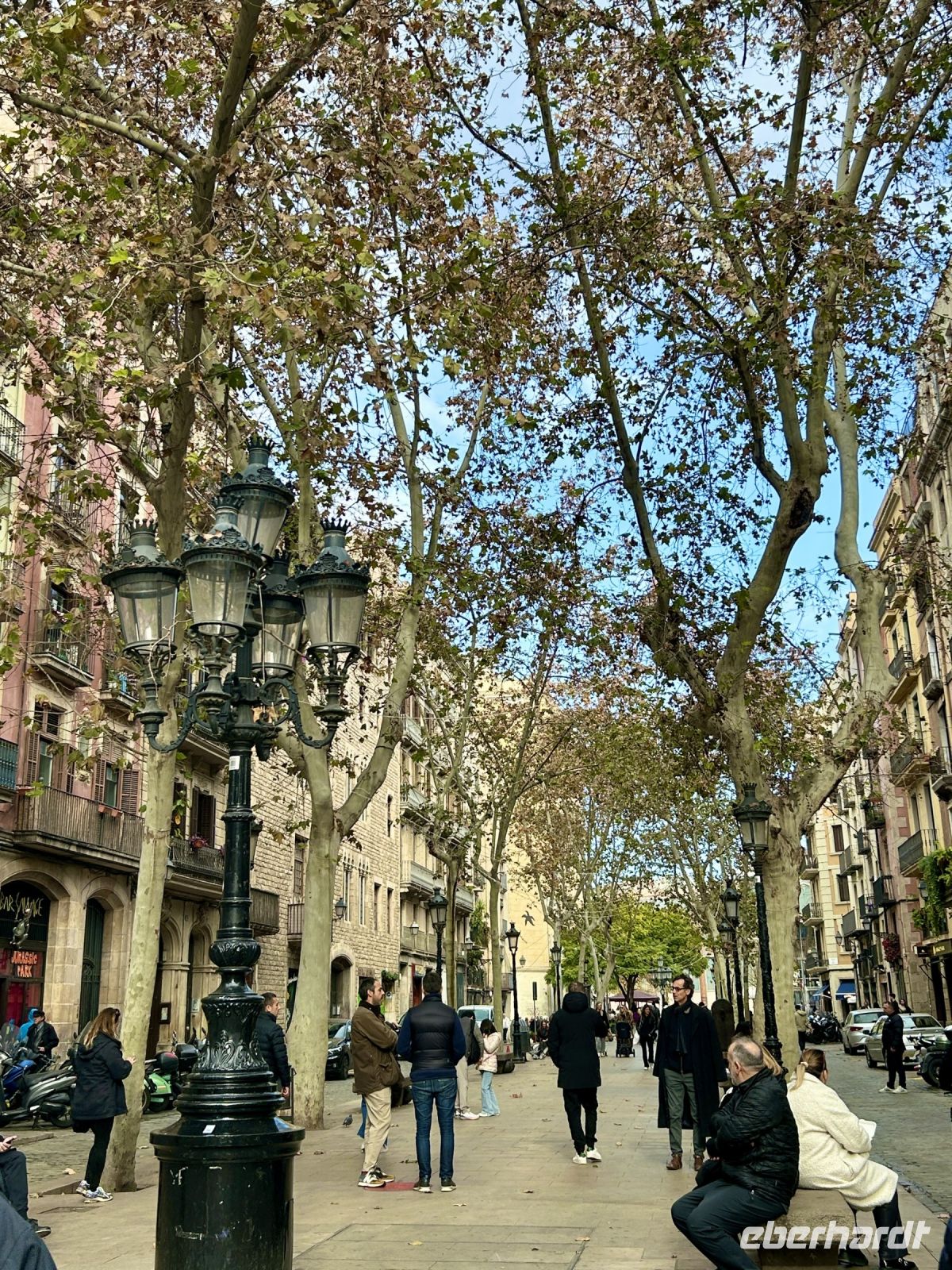 Am Abend machen wir uns (gemeinsam mit der Metro) auf den Weg zu den berühmten Ramblas – der pulsierenden Promenade, die sich vom Plaça de Catalunya bis zum Hafen erstreckt. Hier mischen sich Straßenkünstler, Blumenstände und Cafés zu einem bunten Mosaik. Und jetzt, zum Jahresende, beeindruckt eine üppig-fantasievolle Weihnachtsbeleuchtung.
