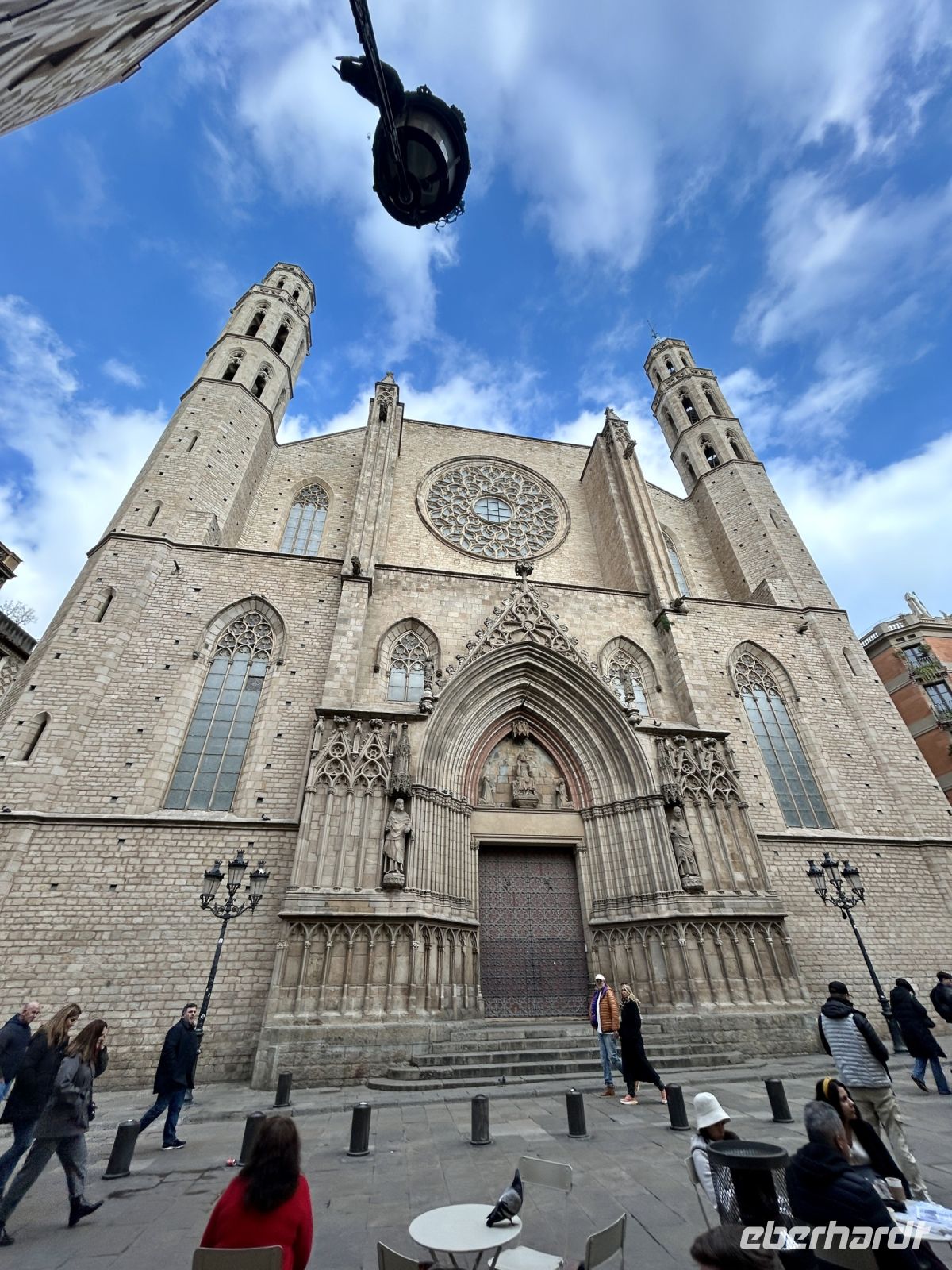 Auf dem Rückweg kommen wir durch das Ribeiraviertel, laufen entlang des Passeig del Born bis zur Kirche Santa Maria del Mar. Dies ist die beliebteste Kirche der Stadt und für viele Stadtbürger ist es eine Ehre und ein großes Anliegen hier heiraten zu können. Wir machen eine Kaffeepause auf dem Vorplatz und beobachten das bunte Treiben.