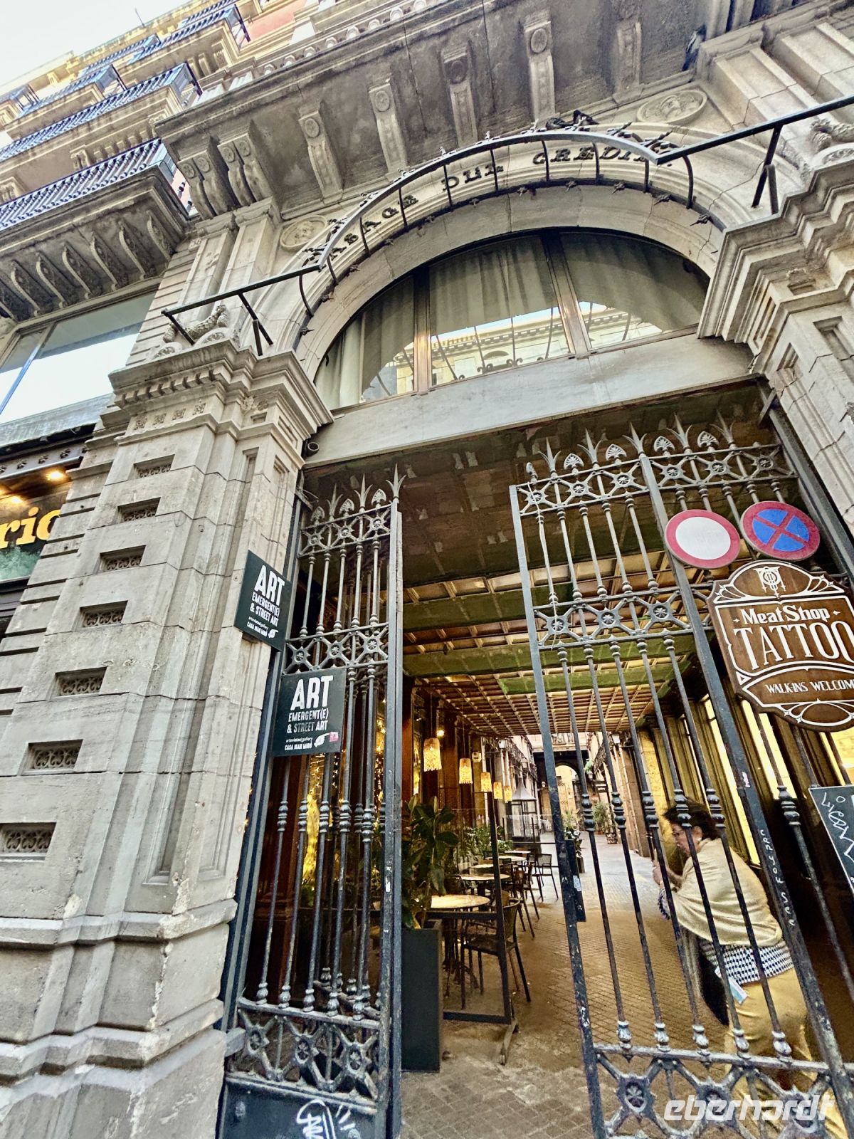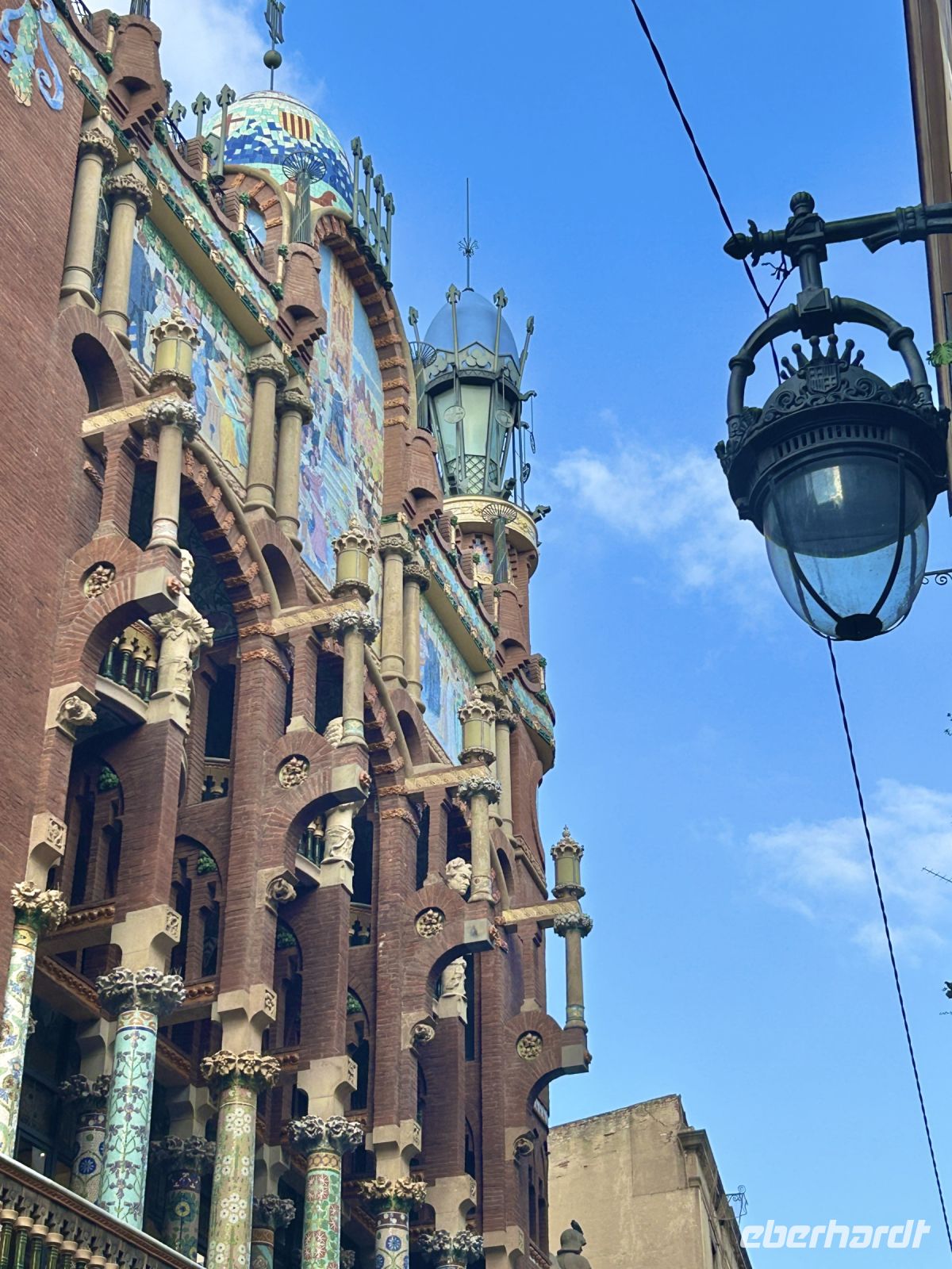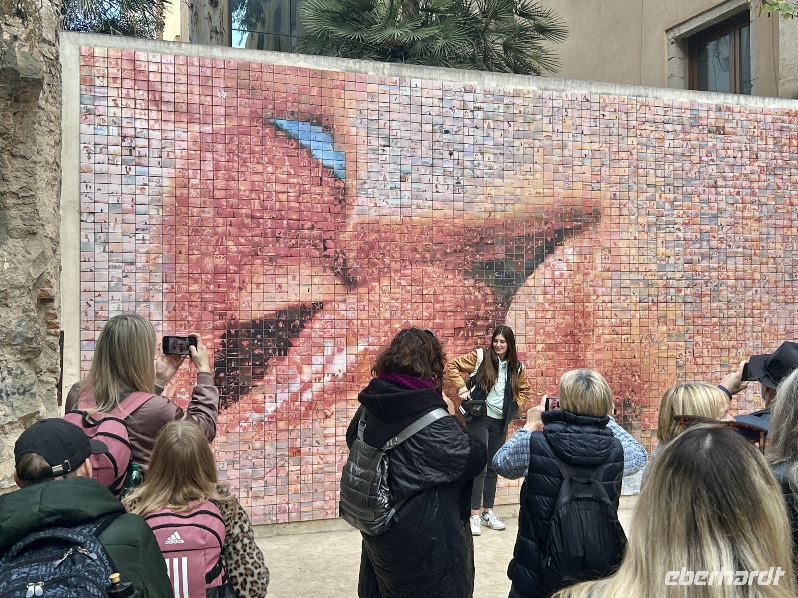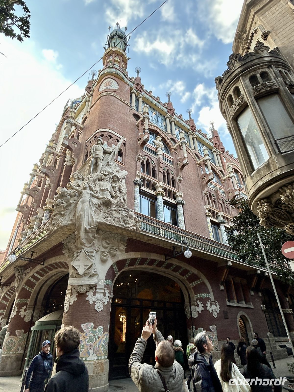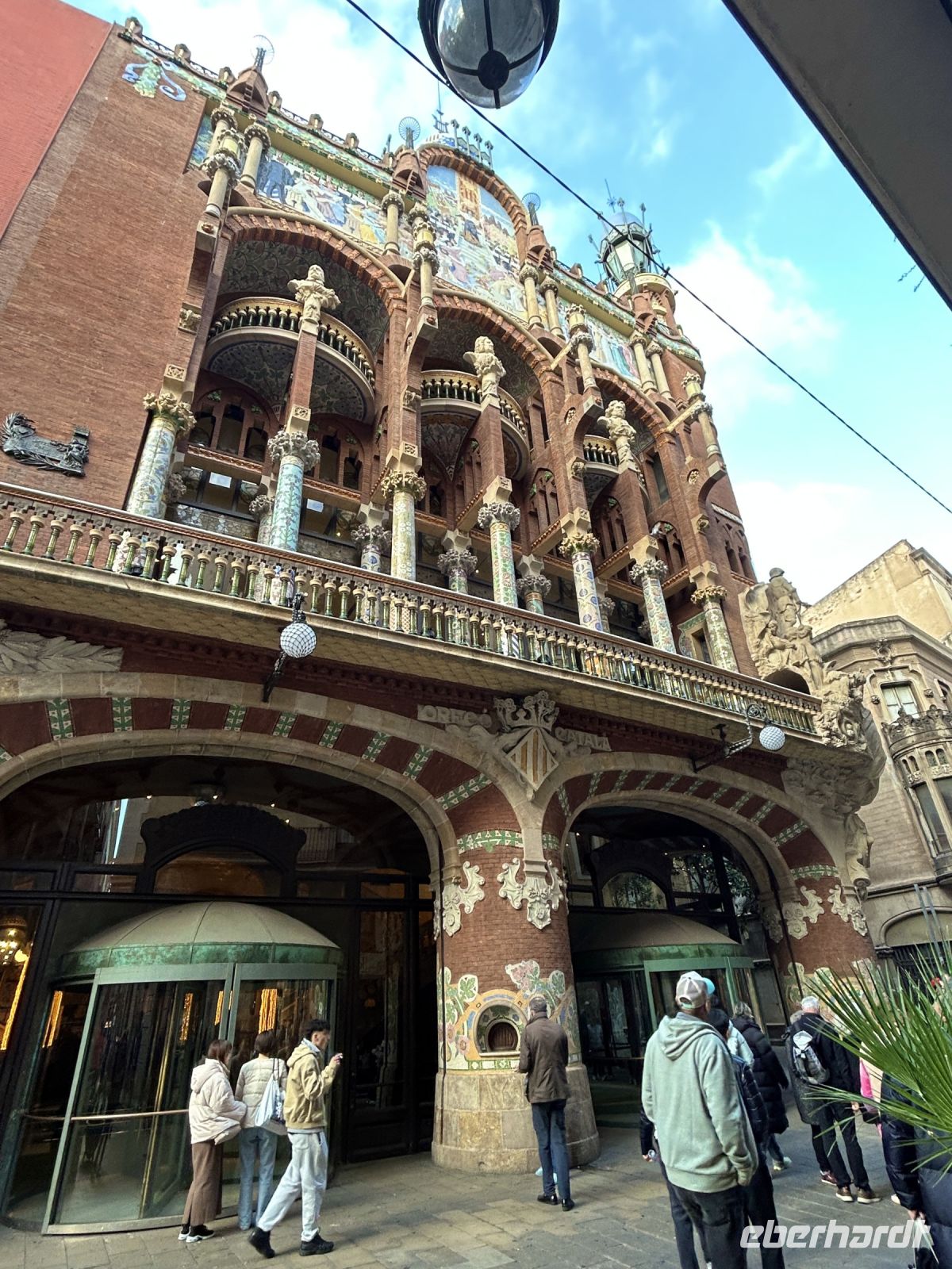 Durch die Gassen geht es weiter vorbei am MocoMuseum, noch ein Blick in das Café 4Gats und schließlich stehen wir vor der berühmten Wand mit „dem Kuss“. Instagramer wissen Bescheid. Unser Spaziergang endet am Palau de la Musica, den wir am Abend noch von innen sehen werden. Erstmal fahren wir ins Hotel zurück.