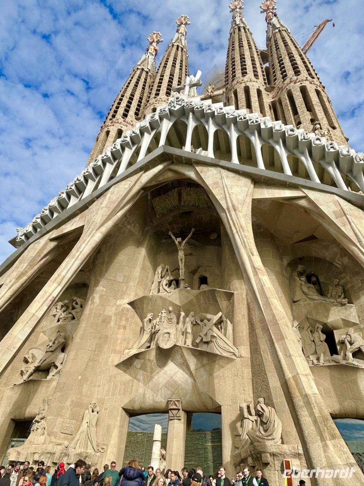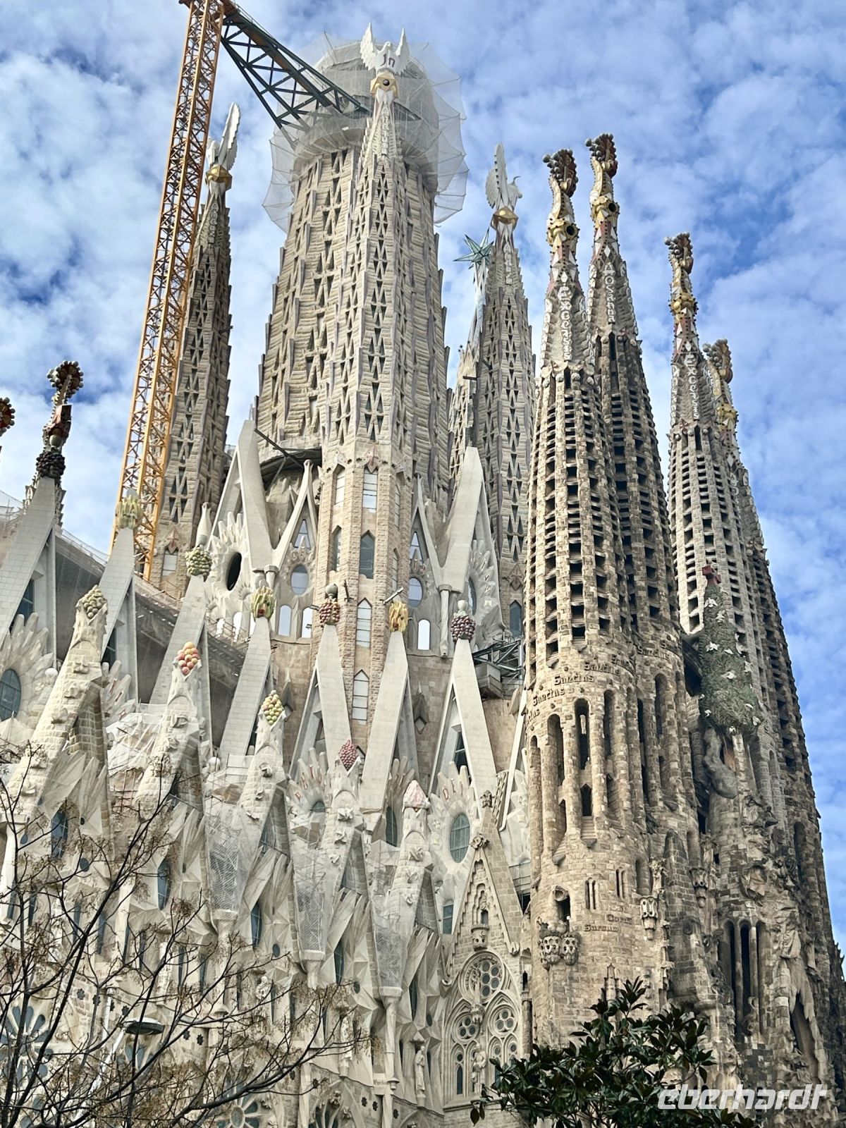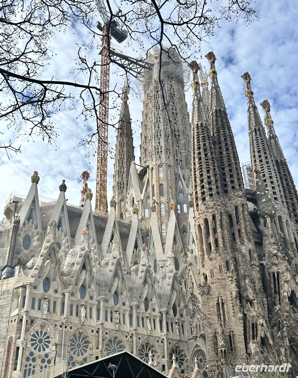 Danach machen wir uns auf, die Sagrada Família zu besuchen, Antoni Gaudís unvollendetes Meisterwerk. ?Die Basilika, deren Bau 1882 begann, beeindruckt uns mit ihrer außergewöhnlichen Fassade und dem lichtdurchfluteten Innenraum. Die gewaltigen Säulen, die wie Bäume emporragen, lassen uns staunen. Der Bau sollte bis 2026, pünktlich zum 100. Todestag Gaudís fertiggestellt sein - nun scheint 2030 eher realistisch. Die vier Türme der Evangelisten wurden bereits im November 2023 fertiggestellt. 2010 weihte Papst Benedikt die Kirche ein.