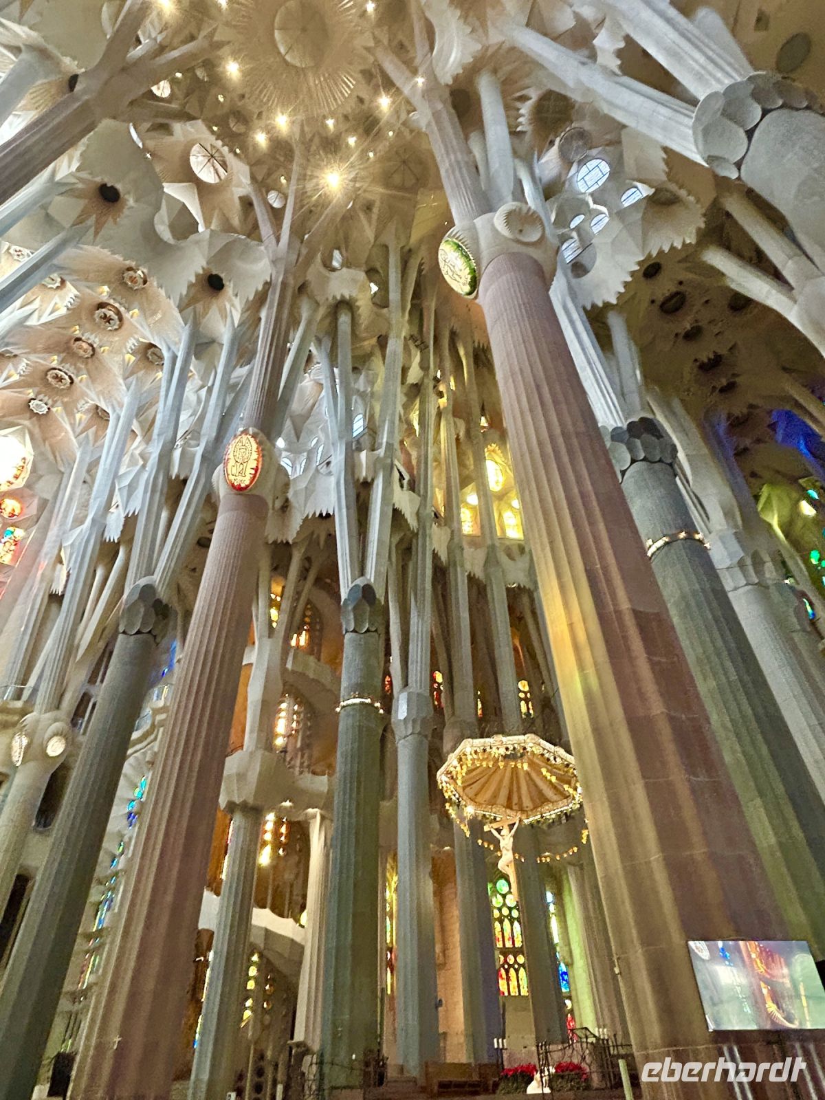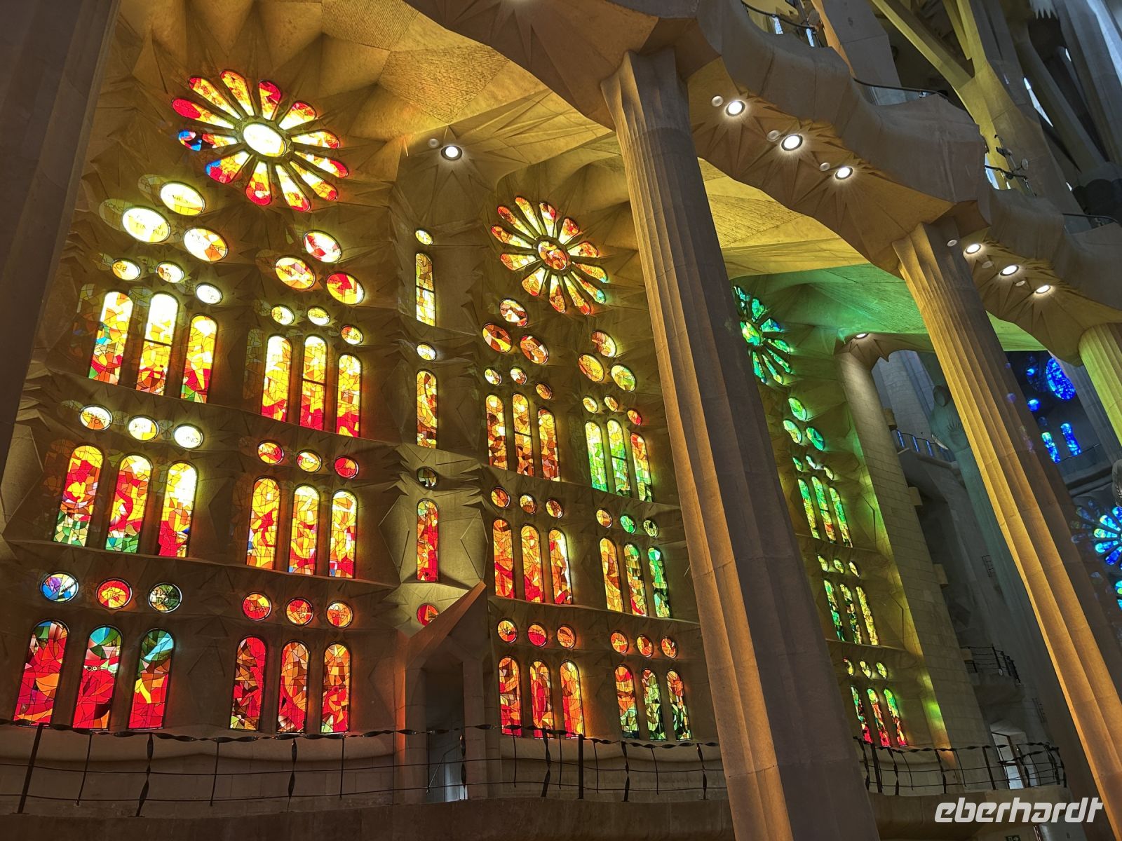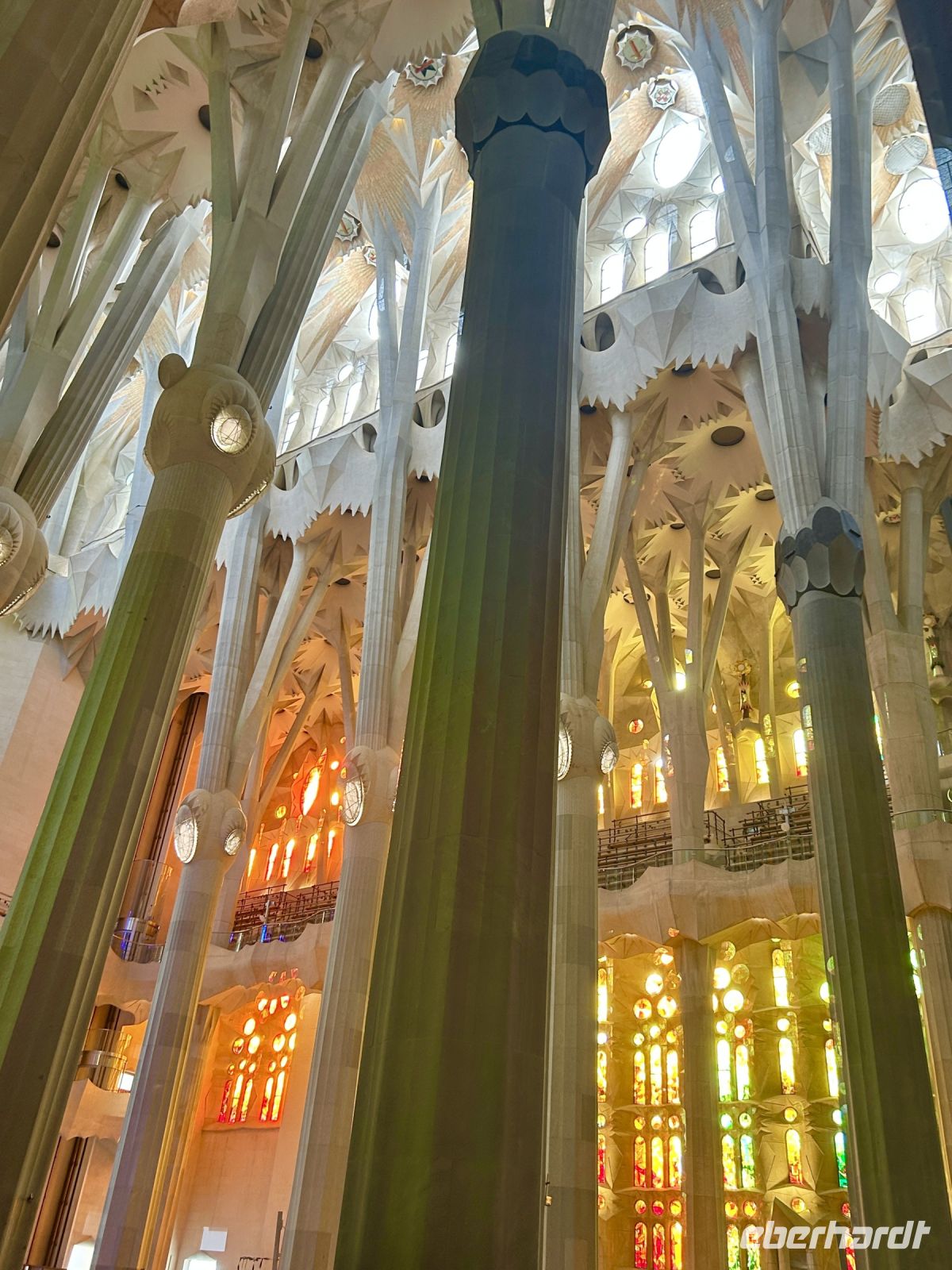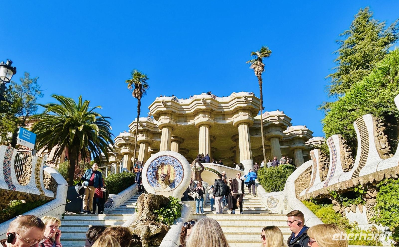 Danach machen wir uns auf, die Sagrada Família zu besuchen, Antoni Gaudís unvollendetes Meisterwerk. ?Die Basilika, deren Bau 1882 begann, beeindruckt uns mit ihrer außergewöhnlichen Fassade und dem lichtdurchfluteten Innenraum. Die gewaltigen Säulen, die wie Bäume emporragen, lassen uns staunen. Der Bau sollte bis 2026, pünktlich zum 100. Todestag Gaudís fertiggestellt sein - nun scheint 2030 eher realistisch. Die vier Türme der Evangelisten wurden bereits im November 2023 fertiggestellt. 2010 weihte Papst Benedikt die Kirche ein.
