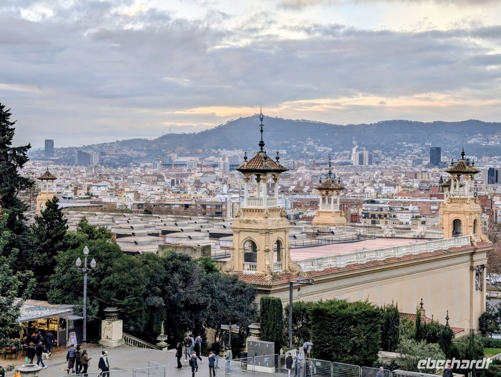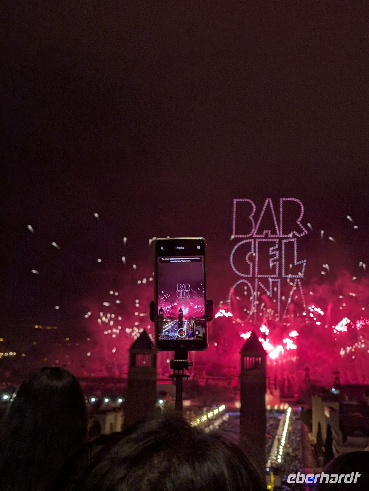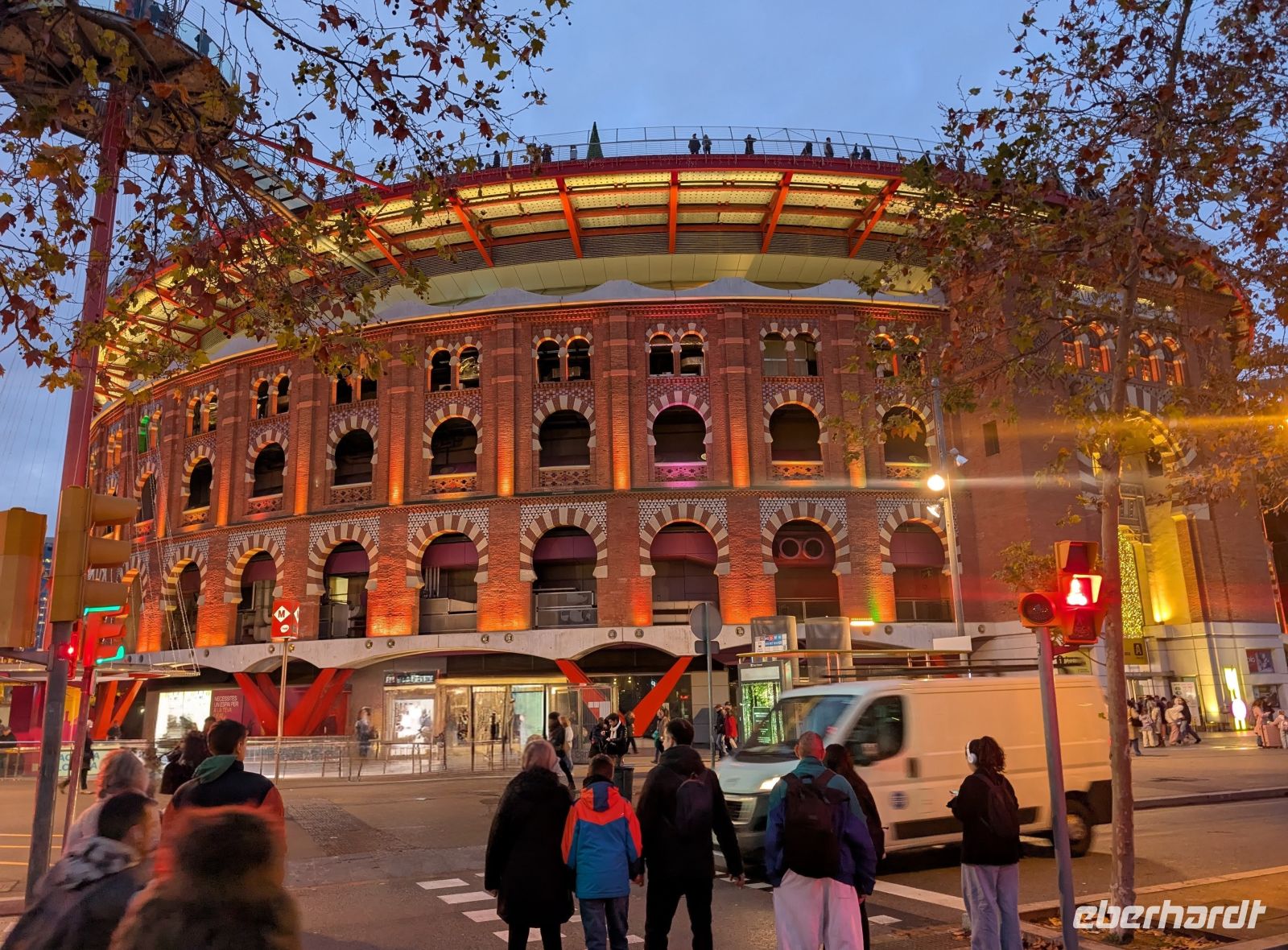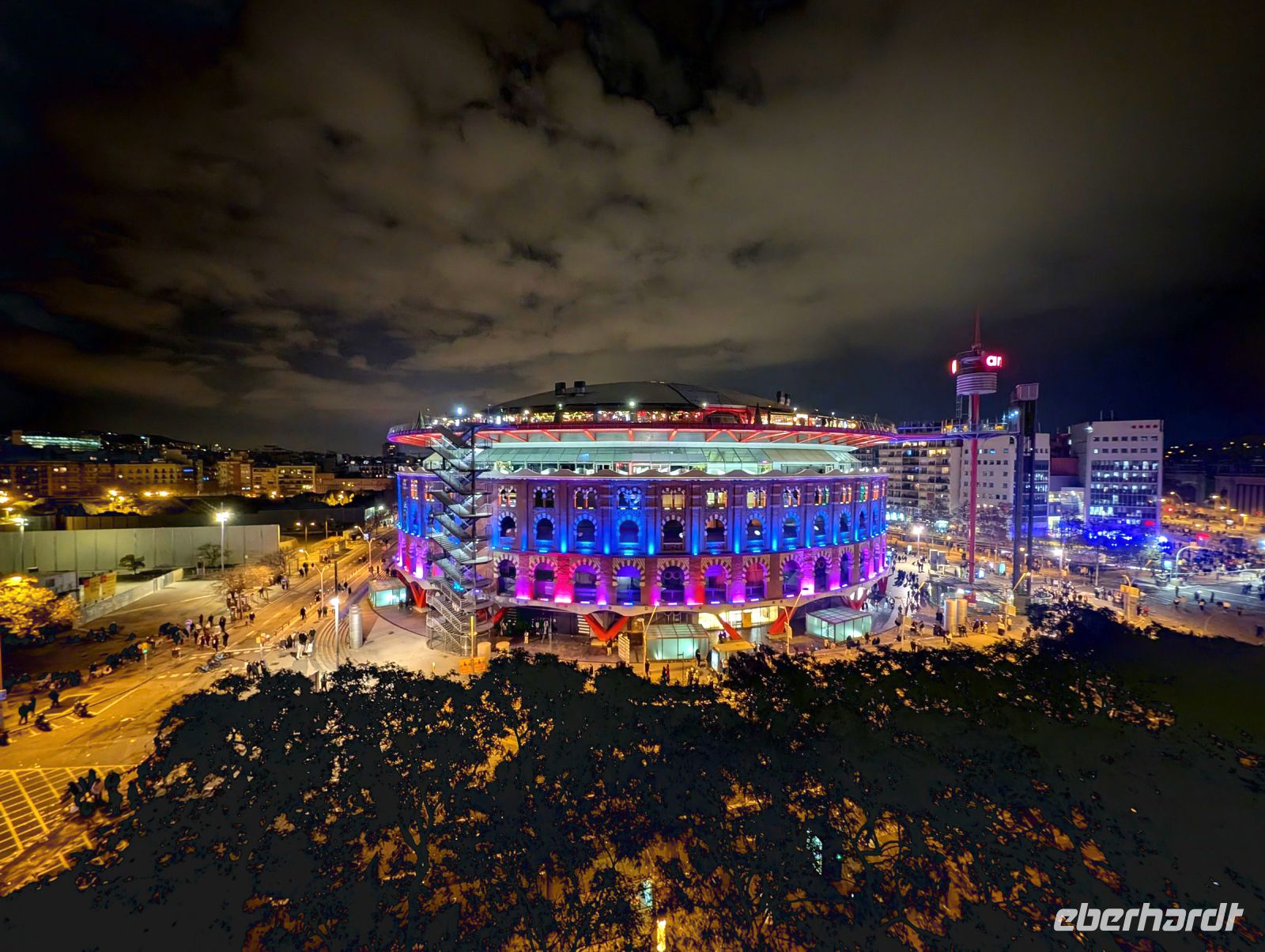 20:30 begann das Silvesteressen im schönen Restaurant "11 Nudos", welches sich auf dem Dach der ehemaligen Stierkampfarena befindet. Das Personal war auch im Vorfeld sehr freundlich und hat alle meine Fragen zur Silvesternacht geduldig und professionell geklärt. Es gab ein leckeres Menü inclusive Aperitif, Wein und nicht zu vergessen den unerlässlichen 12 Glückstrauben für Mitternacht. Zusätzlich gab es eine Party-Tüte, die von den Gästen gut genutzt wurde. Die Sicht von der Stierkampfarena auf das Feuerwerk, welches am Magischen Brunnen von Montjuïc, unterhalb des Nationalmuseums stattfand, war grandios. Menschenmassen standen auf der Plaza de España bis hoch zum Brunnen. Mit einem Teil der Gruppe bin ich kurz vor Mitternacht auf die Dachterrasse unseres Hotel gegangen und wir haben das Spektakel von dort genossen und auf das neue Jahr angestoßen. Es war ein einmaliges Erlebnis!