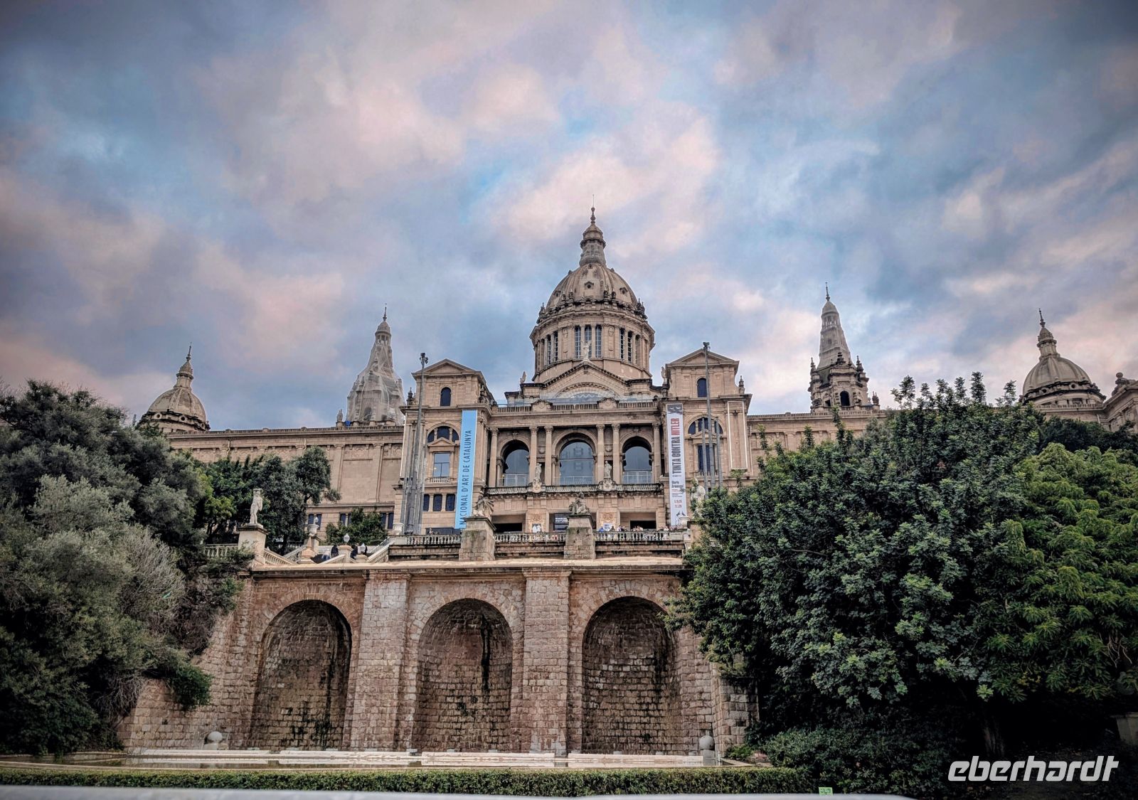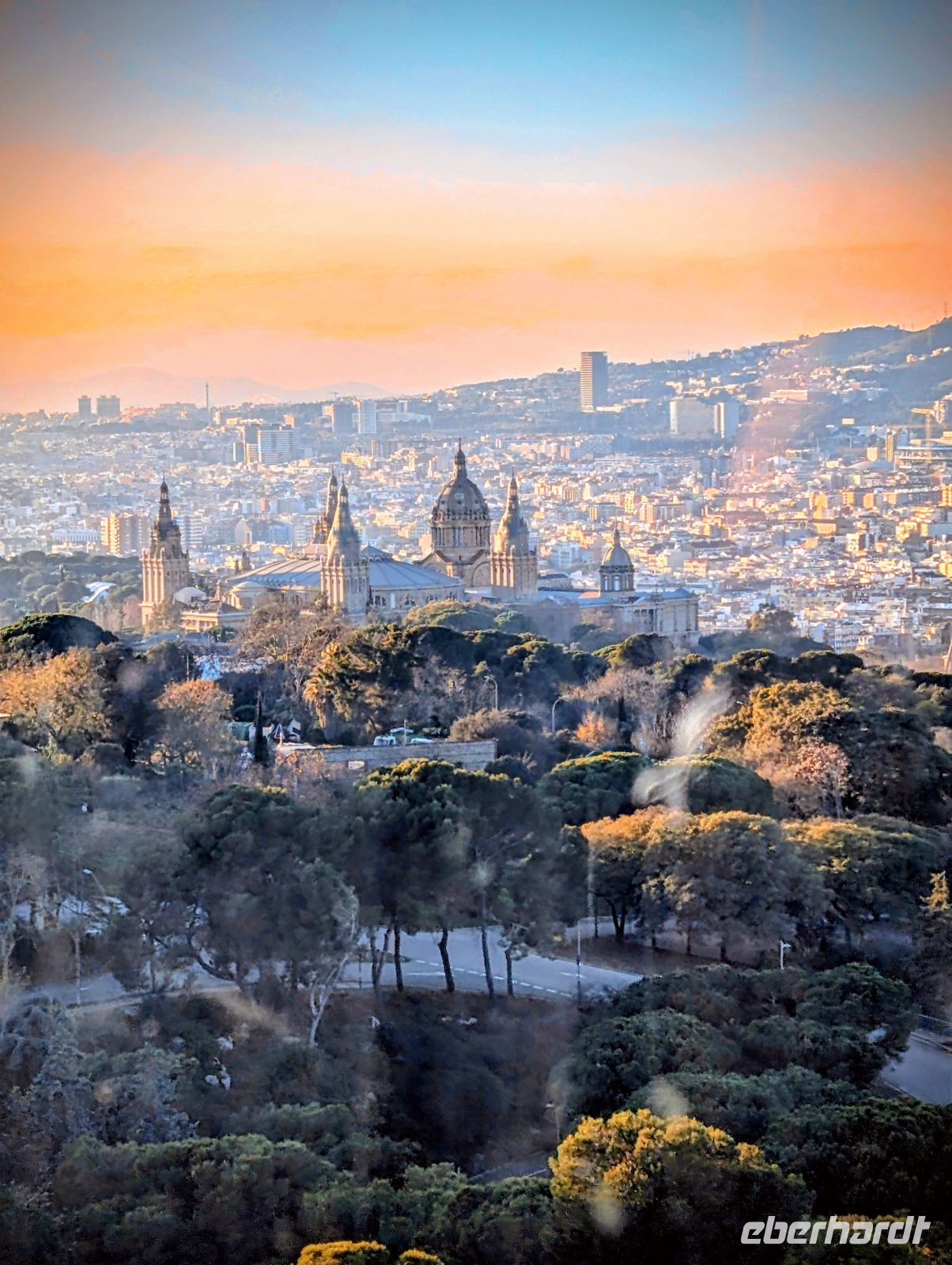 Die Anreise meiner 9 Gäste erfolgte von Frankfurt, Düsseldorf, Berlin und München. Nachdem am frühen Nachmittag alle Gäste eingetroffen sind, haben wir uns zum Kennenlernen in der schönen Hotellobby bei Sekt und Co. getroffen und uns gegenseitig vorgestellt. Es fand gleich ein reger Austausch über das Reisen statt. Es war sehr schön zu sehen, welch positive Stimmung herrschte. Auf dem Plan stand eigentlich die Fahrt mit der Seilbahn und Genuss des Sonnenuntergangs. Da es an dem Tag geregnet hatte und nun noch bewölkt war, war mein Vorschlag, die Seilbahnfahrt auf den Folgenachmittag zu verschieben, da die Wetterprognose bestes Wetter versprach. Dies wurde einstimmig akzeptiert. Als Alternative schlenderten wir gemütlich an der Plaza de España vorbei hoch zum Nationalmuseum. Dieser sehr wichtige Platz wurde anlässlich der Weltausstellung 1929 gebaut. Von oben schauten wir auf die Stadt und waren froh, nicht in den Gondeln zu sitzen, denn es fehlte am schönen Sonnenuntergang. Im Anschluss ging es zurück ins Hotel zur Entspannung, bevor es 20:00 Uhr ein 3-Gänge-Menü im stilvollen Hotelrestaurant Filigrana gab. Während des Essens gab es weitere Gespräche zwischen den Gästen und wir ließen den Abend genüsslich ausklingen. Einige Gäste saßen später noch an der Bar.