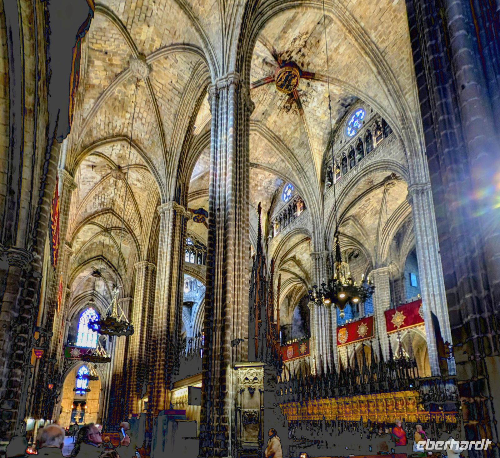 Nach wiederum ausgiebigem Frühstück starteten wir am späten Vormittag in den Silvestertag mit einem Bustransfer Richtung Stadtmitte. Dort schlenderten wir vorbei am Hardrock-Café und entlang der Portal del Angel, einer autofreien Flanierstraße. Wir machten eine Pause im bekannten Restaurant " Els 4 Gats", wo uns Ingo abholte und wir die Stadtführung begannen. Es gab viele interessante Geschichten über das Gotische Viertel, die Kathedrale und das Jüdische Viertel zu hören. Nach der Stadtführung ging es mit dem Taxi ins Hotel, um sich für den Silvesterabend noch etwas ausruhen zu können.