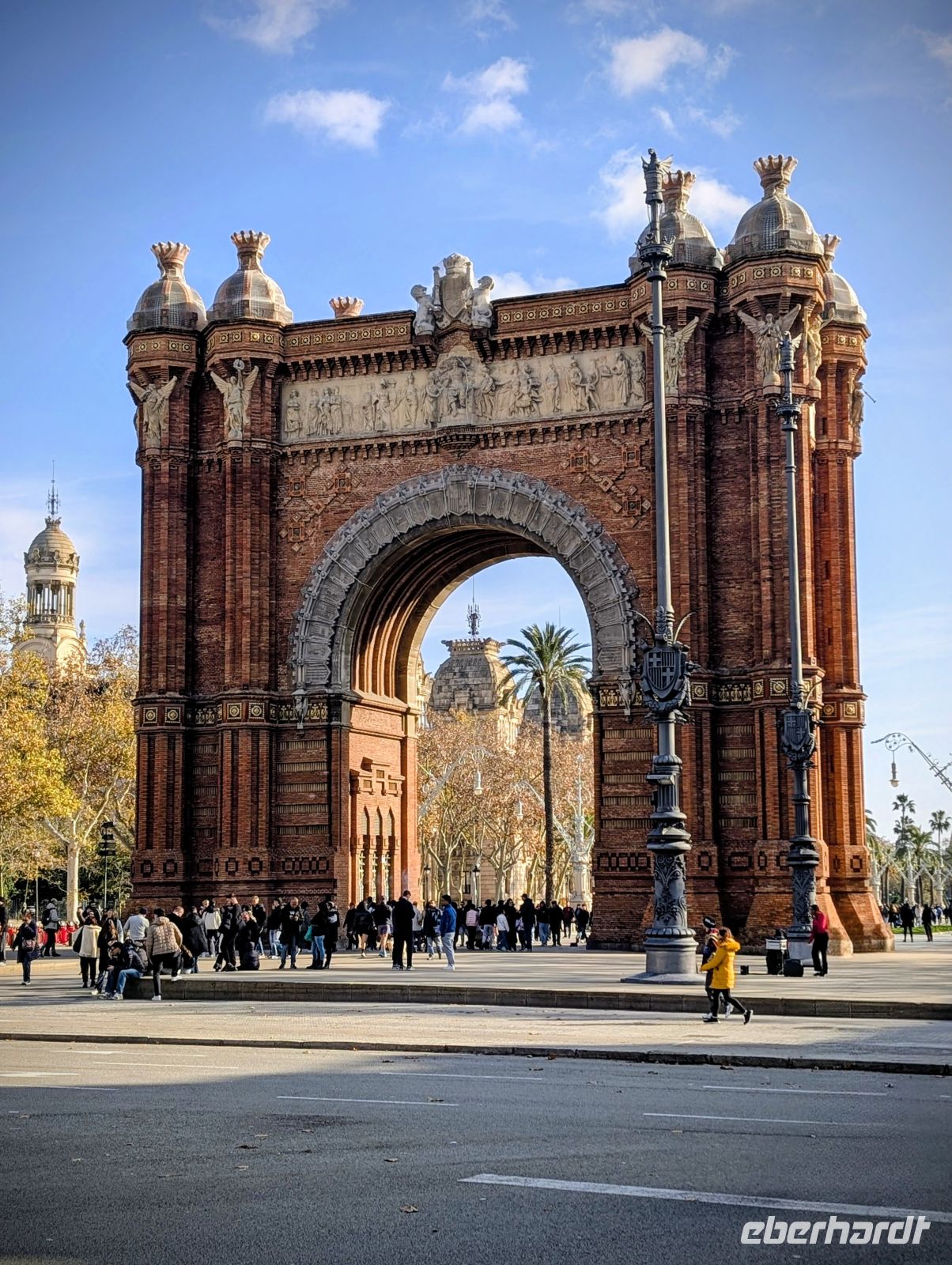 Nach dem Frühstück ging es mit Ingo zu einem weiteren architektonischen Highlight Gaudís, der Casa Batlló. Dieses imposante Gebäude erklärte uns Ingo sehr gut, so dass wir viel über die Einzigartigkeiten und Funktionalitäten des Hauses erfuhren. Im Anschluss gab es die Möglichkeit einer kurzen Kaffeepause im benachbarten Café der Casa Amattler. Danach schlenderten wir bei strahlend blauem Himmel die Prachtstraße Passeig de Gràcia hinunter, wo uns eine besondere Weihnachtsbeleuchtung erfreute. Diese ist auch tagsüber durch Lichtreflexionen sehr hübsch anzusehen. Unser nächstes Ziel war der Palau de la Mùsica, in welchem am Abend das Neujahrskonzert gespielt wurde. Das Gebäude zählt ebenfalls zum Weltkulturerbe. Weiter ging es zum Triumphbogen, wo wir uns eine Verweilmöglichkeit draußen suchten. Bei herrlichem Sonnenschein und milden Temperaturen ließen sich die Neujahrsgetränke nochmal mehr genießen! Ein Teil der Gruppe fuhr anschließend mit dem Taxi zurück ins Hotel, der Rest spazierte mit mir durch den Parc de la Ciutadella. Im Anschluss gab es eine Entspannungszeit, bevor wir gemeinsam mit der Metro zum Restaurant “La Cuina de Laietana”, unweit des Konzerthauses, fuhren.