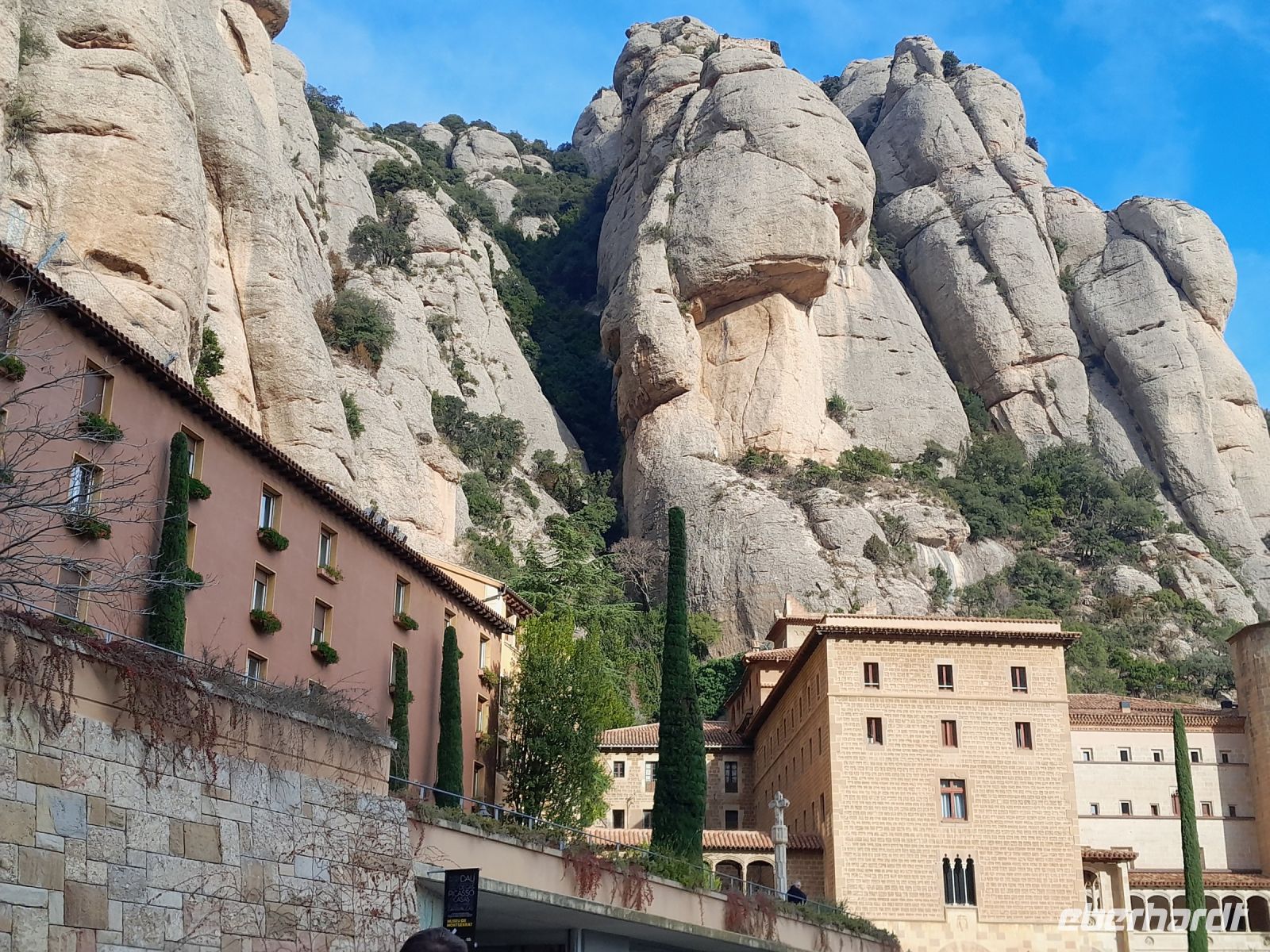Nachdem wir fast ausgeschlafen und gefrühstückt haben beginnt heute der Tag eine Stunde später. Diesen ersten Tag des Jahres 2024 widmen wir einer besonderen Sehenswürdigkeit von Katalonien: dem Benediktiner-Kloster Montserrat. Das Kloster ist ein herausragendes Zentrum der katalanischen Kultur. Es gibt dort eine Mariendarstellung aus dem 12.Jahrhundert, die von zahlreichen Wallfahrern verehrt wird. Heute leben hier noch ca. 80 Mönche. Es gibt ein Museen, eine Jugendherberge und ein Quartier für Pilger.