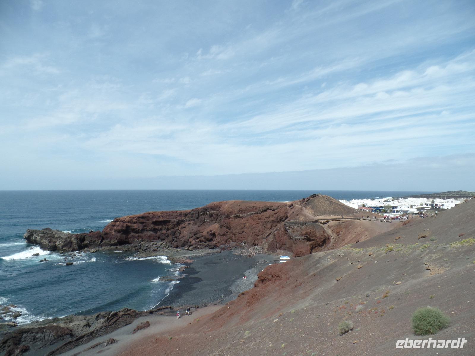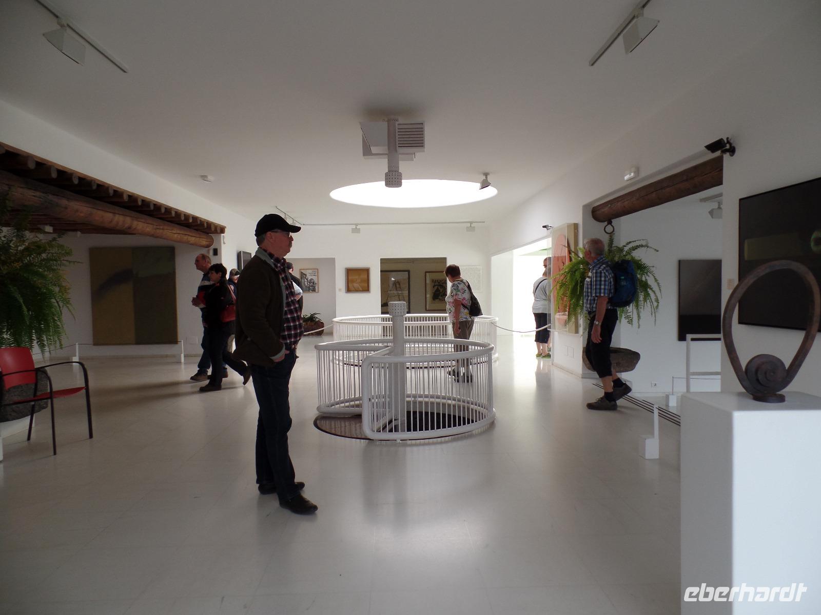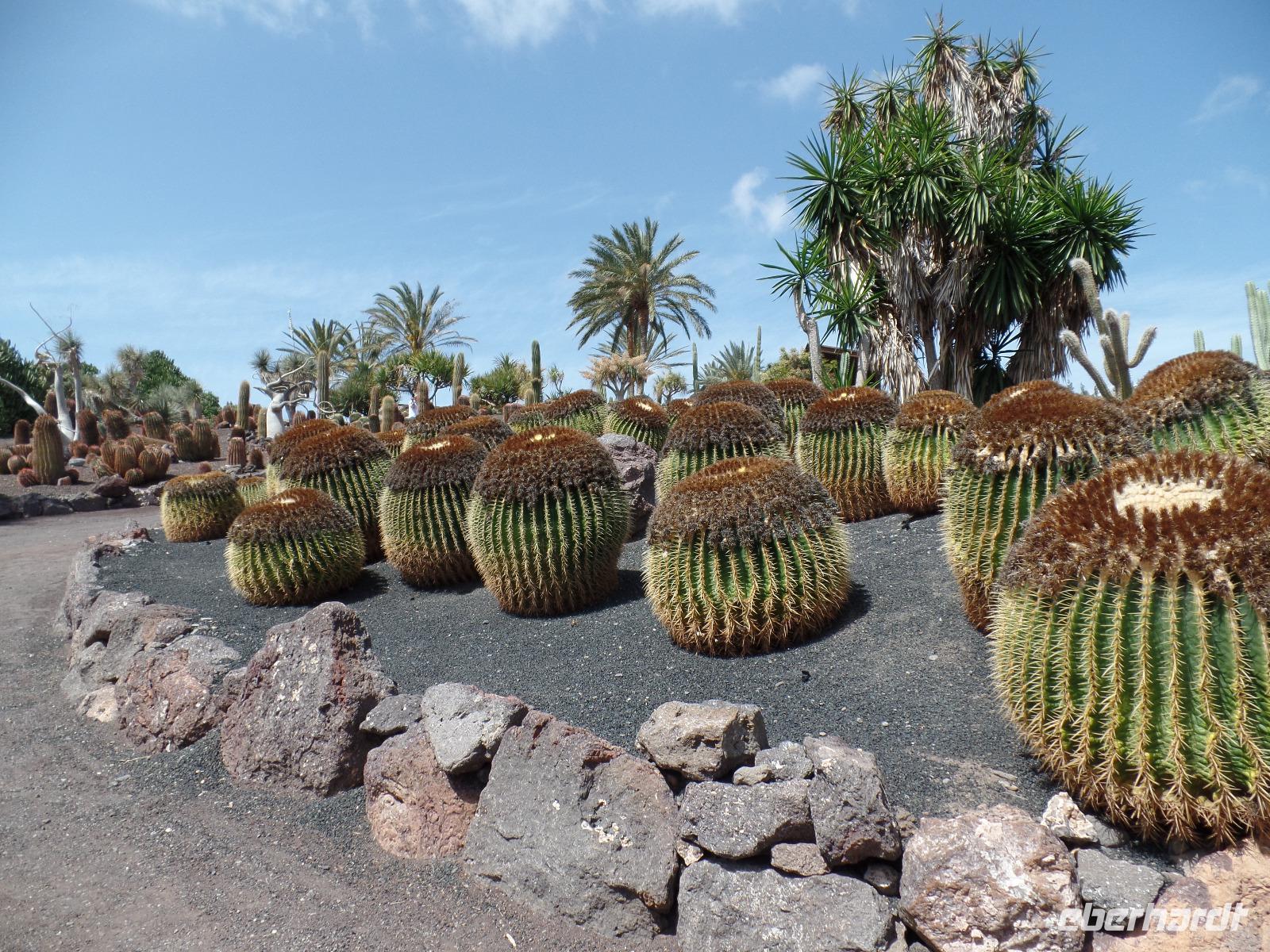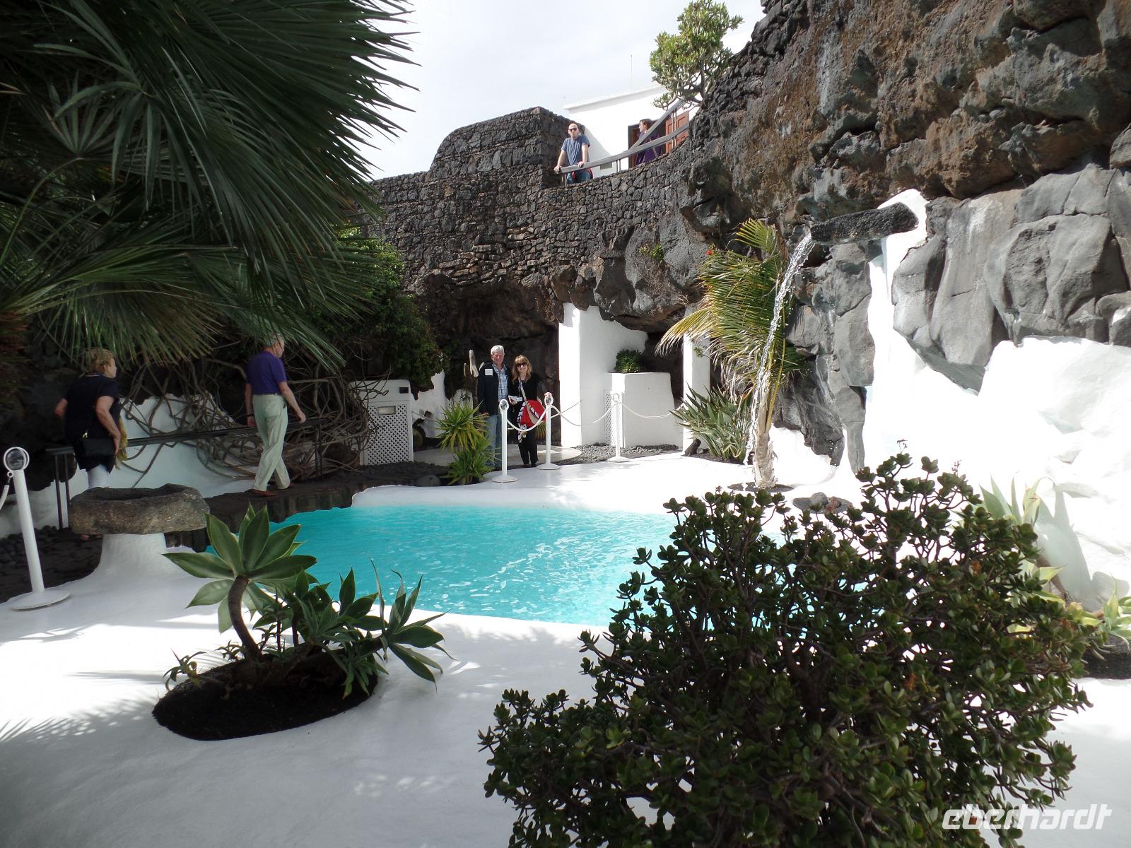 Blauer Himmel und Sonnenschein begrüßten uns am Morgen. Wir starteten den Tag mit einem Geburtstagsständchen und fuhren gut gelaunt in die Inselmitte von Lanzarote. Vorher hielten wir aber noch in La Caleta de Famara am schönen Famara-Strand um unsere Zehen in den kühlen Atlantik zu stecken und ein paar Mucheln zu sammeln. Am Horizont sahen wir das Bergmassiv, einige Surfer probierten bereits ihr Glück denn schließlich war der Strand bei den sporthungrigen Urlaubern sehr beliebt. Unterwegs hielten wir am Mirador De Los Helechos, einem Aussichtspunkt der uns einen imposanten Blick bis zum Meer und in das Tal der 1.000 Palmen bot. Im angrenzenden Restaurant probierten wir den ortsüblichen Guarapo, einen Palmenlikör und noch einige andere spanische Leckereien. Nach dieser kleinen Stärkung hieß uns das Zuhause von Cesar Manrique willkommen. Es war das Wohnhaus des Künstlers, in dem er lebte als er bei einem tragischen Autounfall ums Leben kam. Uns kam es vor, als ob er gerade noch da gewesen war und mit Freunden wie Pablo Picasso Kaffee am hauseigenen Pool getrunken hätte. Nicht nur sein Wohnhaus mit Wohn-, Schlaf- und Badezimmer war den Besuchern zugänglich. Auch das Atelier konnten wir uns mit den noch unfertigen Werken des Künstlers anschauen. Unser Ausflug führte uns weiter in das kleine Städtchen Tequise. Wir hatten ein wenig Freizeit, schlenderten durch die Gassen und stöberten in den Läden nach kleinen Mitbringseln für die Lieben zu Hause. Danach stand ein weitere Höhepunkt des Künstlers Manrique auf dem Programm. Wir besuchten das Bauernmuseum Monumento de la Fecundidad und erfuhren so mehr über die Handwerkstradition und die Lebensart der Bauern auf der Insel. Der Rückweg ins Hotel führte uns durch das berühmte Weinanbaugebiet von Lanzarote. Spontan statteten wir der Bodega La Geria einen Besuch ab, kosteten den schmackhaften Weiswein und schmunzelten über die Namensgleichheit zu unserem Hotel. Unsere Gruppe verabschiedete sich von unserem Reiseleiter Uwe und ein ereignisreicher Tag ging bei unserem Abendessen im Hotel zu Ende.