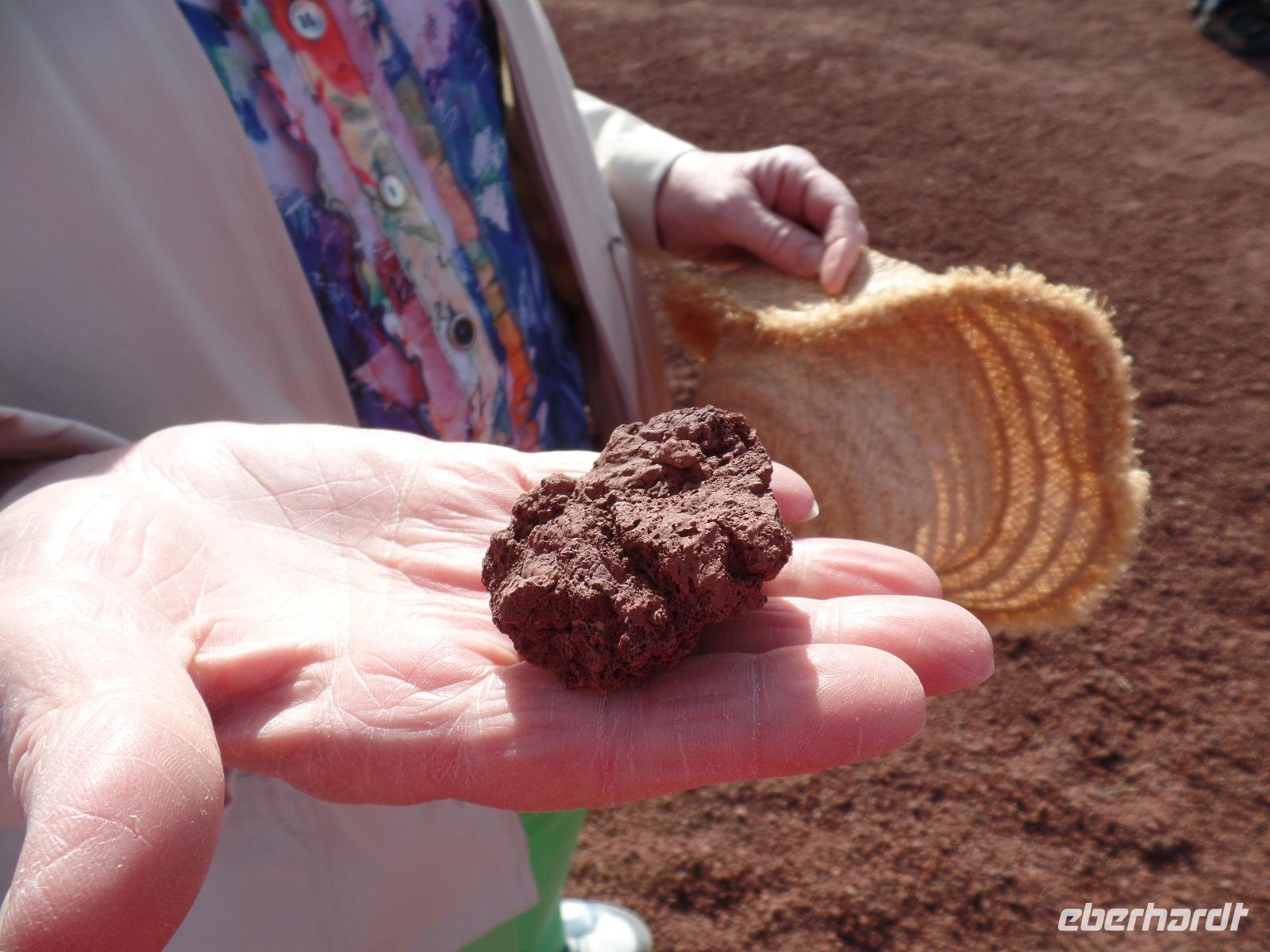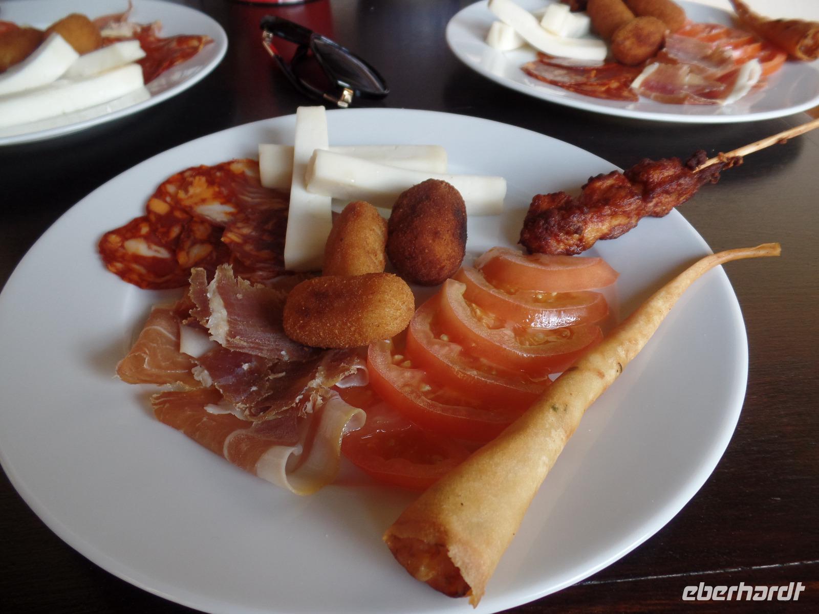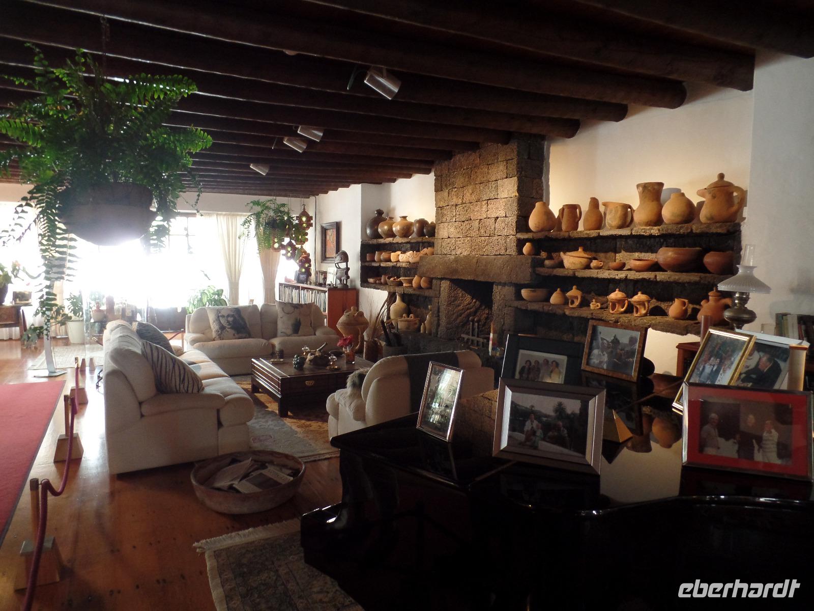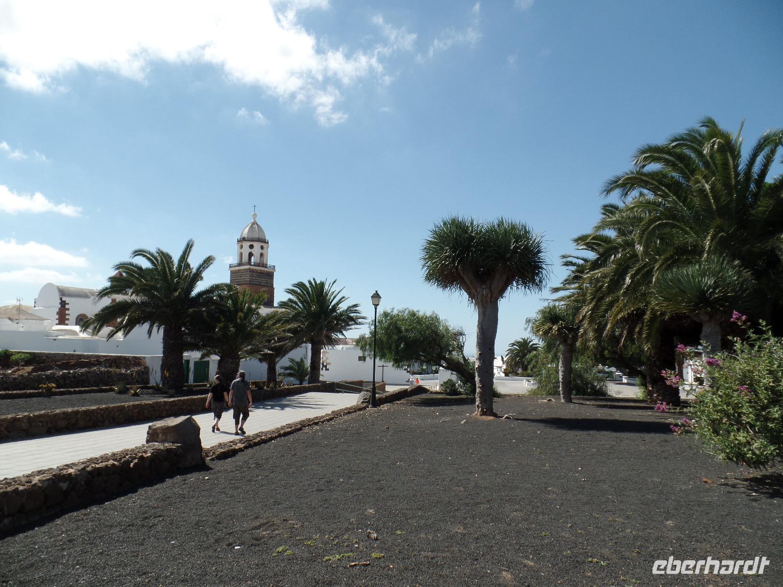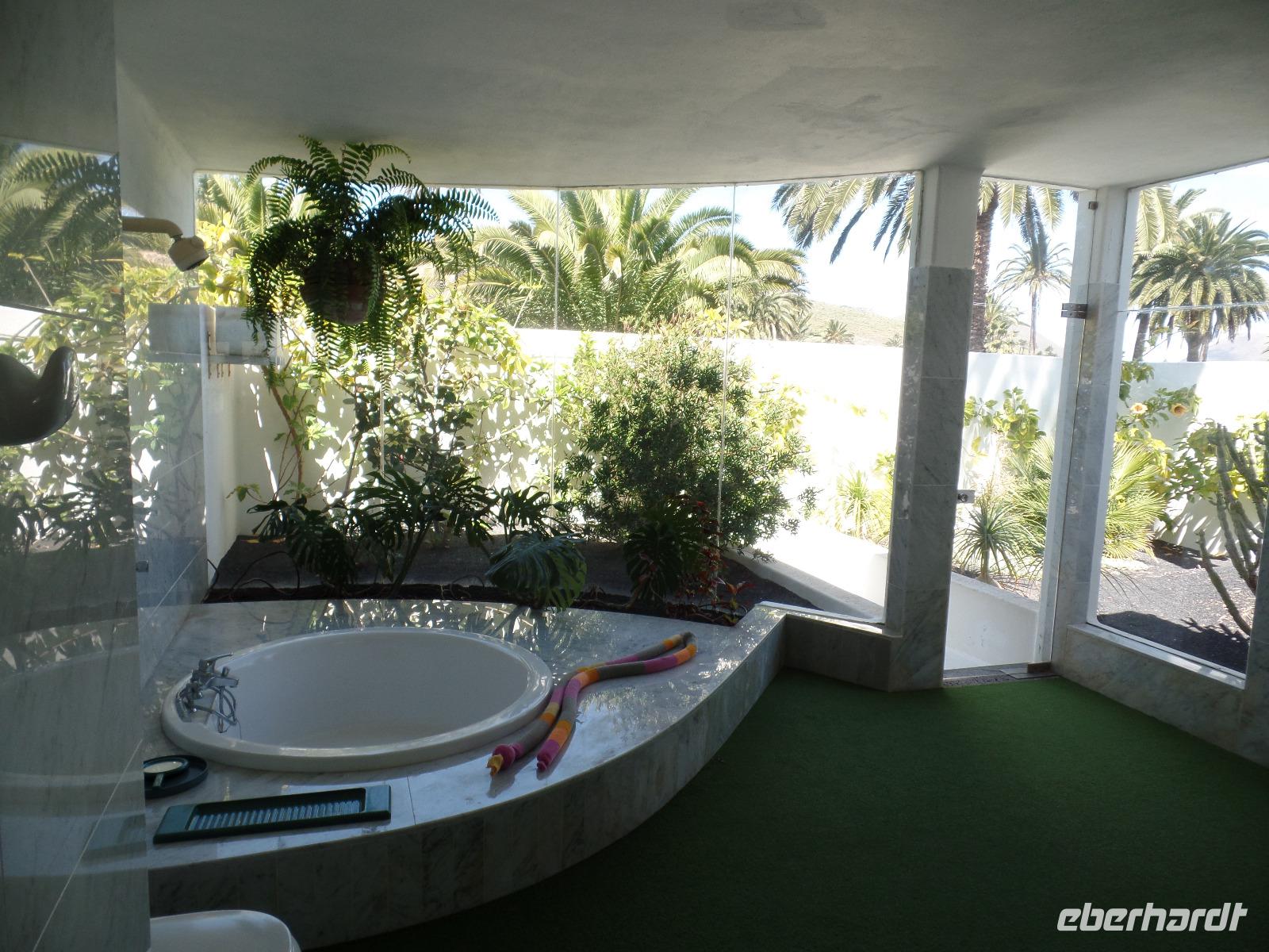 Blauer Himmel und Sonnenschein begrüßten uns am Morgen. Wir starteten den Tag mit einem Geburtstagsständchen und fuhren gut gelaunt in die Inselmitte von Lanzarote. Vorher hielten wir aber noch in La Caleta de Famara am schönen Famara-Strand um unsere Zehen in den kühlen Atlantik zu stecken und ein paar Mucheln zu sammeln. Am Horizont sahen wir das Bergmassiv, einige Surfer probierten bereits ihr Glück denn schließlich war der Strand bei den sporthungrigen Urlaubern sehr beliebt. Unterwegs hielten wir am Mirador De Los Helechos, einem Aussichtspunkt der uns einen imposanten Blick bis zum Meer und in das Tal der 1.000 Palmen bot. Im angrenzenden Restaurant probierten wir den ortsüblichen Guarapo, einen Palmenlikör und noch einige andere spanische Leckereien. Nach dieser kleinen Stärkung hieß uns das Zuhause von Cesar Manrique willkommen. Es war das Wohnhaus des Künstlers, in dem er lebte als er bei einem tragischen Autounfall ums Leben kam. Uns kam es vor, als ob er gerade noch da gewesen war und mit Freunden wie Pablo Picasso Kaffee am hauseigenen Pool getrunken hätte. Nicht nur sein Wohnhaus mit Wohn-, Schlaf- und Badezimmer war den Besuchern zugänglich. Auch das Atelier konnten wir uns mit den noch unfertigen Werken des Künstlers anschauen. Unser Ausflug führte uns weiter in das kleine Städtchen Tequise. Wir hatten ein wenig Freizeit, schlenderten durch die Gassen und stöberten in den Läden nach kleinen Mitbringseln für die Lieben zu Hause. Danach stand ein weitere Höhepunkt des Künstlers Manrique auf dem Programm. Wir besuchten das Bauernmuseum Monumento de la Fecundidad und erfuhren so mehr über die Handwerkstradition und die Lebensart der Bauern auf der Insel. Der Rückweg ins Hotel führte uns durch das berühmte Weinanbaugebiet von Lanzarote. Spontan statteten wir der Bodega La Geria einen Besuch ab, kosteten den schmackhaften Weiswein und schmunzelten über die Namensgleichheit zu unserem Hotel. Unsere Gruppe verabschiedete sich von unserem Reiseleiter Uwe und ein ereignisreicher Tag ging bei unserem Abendessen im Hotel zu Ende.