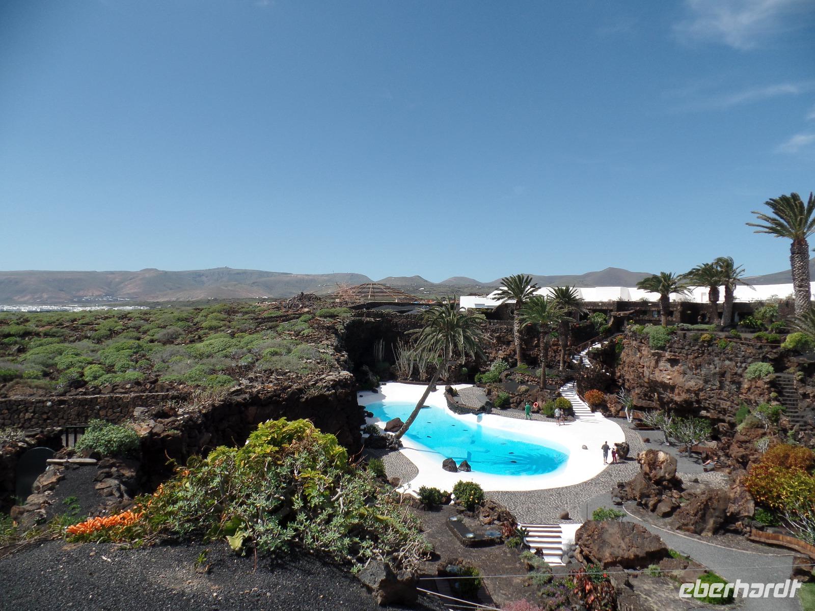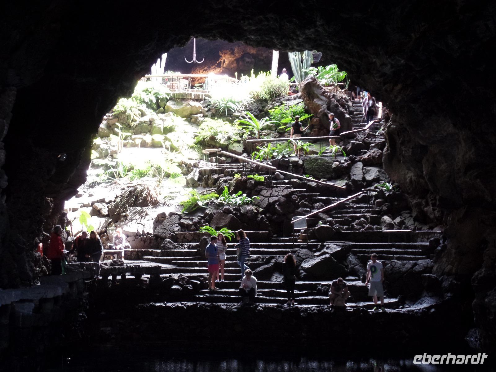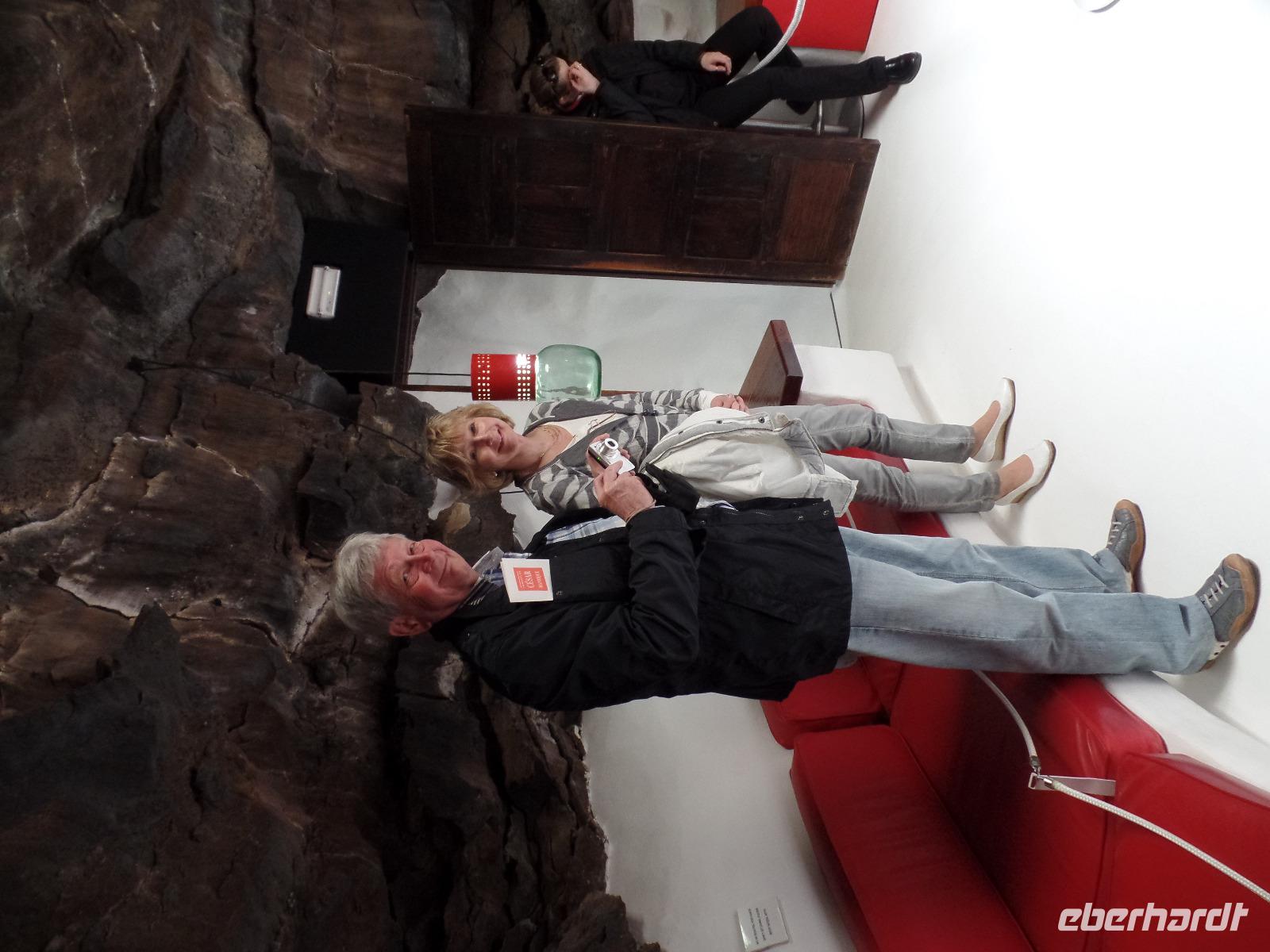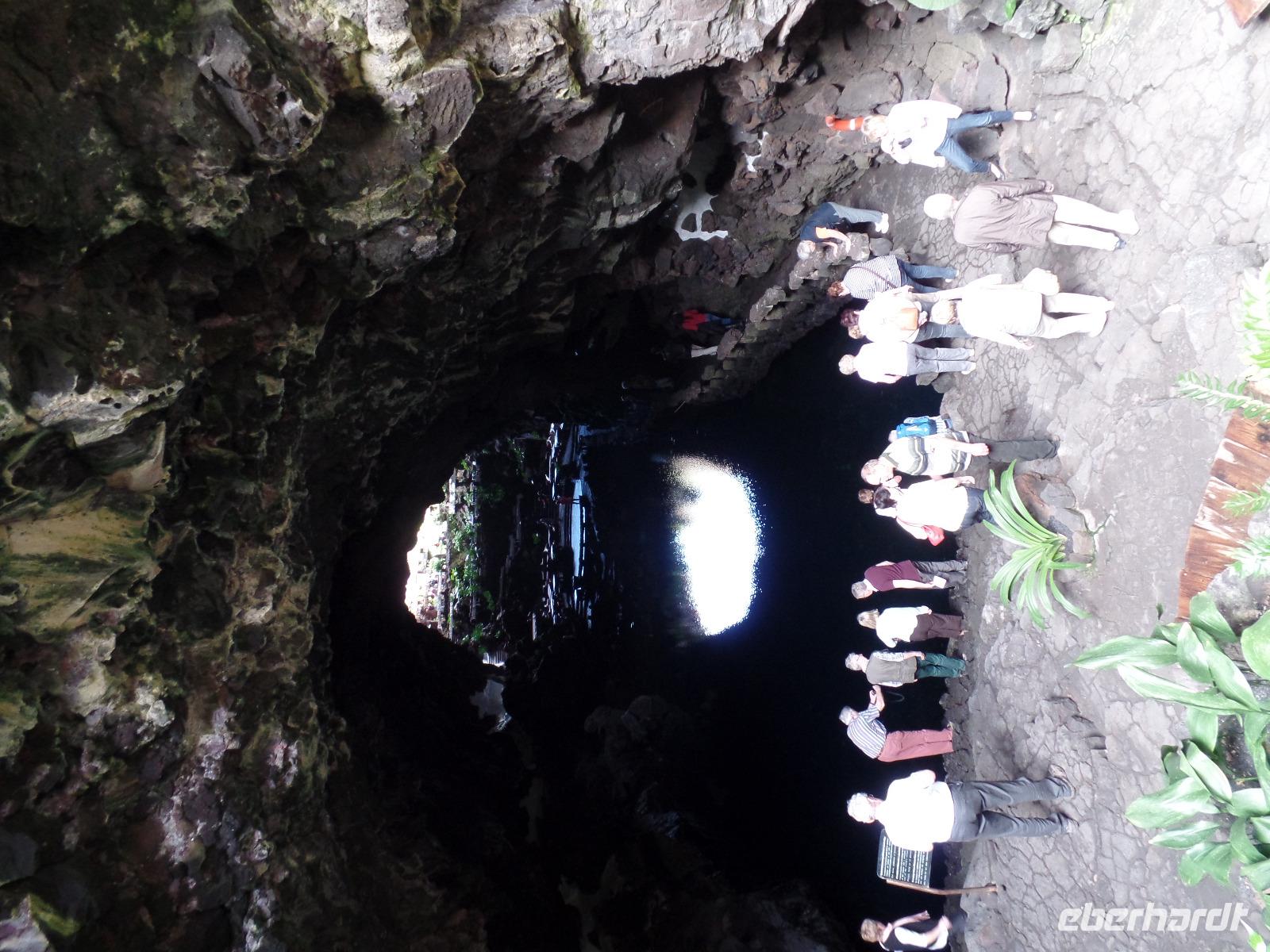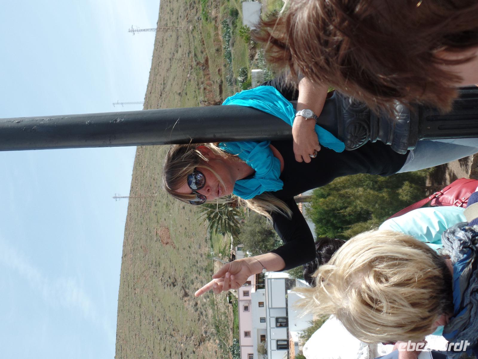 Der heutige Ausflug war fakultativ, so erkundete ein kleiner Teil der Reisegruppe den Urlaubsort Puerto del Carmen und wir anderen fuhren zusammen mit Uwe und unserem Antonio in den Norden von Lanzarote. Vorbei an der Hauptstadt Arrecife war unser erster Stopp bei den Cueva de los Verdes, einer riesigen Lavaröhre, welche während eines Vulkanausbruches des Montana Corona entstand. Die Höhle war nur ein Teil eines Höhlensystems, welche im Gesamten der längste Lavatunnel der Erde ist. Wir stiegen hinab und kamen aus dem Staunen nicht mehr heraus. Uns eröffnete sich eine wundervoll mystisch beleuchtete Höhle, die uns alle sehr klein wirken lies. Die Beleuchtung hatte Jesus Soto, ein Freund von Cesar Manrique, vorgenommen und lies diese wie eine Kathedrale wirken. Nach diesem beeindruckenden Besuch lies der nächste nicht lang auf sich warten. Wir besuchten die Jameos del Agua, eine aufgebrochene Lavablase mit einem See, in dem weltweit einzigartige Albinokrebse lebten, die keine Augen besitzen. Cesar Manrique hat aus dieser Lavablase eine Kunst- und Kulturstätte gebaut, dessen Mittelpunkt ein hübscher Pool mit Palmen bildete. Im Haus der Vulkane wurde die vulkanische Vergangenheit Lanzarotes auf interessante Weise dem Besucher näher gebracht. Das kanarische Wetter verwöhnte uns mit strahlend blauem Himmel und wir fuhren weiter in den Norden in das kleine Hafenstädtchen Orzola, wo wir alle in einer kleinen Taverne zu Mittag aßen. Nach dieser willkommenen Pause weihte uns zuerst Uwe, dann die Besitzerin in die Geheimnisse der heilenden Aloe Vera-Pflanze ein. Wir probierten die geleeartige Frucht, schmierten unsere Haut ein und stöberten im anhängenden Souvenirgeschäft der Plantage. Den krönenden Abschluss des Tages beschehrte uns der Mirador del Rio. Uns bot sich eine fantastische Aussicht auf die Nordküste Lanzarotes mit Blick auf die Insel a Graciosa, welche wir auch noch besuchen wollten. Den Abend verbrachten wir wieder in geselliger Runde bei leckerem spanischen Essen.