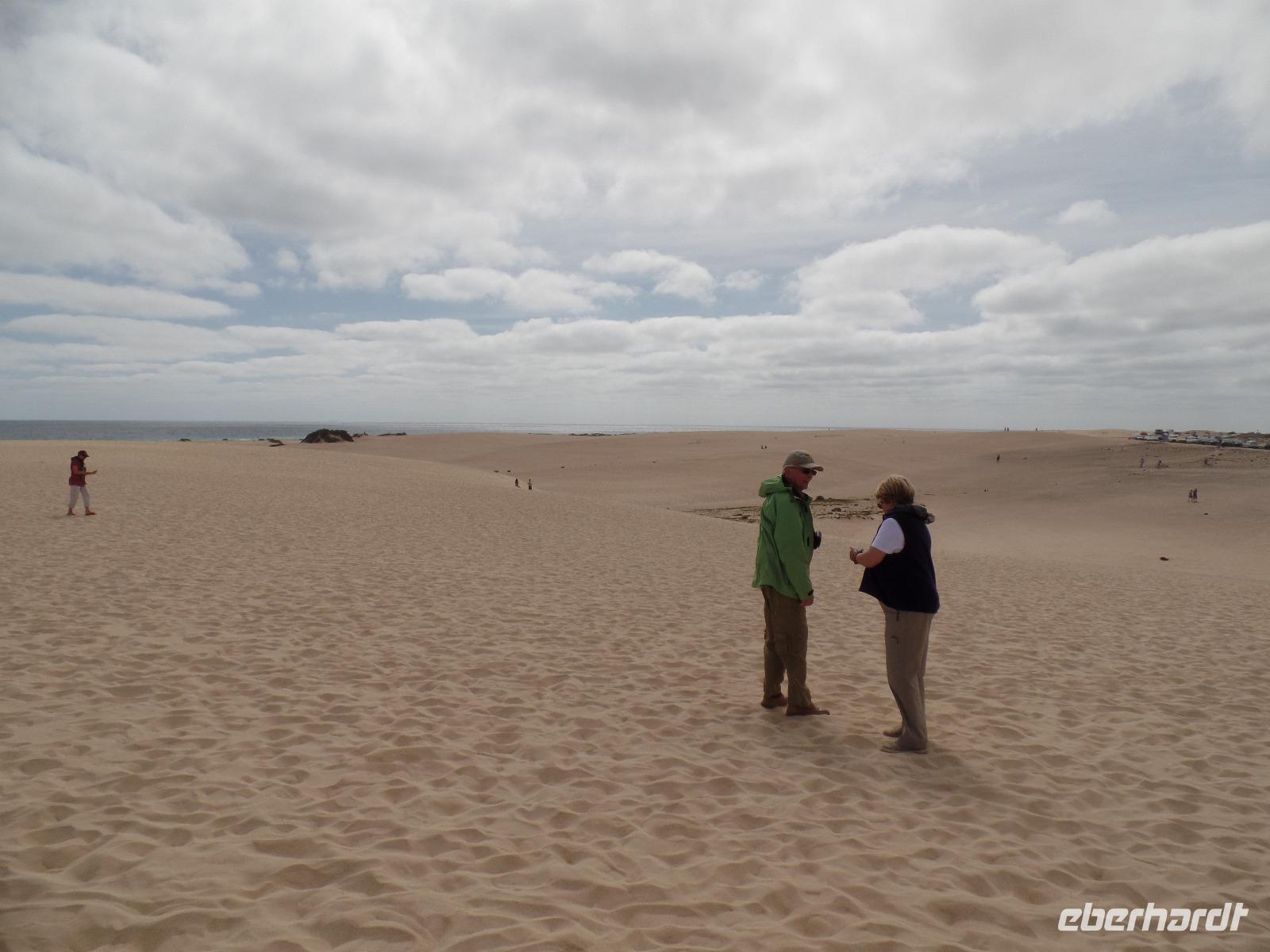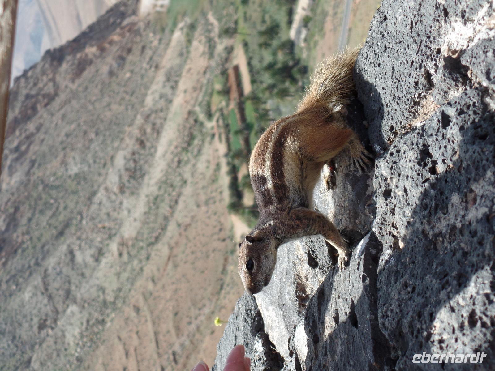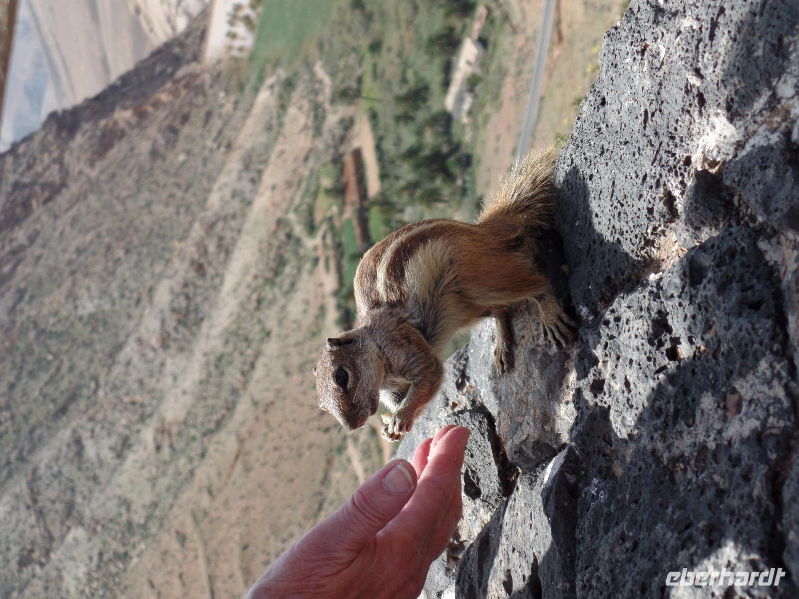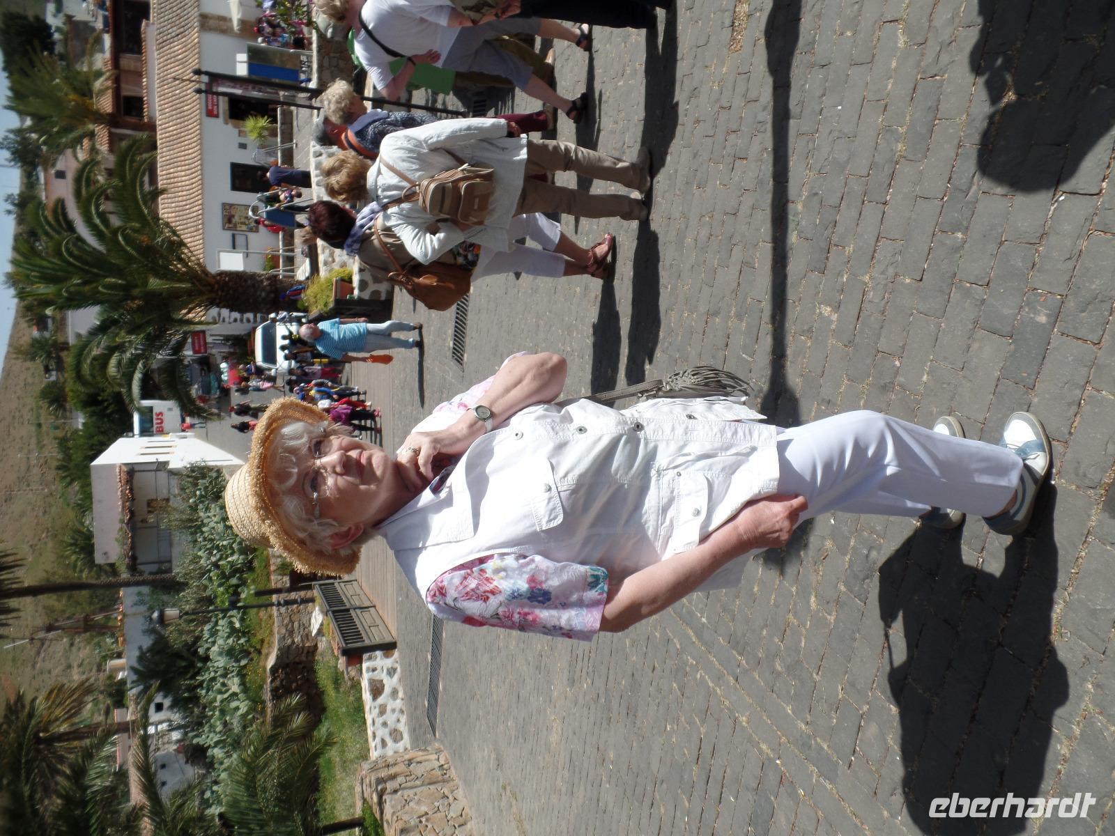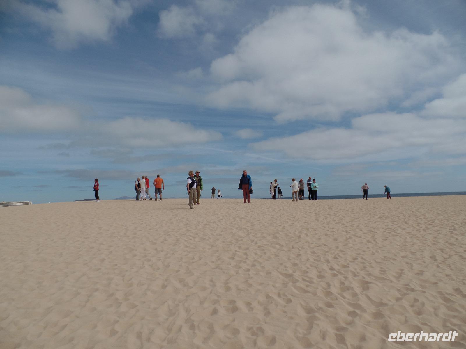 Heute mussten wir uns von der Insel Lanzarote verabschieden. Auf der Fährüberfahrt sah man wie die typisch geweißten Häuser auf schwarzer Lava immer kleiner wurden. Trotz kleinem Wehmut über das Verlassen der vielseitigen Vulkaninsel freuten wir uns auf die zweitgrößte Insel der Kanaren. Am Hafen von Corralejo wurden wir herzlich von unserer Reiseleiterin Tina in Empfang genommen. Sie war gebürtige Deutsche, die sich in die karge Insel verliebte und dort mit ihrer Familie lebt. Ein vielseitiges Programm erwartete uns heute, schließlich fuhren wir quer vom Norden Fuerteventuras bis in den Süden nach Costa Calma. Doch zuerst besuchten wir die Wanderdünen von Corralejo. Feiner weißer Sandstrand bot sich uns und wir nutzen die Gelegenheit für ein Gruppenfoto. Die Erkundungstour führte uns nun weite in das älteste Dörfchen der Kanaren und gleichzeitig ehemailge Hauptstadt von Fuerteventura, nach Betancuria. Hübsch im Tal gelegen mit einer kleinen weißen Kirche auf dem Dorfplatz, umringt von Palmen, kleinen niedlichen Läden sowie Restaurants, konnten wir leicht verstehen, warum diese Kleinod als "schönster Ort Fuerteventuras" galt. Begeistert schlenderten wir durch diese keine Oase. Als wir uns wieder mit Tina trafen zeigte sie uns unter anderem die Besonderheit der kanarischen Blattlaus, aus der man rote Farbe gewann. Ein kleines Stückchen weiter besuchten wir die Wallfahrtskirche Nuestra Senora de la Pena im hübschen Dörfchen Vega de Rio Palmas, die eine geschnitzte Figur der Schutzheiligen der Insel beherbergt. Für den kleinen Hunger probierten wir in der Casa de la Naturaleza kleine Tapas zum Mittag. Gen Westen der Insel fahrend, hielten wir an einem besonderen Aussichtspunkt. Wir sahen einen kleinen See mit einer Kapelle, an der die Figur der Schutzheiligen gefunden wurde, einen Berg, welcher auch liebevoll der Busen der Sophia Loren genannt wurde. Zu unseren Füßen aber sahen wir eine Menge kleiner Streifenhörnchen, die wie wild auf und ab rannten und um unsere Aufmerksamkeit buhlten. Hatte doch vielleicht der Ein oder Andere etwas zu knabbern übrig :-) Entzückt von den possierlichen Tierchen ging unsere Fahrt weiter ins idyllische Küstenstädtchen Ajuy. Der schwarze Sandstrand und das blaue Meer ergaben einen tollen Kontrast. Hier unternahmen wir eine kleine Wanderung entlang der Klippen zu ehemaligen Vulkanhöhlen. Eine kleine Kaffeepause machte uns wieder fit und wir fuhren kurzweilig durch die Elefantenberge in unser Hotel. Der Zimmerbezug gestaltete sich ein wenig kompliziert, schließlich war die Hotelanlage doch etwas größer als vermutet. Nach dem Abendessen trafen wir uns alle nochmal auf der Hotelterrasse und ließen den langen Tag bei einem Licor de Ron Miel ausklingen.