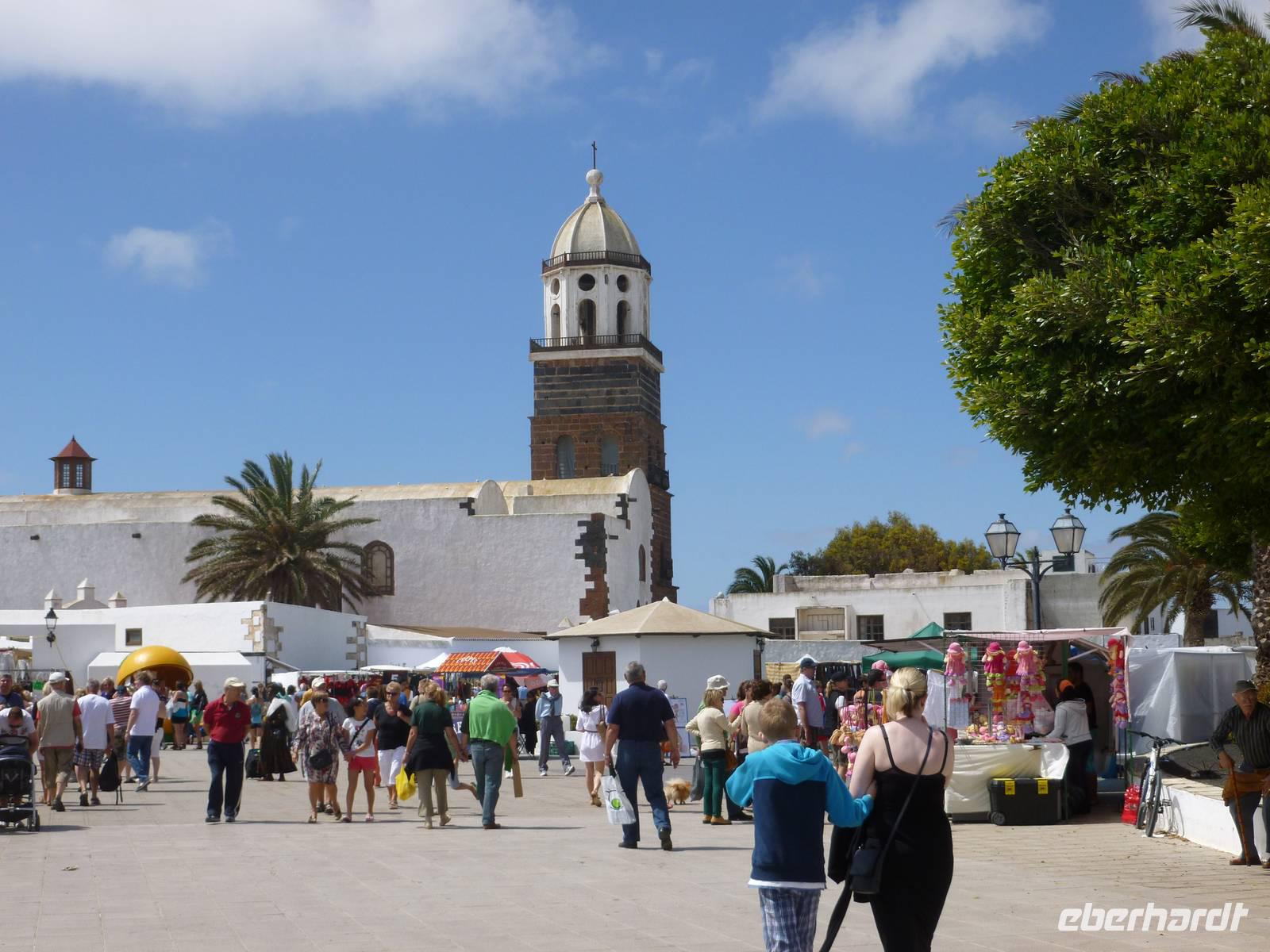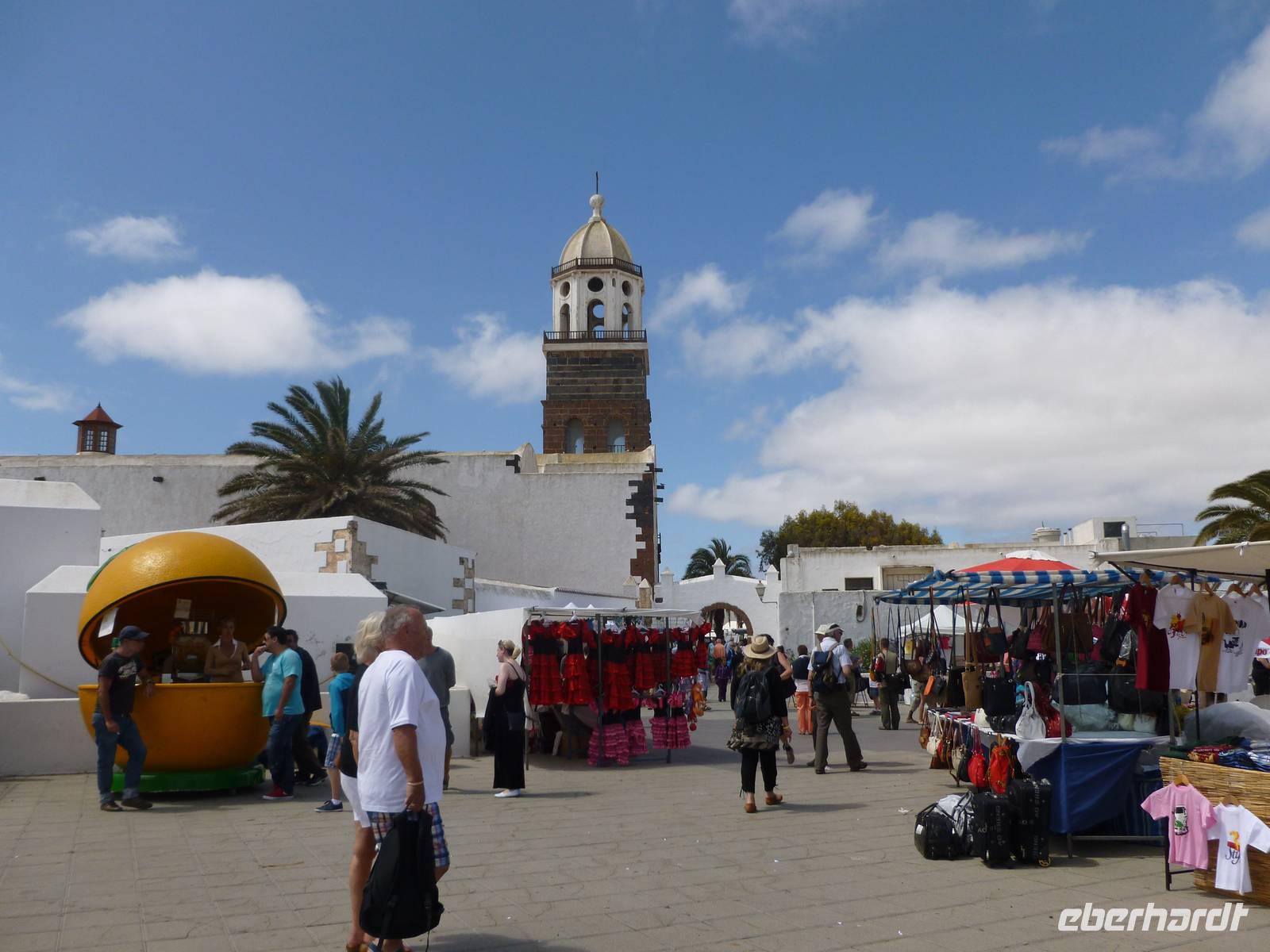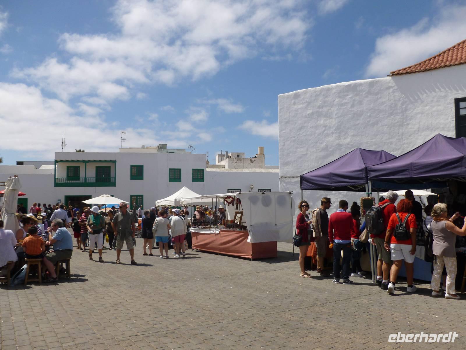 Nachdem alle Gäste den verpassten Schlaf von letzter Nacht nachgeholt und sich beim Frühstück ausreichend gestärkt hatten, sollten wir heute einen wahren Einblick in das außergewöhnliche Leben des Künstlers César Manrique bekommen. Er hat die Insel bis zu seinem tödlichen Autounfall 1992 sehr geprägt, beispielsweise die niedrige Bauweise und die vielen weißen Häuser im Kontrast zur dunklen Vulkanerde konnte er auch nach seinem Tod den Lanzaroteñosans Herz legen. Bevor wir sein ehemaliges Wohnhaus besuchten, machten wir einen kleinen Fotostopp am legendären Bauerndenkmal, das er aus alten Bootsresten zusammenschweißte. Auch ein Gruppenfoto vor diesem beeindruckenden Denkmal durfte nicht fehlen. Schon nach wenigen Fahrminuten erreichten wir schließlich die „Fundacion César Manrique. Raimund, unser erfahrener Reiseleiter ließ uns an seinem Hintergrundwissen über Land und Leute teilhaben und erklärte uns eine Menge wissenswerter Sachen zur Insel Lanzarote. Wir schlenderten durch die hübschen Zimmer, betrachteten seine Kunstwerke und knipsten was das Zeug hielt um alle Eindrücke festzuhalten. Weiter ging es nun zur alten Hauptstadt Teguise, die heute auf Grund des sonntäglichen Markttreibens mit vielen Leuten, Musikern und Künstlern belebt war. Jeder konnte nun auf eigene Faust losziehen und sich in das bunte Treiben mischen. Als Abschluss unseres Kulturprogrammes fuhren wir noch zum Famara-Strand um die Surfer bei Ihrer Lieblingsbeschäftigung zuzusehen und uns ein wenig die Füße zu vertreten. Dann neigte sich unser Ausflug mit Raimund auch schon dem Ende entgegen und wir führen über Nazareth und Arrecife zurück in unser Hotel. Bis zum Abendessen war noch genügend Zeit am Pool zu entspannen oder sich in die Fluten ins Meer zu stürzen. Aber auch die vielen Geschäfte und Bars an der Strandpromendade waren durchaus verlockend...