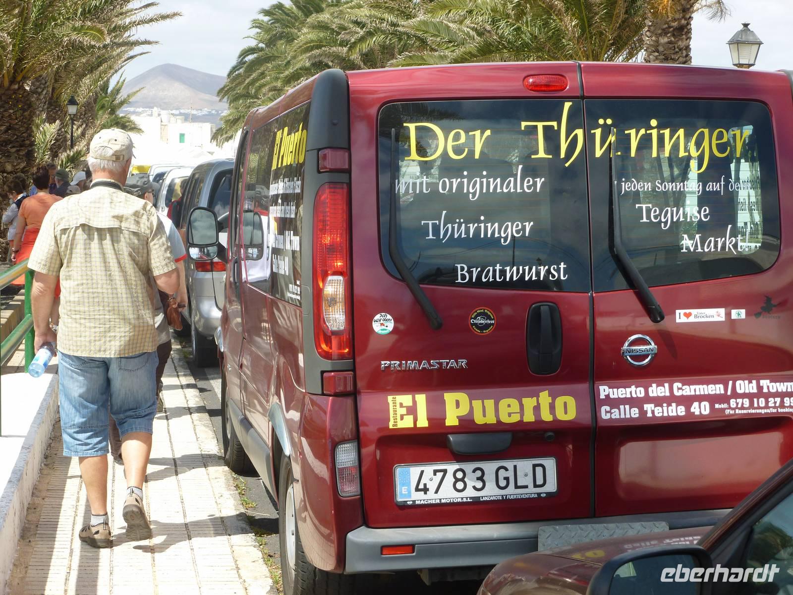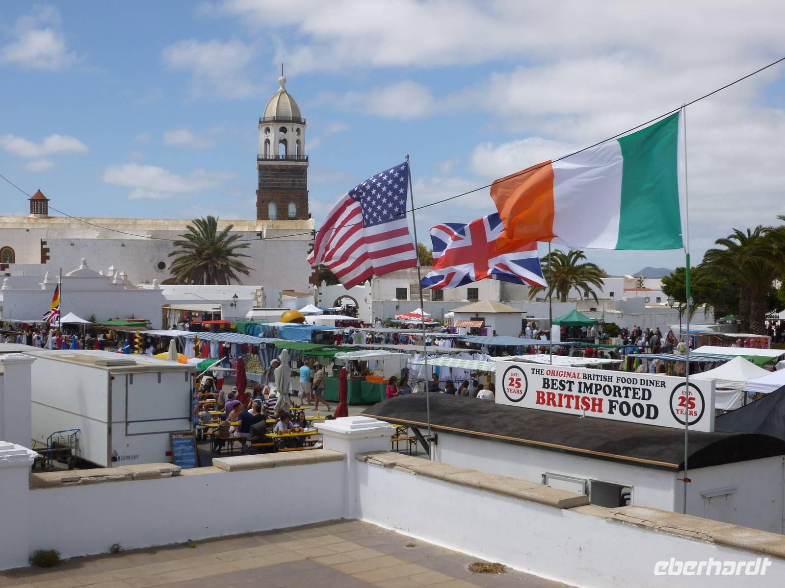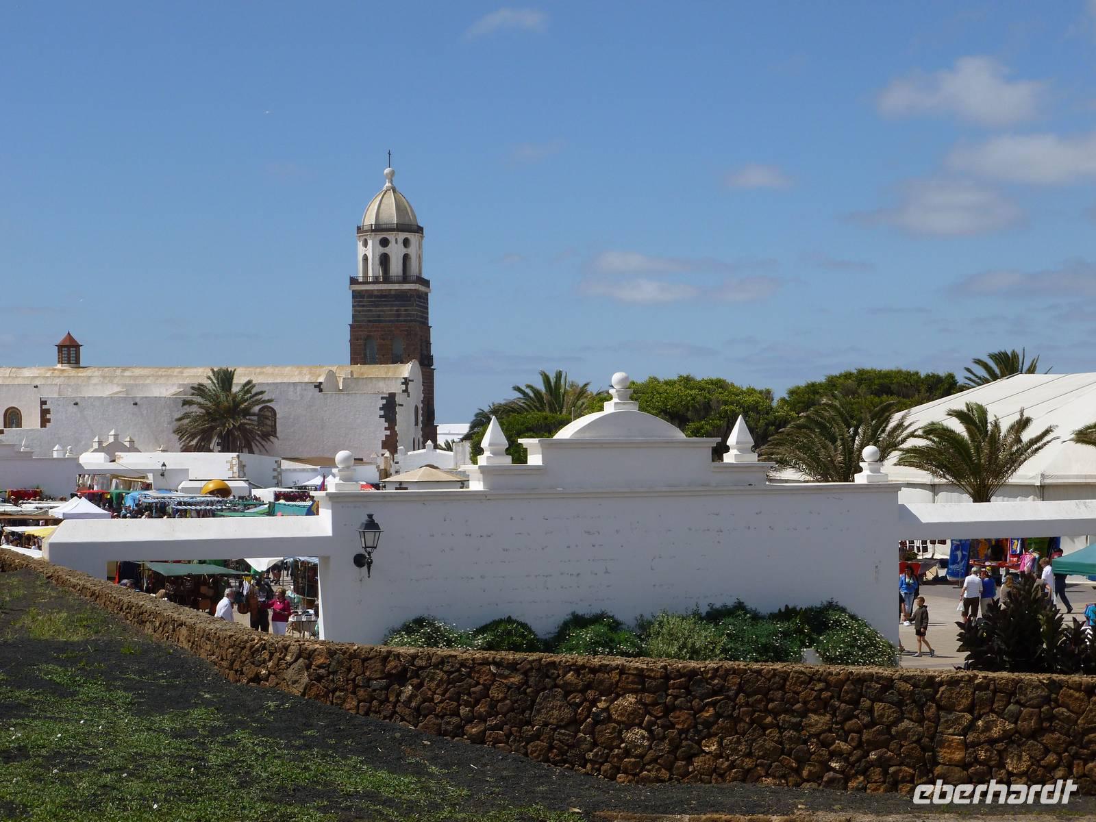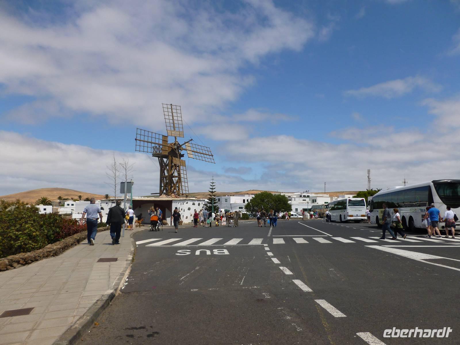 Nachdem alle Gäste den verpassten Schlaf von letzter Nacht nachgeholt und sich beim Frühstück ausreichend gestärkt hatten, sollten wir heute einen wahren Einblick in das außergewöhnliche Leben des Künstlers César Manrique bekommen. Er hat die Insel bis zu seinem tödlichen Autounfall 1992 sehr geprägt, beispielsweise die niedrige Bauweise und die vielen weißen Häuser im Kontrast zur dunklen Vulkanerde konnte er auch nach seinem Tod den Lanzaroteñosans Herz legen. Bevor wir sein ehemaliges Wohnhaus besuchten, machten wir einen kleinen Fotostopp am legendären Bauerndenkmal, das er aus alten Bootsresten zusammenschweißte. Auch ein Gruppenfoto vor diesem beeindruckenden Denkmal durfte nicht fehlen. Schon nach wenigen Fahrminuten erreichten wir schließlich die „Fundacion César Manrique. Raimund, unser erfahrener Reiseleiter ließ uns an seinem Hintergrundwissen über Land und Leute teilhaben und erklärte uns eine Menge wissenswerter Sachen zur Insel Lanzarote. Wir schlenderten durch die hübschen Zimmer, betrachteten seine Kunstwerke und knipsten was das Zeug hielt um alle Eindrücke festzuhalten. Weiter ging es nun zur alten Hauptstadt Teguise, die heute auf Grund des sonntäglichen Markttreibens mit vielen Leuten, Musikern und Künstlern belebt war. Jeder konnte nun auf eigene Faust losziehen und sich in das bunte Treiben mischen. Als Abschluss unseres Kulturprogrammes fuhren wir noch zum Famara-Strand um die Surfer bei Ihrer Lieblingsbeschäftigung zuzusehen und uns ein wenig die Füße zu vertreten. Dann neigte sich unser Ausflug mit Raimund auch schon dem Ende entgegen und wir führen über Nazareth und Arrecife zurück in unser Hotel. Bis zum Abendessen war noch genügend Zeit am Pool zu entspannen oder sich in die Fluten ins Meer zu stürzen. Aber auch die vielen Geschäfte und Bars an der Strandpromendade waren durchaus verlockend...