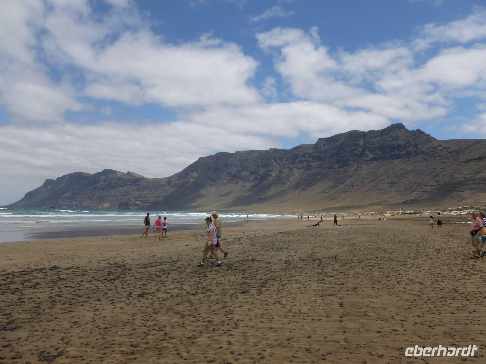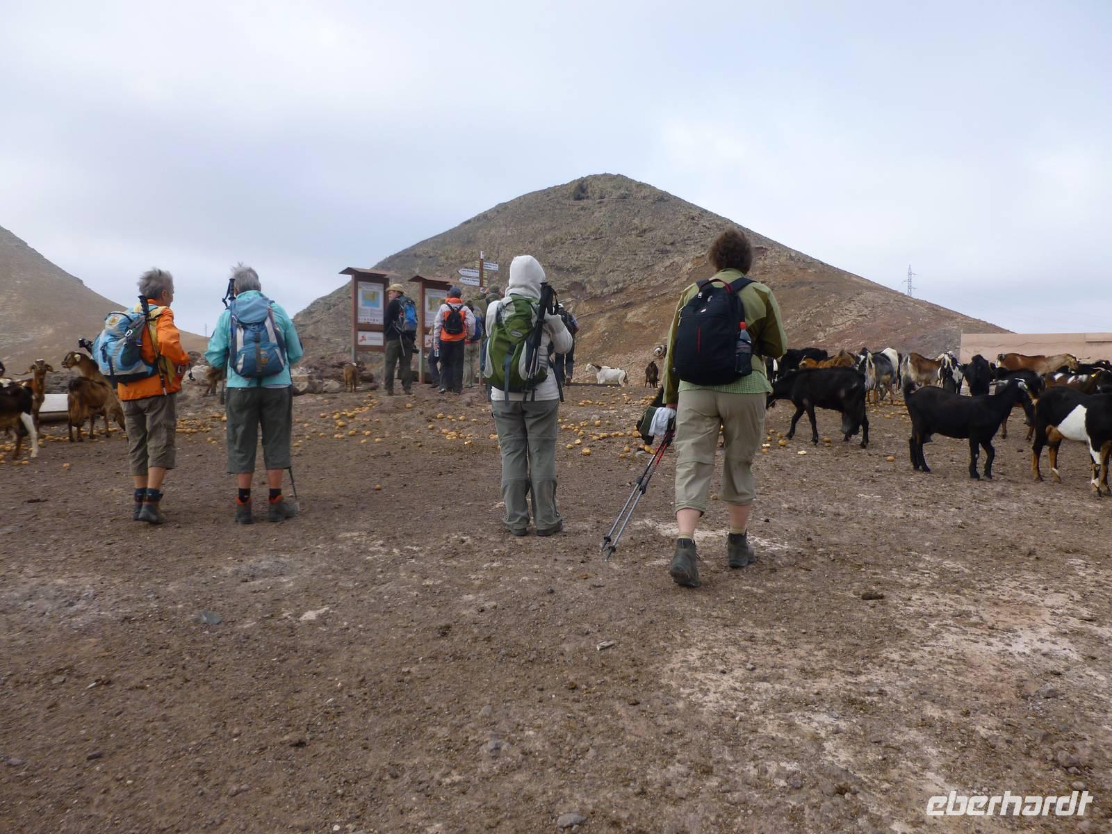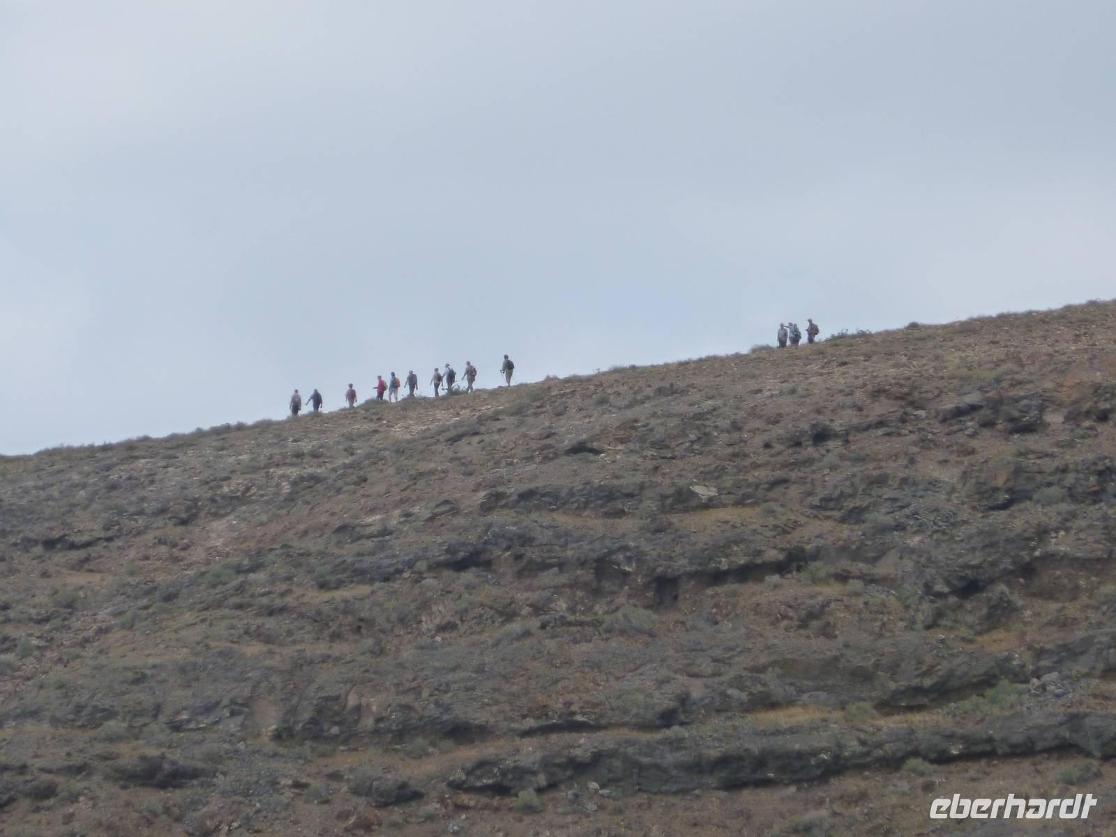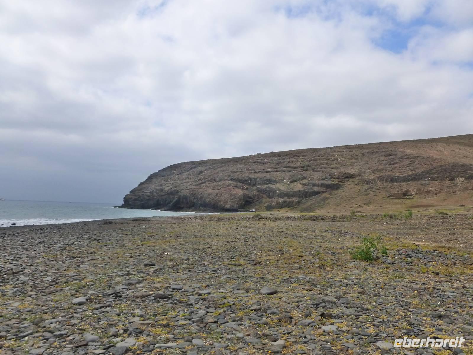 Pünktlich um neun Uhr holte uns Roland und unser Busfahrer Washington zur zweiten Wanderung ab. Das Wetter war etwas bedeckt, aber für die heutige Wanderung ideal. Wir fuhren diesmal in Richtung Westen und starteten in Femes. Nachdem wir uns mit den dort ansässigen Ziegen und Böcken bekannt gemacht hatten, starteten wir erst einmal steil bergab. Da der Weg sehr steinig beschaffen war, musste man hier ganz besonders aufpassen. Aber alle meisterten auch diesen etwas anspruchsvolleren Weg sehr gut. Der Weg führte durch das Tal dann relativ eben weiter und wir konnten doch trotz der kargen Landschaft immer mal ein paar kleine Pflänzchen erspähen. Nun ging es entlang eines trockenen Flussbettes zum Playa de Pozo. Dort machten die ersten bereits ihre Rast - aber der Großteil der Gruppe wanderte noch über den Berg in die andere beschauliche Bucht, um dort eine kleine grüne, liebevoll angerichtete Oase und eine kleine Sammlung angeschwemmter Fundstücke zu begutachten. Als wir wieder alle beisammen waren, traten wir nun die letzte Etappe in Richtung Playa Quemada an. Das Ziel vor Augen ging es nun auch recht flott in unser Endziel. Zur Belohnung kehrten wir nun schon fast traditionell in ein Café ein, um auch diesen erfolgreich verlaufenen Wandertag ausklingen zu lassen.