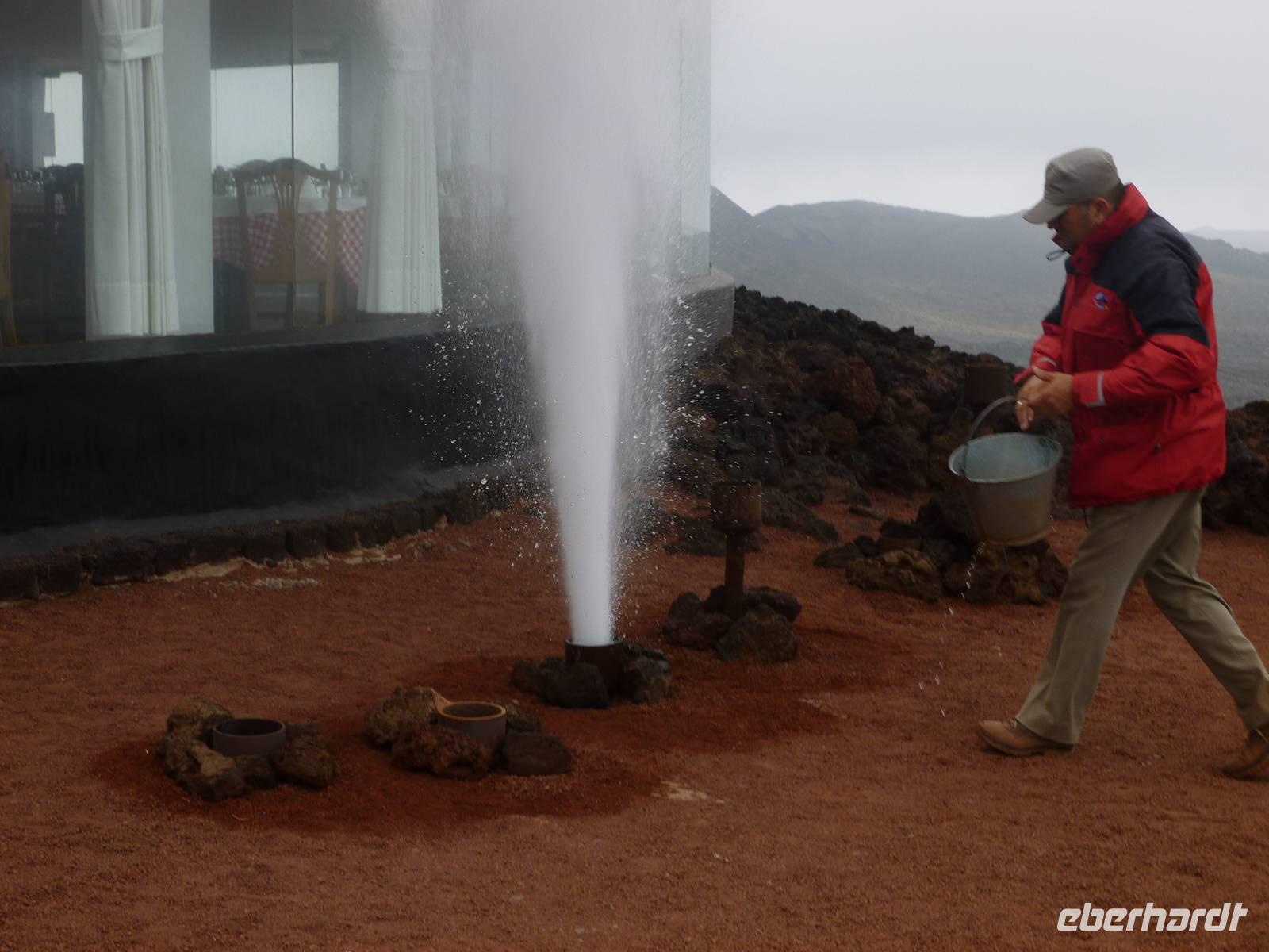 Heute konnten wir Wanderschuh und Stöcke im Hotel lassen und uns per Bus, diesmal von José, durch den Süden von Lanzarote chauffieren zu lassen. Als erstes fuhren wir an Yaiza vorbei und konnten die „Salinas de Janubio" betrachten - die unter Denkmalschutz stehende Salzgewinnungsanlage, die dank des spanischen Staates und der EU wieder in Betrieb genommen wurde. Anschließend fuhren wir zu einem beeindruckenden Naturschauspiel, der Küste von „Los Hervideros". Der Name bedeutet die „Brodelnden" und wir staunten immer wieder als die meterhohen Wogen des Atlantiks in die schwarzen Vulkangrotten schlugen. Noch tief beeindruckt war es nicht mehr weit bis zum beschaulichen Fischerdorf „El Golfo" und seinem bekannten grünen Kratersee, der nur durch einen schmalen, schwarzen Sand- und Kiesstrand vom Meer getrennt ist. Höhepunkt des Tages war der Besuch des Besucherzentrums und des Nationalparks Timanfaya. Erst lernten wir bei 3 Schauvorführungen welche Kräfte in der Vulkanerde wirken, um beispielsweise auch leckere Hühnchenschenkel auf dem offenen Grill zu brutzeln oder ohne Weiteres Heu anzuzünden. Dann erlebten wir eine sehr interessante Kratertour, um die Entstehung dieser bizarren Landschaft der Vulkanausbrüche ab 1730 nachvollziehen zu können. Später waren wir im Besucherzentrum hautnah bei einem demonstrierten Vulkanausbruch dabei. Bevor es zurück ins Hotel ging, machten wir noch einen kurzen Fotostopp bei der Hübschen, kleinen Wallfahrtskirche in Mancha Blanca und im Landwirtschaftsmuseum „El Patio". Bevor wir die Museumsräume und somit das frühere Leben der Lanzaroteñosbesuchten, verkosteten wir den leckeren Hauswein, hausgemachten Ziegenkäse und die Mehlspeiße Gofio. Nun konnte jeder individuell durch die verschiedenen Räume schlendern. Zurück in Puerto del Carmen, machten einige noch einen kleinen Bummel durch die sogenannte Altstadt.