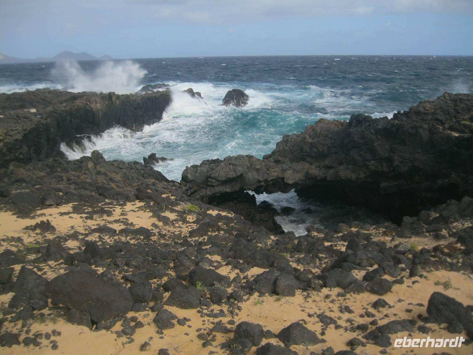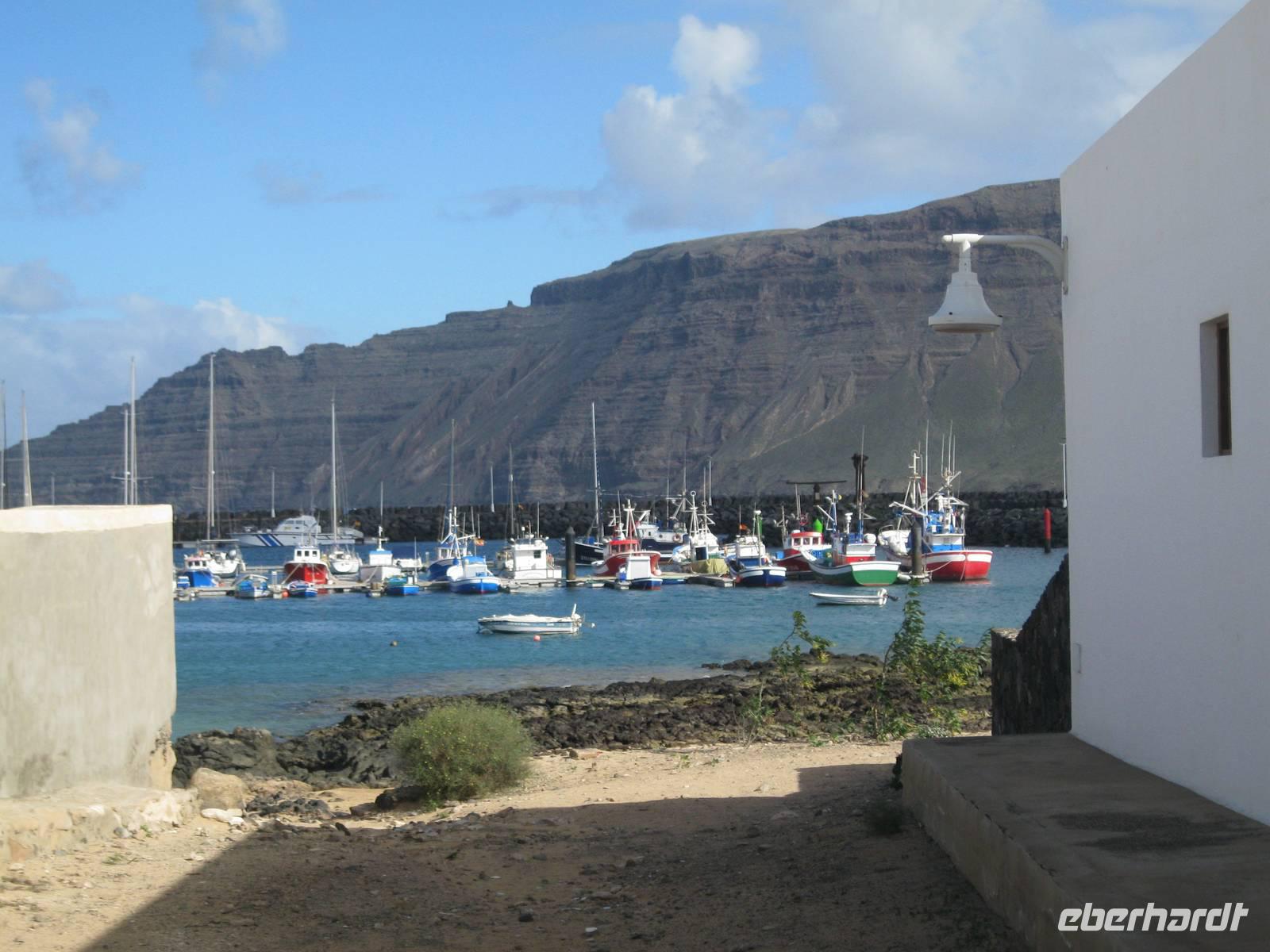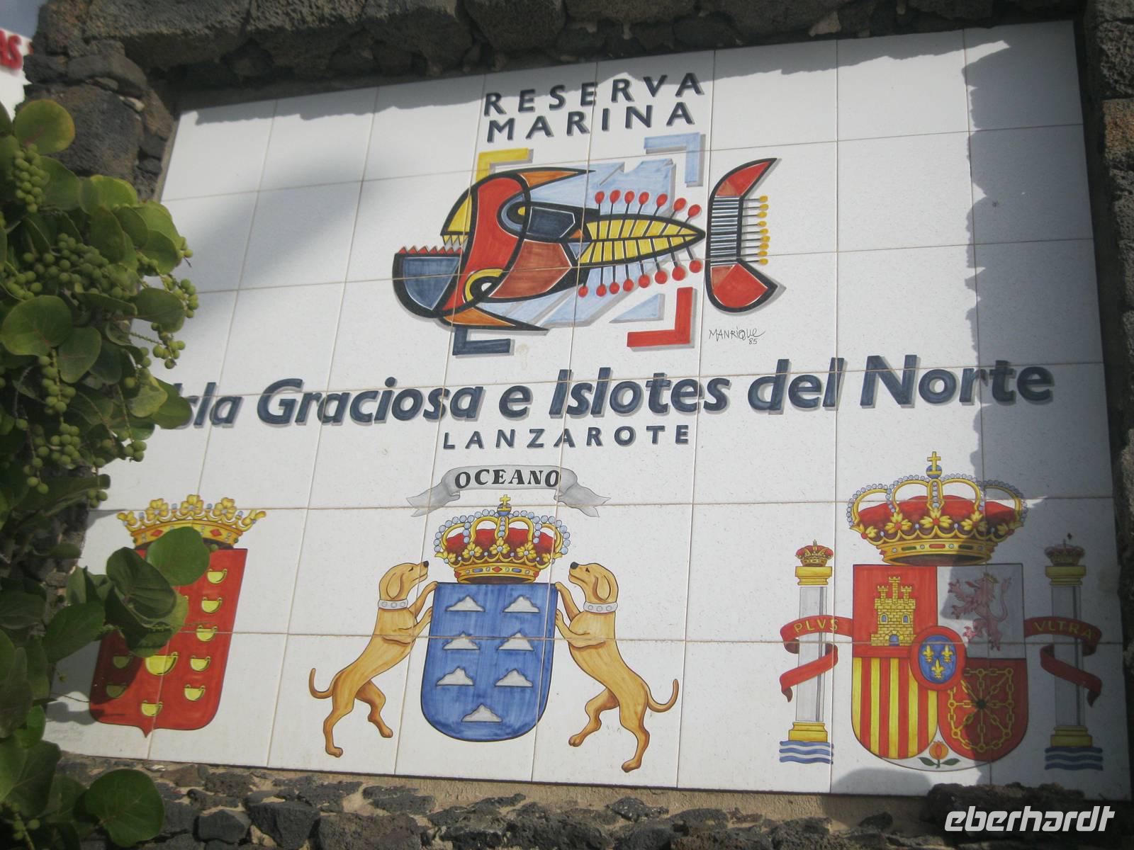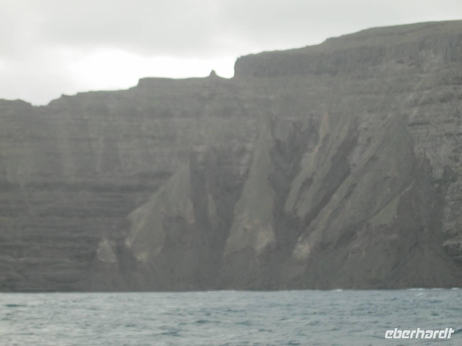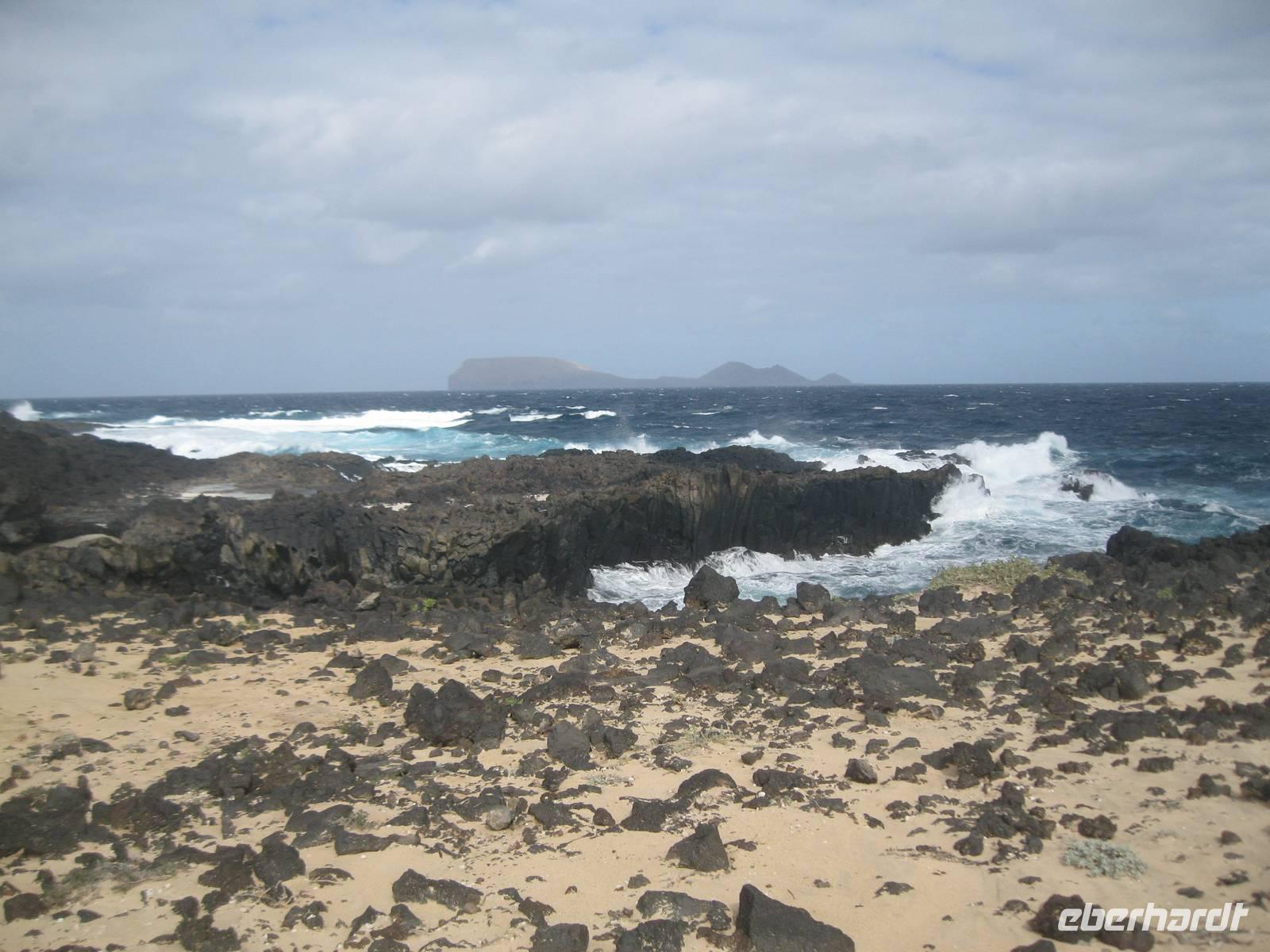 Der heutige Tag begann etwas früher.Wir wollten pünktlich am Fährhafen von Orzola sein und unser Schiff nach Isla Graciosa "entern".Der Atlantik war sehr stürmisch und wir redeten unseren Mägen gut zu.Eigentlich waren wir ja gut behütet.Mit uns im Boot saßen einige Nonnen die, während der Überfahrt, pausenlos den Rosenkranz beteten.Im El Rio wurde die See auch wieder ruhiger u. wir konnten die Einfahrt in den Hafen genießen.Da es zu regnen anfing ,begaben wir uns sofort auf Jeepsafari.Am Fuße des Montana Pedro Barba ging es entlang zum, eigentlich nur noch aus Ferienhäusern bestehenden, Ort Petro Barba.Weiter ging es zur Steilküste die durch die starke Brandung geformt wurde.Unterhalb des Montana Bermeja breiten sich unendlich lange Stände aus und verlocken zum baden.Aber Vorsicht !die Playa de las Conchas ist kreuzgefährlich u.große Warntafeln weisen darauf hin.Wir suchten uns eine ruhige Bucht, mit schönem Sandstrand, zum baden aus-Bahia del Salado.Leider war das Wasser weit draußen und unsere Füße verstanden nun ,daß die Insel aus dem Vulkangestein des Meeres entstanden war.Zurück in der "Inselhauptstadt"versorgten wir uns den Schlüssel zur Fischerkirche Virgen del Mar.Sie ist mit typischen Fischerutensilien, wir Steuerrad als Kanzel ,Schiffsrumpf als Altar,Fischen als Kerzenständer oder Muscheln als Stühle,ausgestattet.Auf der Insel solles die besten Fichrestaurants geben u.dies wollten wir nun probieren.Direkt am Hafen,im Casa Chano,war eine Tafel für uns vorbereite u. wir ließen uns die Köstlichkeiten des Meeres schmecken.Leider wurde es immer kälter u.wir mußten ja auch unsere abenteuerliche Fährüberfahrt nach Lanzarote antreten.Alles in allem ein wirklich gelungener Tag.