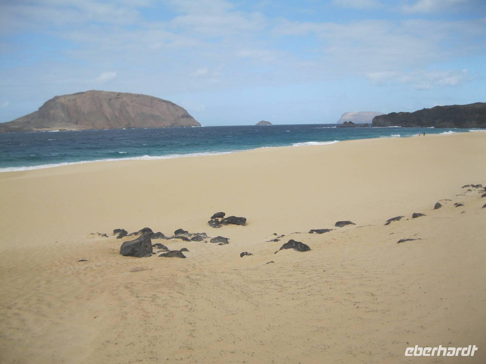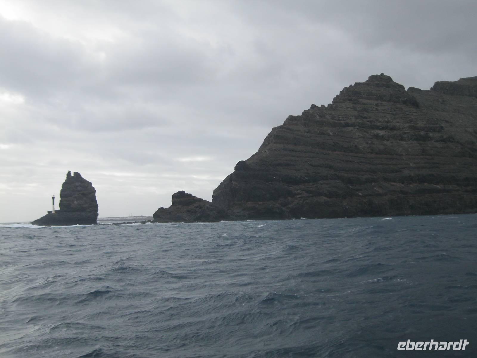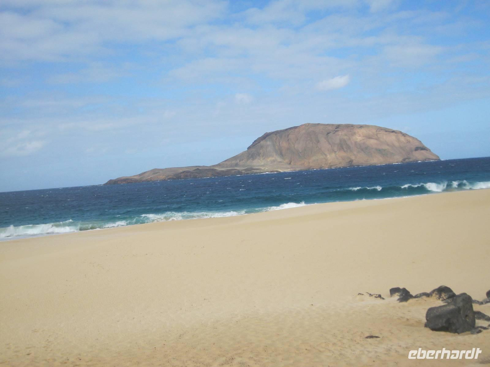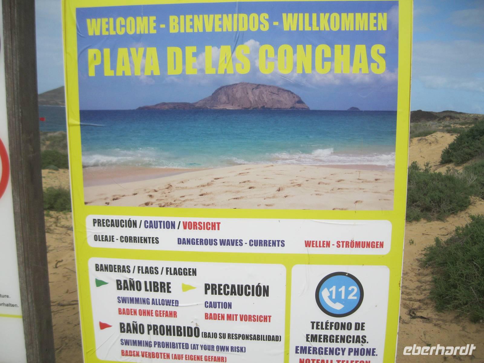 Der heutige Tag begann etwas früher.Wir wollten pünktlich am Fährhafen von Orzola sein und unser Schiff nach Isla Graciosa "entern".Der Atlantik war sehr stürmisch und wir redeten unseren Mägen gut zu.Eigentlich waren wir ja gut behütet.Mit uns im Boot saßen einige Nonnen die, während der Überfahrt, pausenlos den Rosenkranz beteten.Im El Rio wurde die See auch wieder ruhiger u. wir konnten die Einfahrt in den Hafen genießen.Da es zu regnen anfing ,begaben wir uns sofort auf Jeepsafari.Am Fuße des Montana Pedro Barba ging es entlang zum, eigentlich nur noch aus Ferienhäusern bestehenden, Ort Petro Barba.Weiter ging es zur Steilküste die durch die starke Brandung geformt wurde.Unterhalb des Montana Bermeja breiten sich unendlich lange Stände aus und verlocken zum baden.Aber Vorsicht !die Playa de las Conchas ist kreuzgefährlich u.große Warntafeln weisen darauf hin.Wir suchten uns eine ruhige Bucht, mit schönem Sandstrand, zum baden aus-Bahia del Salado.Leider war das Wasser weit draußen und unsere Füße verstanden nun ,daß die Insel aus dem Vulkangestein des Meeres entstanden war.Zurück in der "Inselhauptstadt"versorgten wir uns den Schlüssel zur Fischerkirche Virgen del Mar.Sie ist mit typischen Fischerutensilien, wir Steuerrad als Kanzel ,Schiffsrumpf als Altar,Fischen als Kerzenständer oder Muscheln als Stühle,ausgestattet.Auf der Insel solles die besten Fichrestaurants geben u.dies wollten wir nun probieren.Direkt am Hafen,im Casa Chano,war eine Tafel für uns vorbereite u. wir ließen uns die Köstlichkeiten des Meeres schmecken.Leider wurde es immer kälter u.wir mußten ja auch unsere abenteuerliche Fährüberfahrt nach Lanzarote antreten.Alles in allem ein wirklich gelungener Tag.