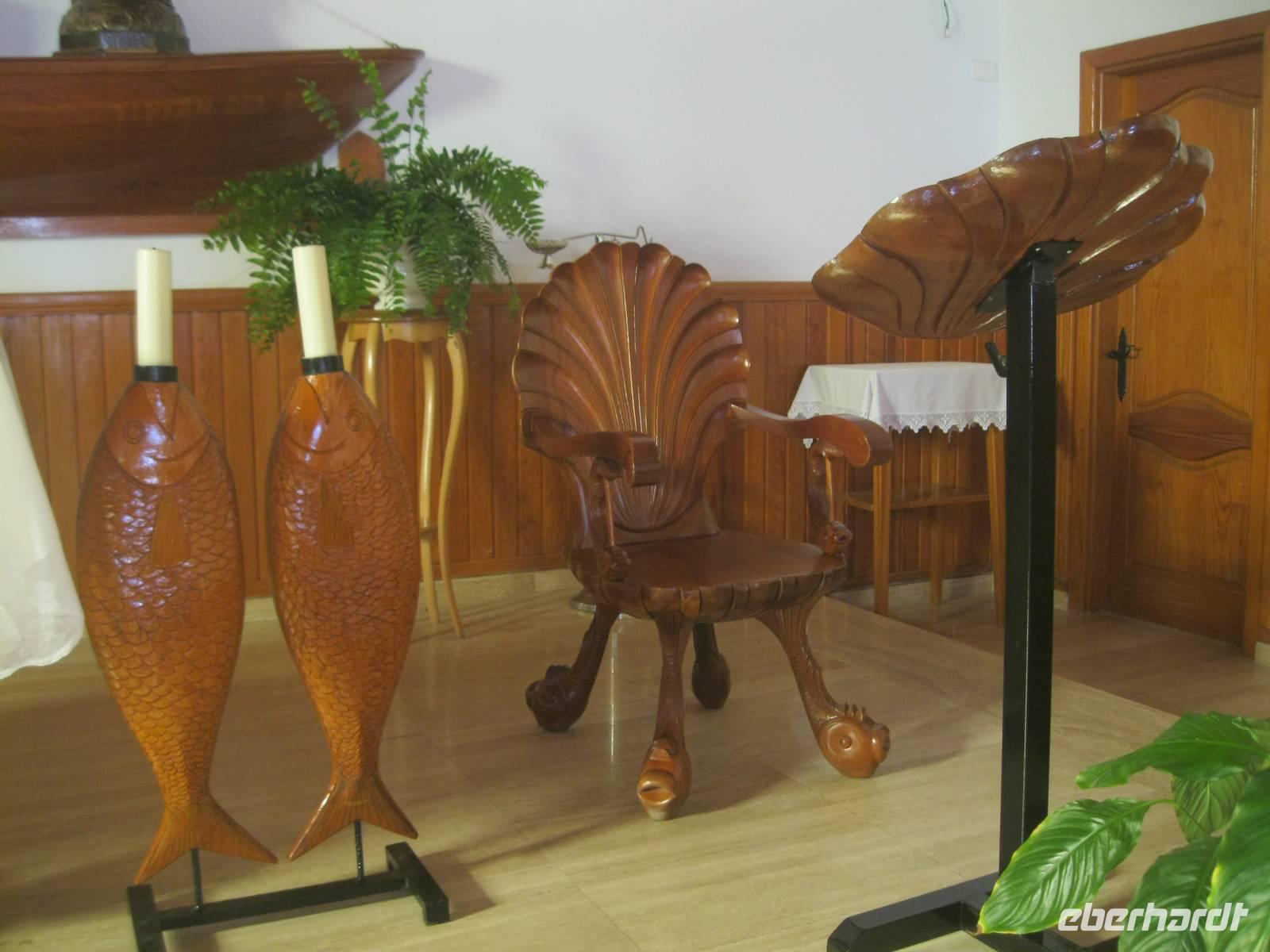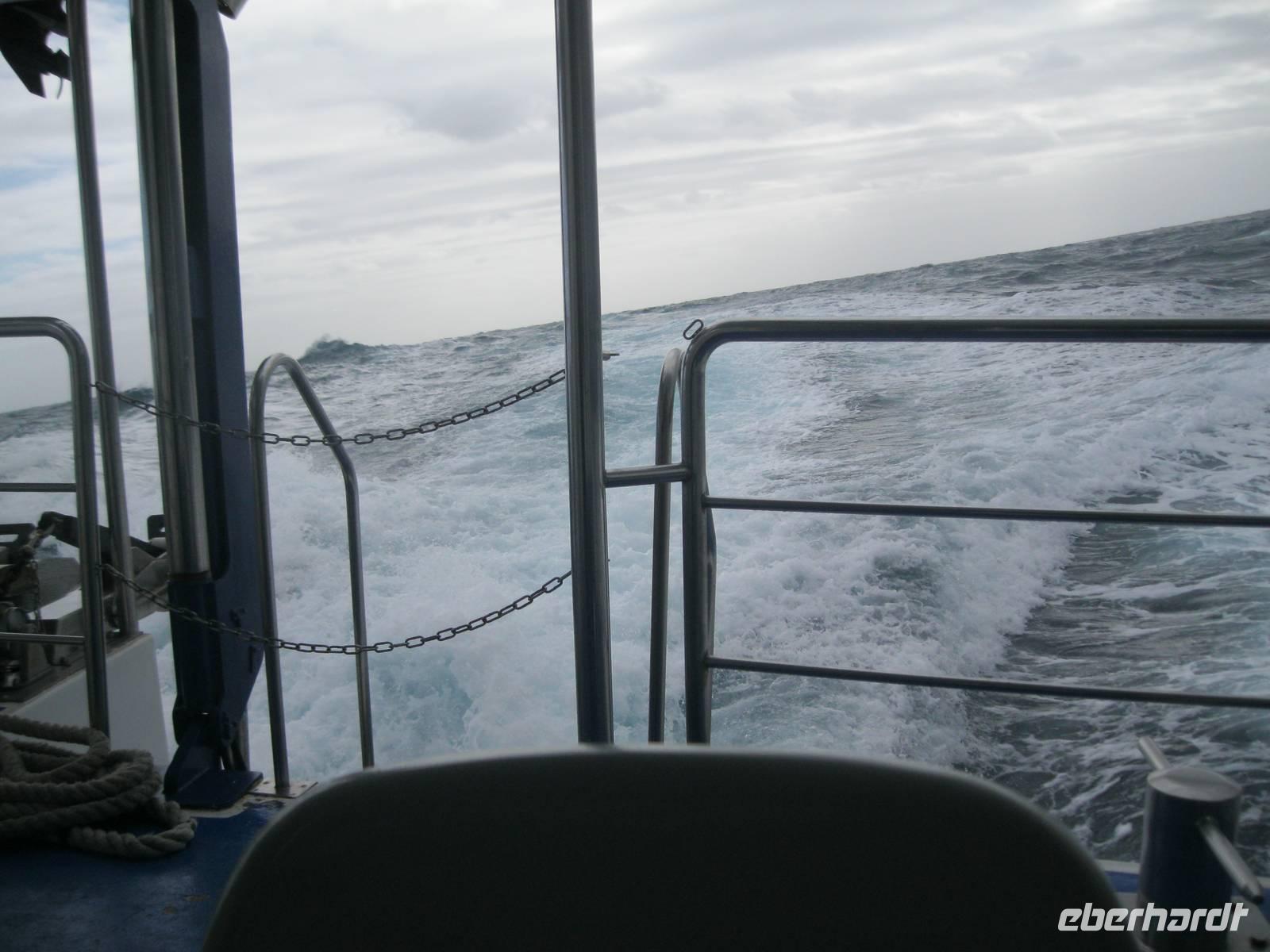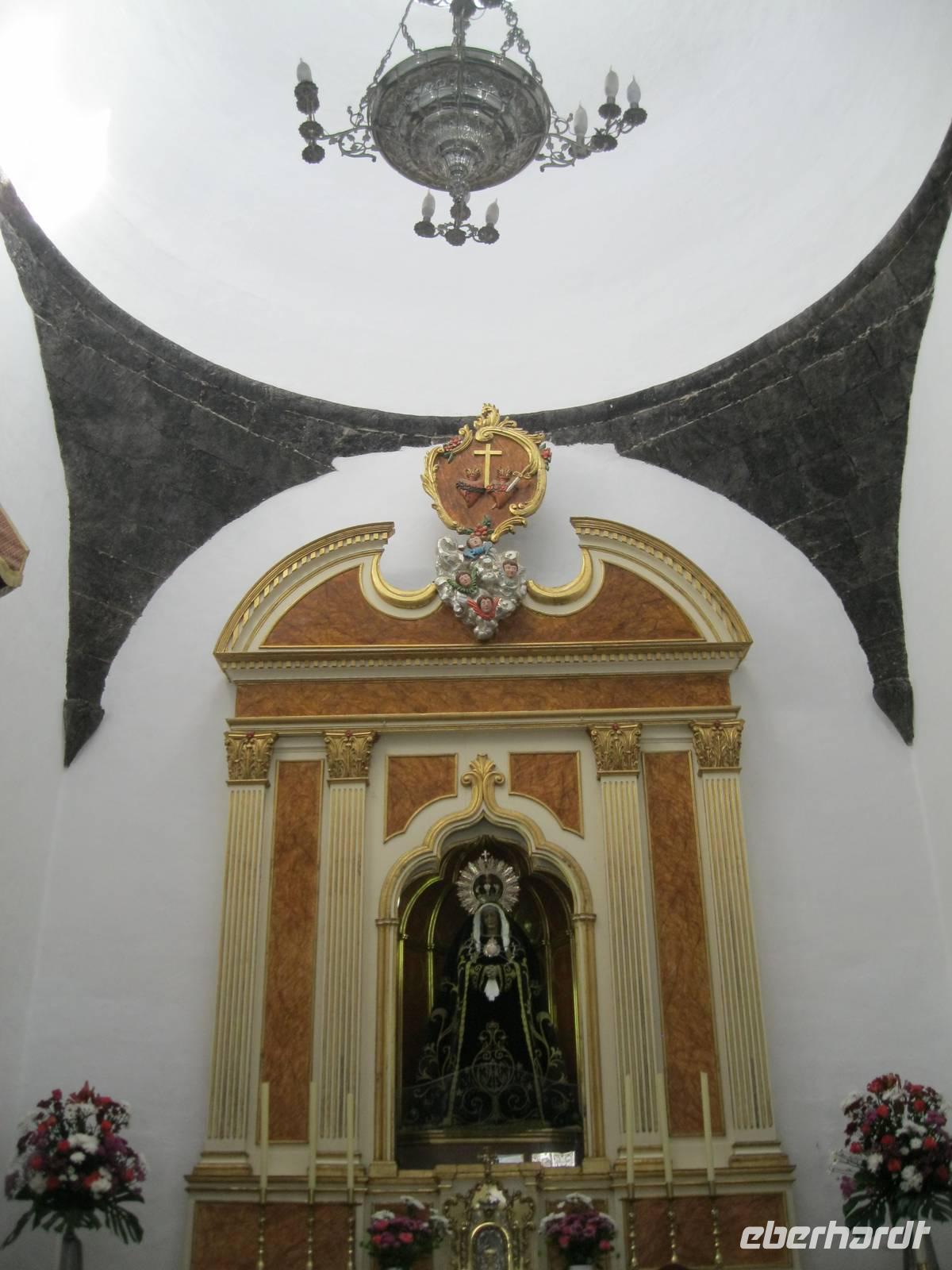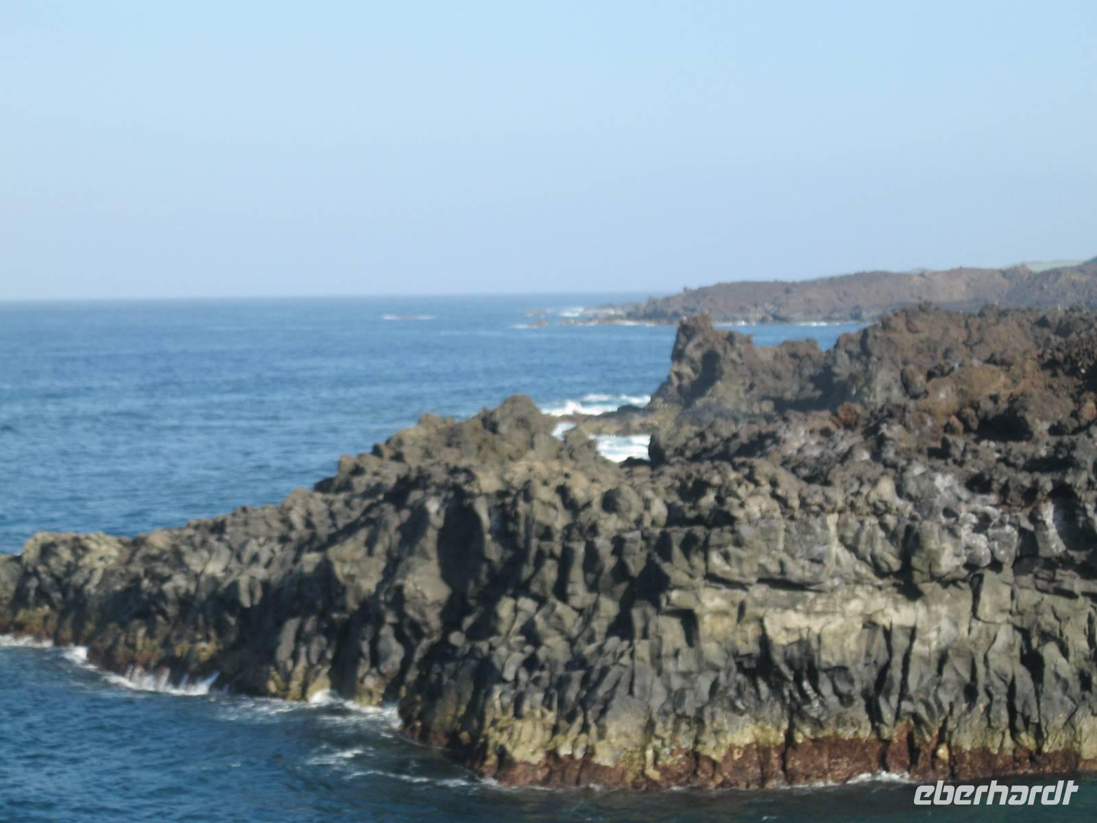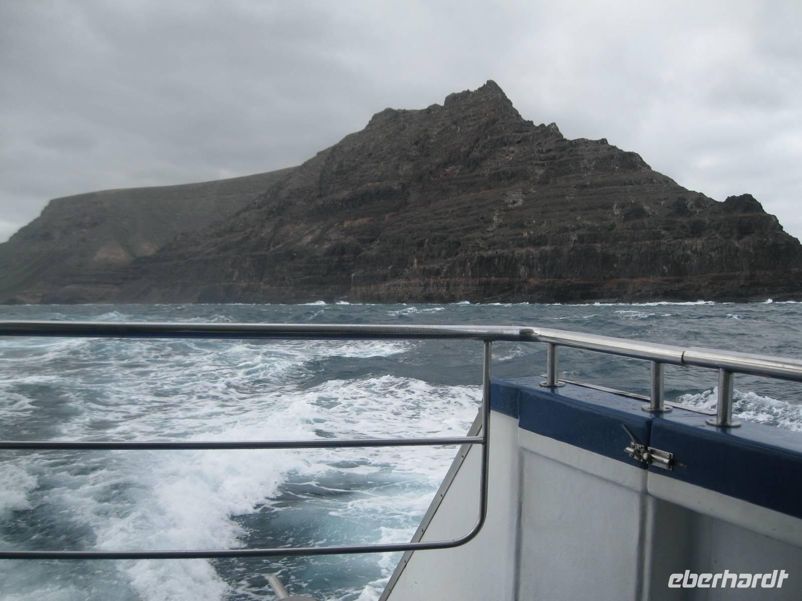 Der heutige Tag begann etwas früher.Wir wollten pünktlich am Fährhafen von Orzola sein und unser Schiff nach Isla Graciosa "entern".Der Atlantik war sehr stürmisch und wir redeten unseren Mägen gut zu.Eigentlich waren wir ja gut behütet.Mit uns im Boot saßen einige Nonnen die, während der Überfahrt, pausenlos den Rosenkranz beteten.Im El Rio wurde die See auch wieder ruhiger u. wir konnten die Einfahrt in den Hafen genießen.Da es zu regnen anfing ,begaben wir uns sofort auf Jeepsafari.Am Fuße des Montana Pedro Barba ging es entlang zum, eigentlich nur noch aus Ferienhäusern bestehenden, Ort Petro Barba.Weiter ging es zur Steilküste die durch die starke Brandung geformt wurde.Unterhalb des Montana Bermeja breiten sich unendlich lange Stände aus und verlocken zum baden.Aber Vorsicht !die Playa de las Conchas ist kreuzgefährlich u.große Warntafeln weisen darauf hin.Wir suchten uns eine ruhige Bucht, mit schönem Sandstrand, zum baden aus-Bahia del Salado.Leider war das Wasser weit draußen und unsere Füße verstanden nun ,daß die Insel aus dem Vulkangestein des Meeres entstanden war.Zurück in der "Inselhauptstadt"versorgten wir uns den Schlüssel zur Fischerkirche Virgen del Mar.Sie ist mit typischen Fischerutensilien, wir Steuerrad als Kanzel ,Schiffsrumpf als Altar,Fischen als Kerzenständer oder Muscheln als Stühle,ausgestattet.Auf der Insel solles die besten Fichrestaurants geben u.dies wollten wir nun probieren.Direkt am Hafen,im Casa Chano,war eine Tafel für uns vorbereite u. wir ließen uns die Köstlichkeiten des Meeres schmecken.Leider wurde es immer kälter u.wir mußten ja auch unsere abenteuerliche Fährüberfahrt nach Lanzarote antreten.Alles in allem ein wirklich gelungener Tag.