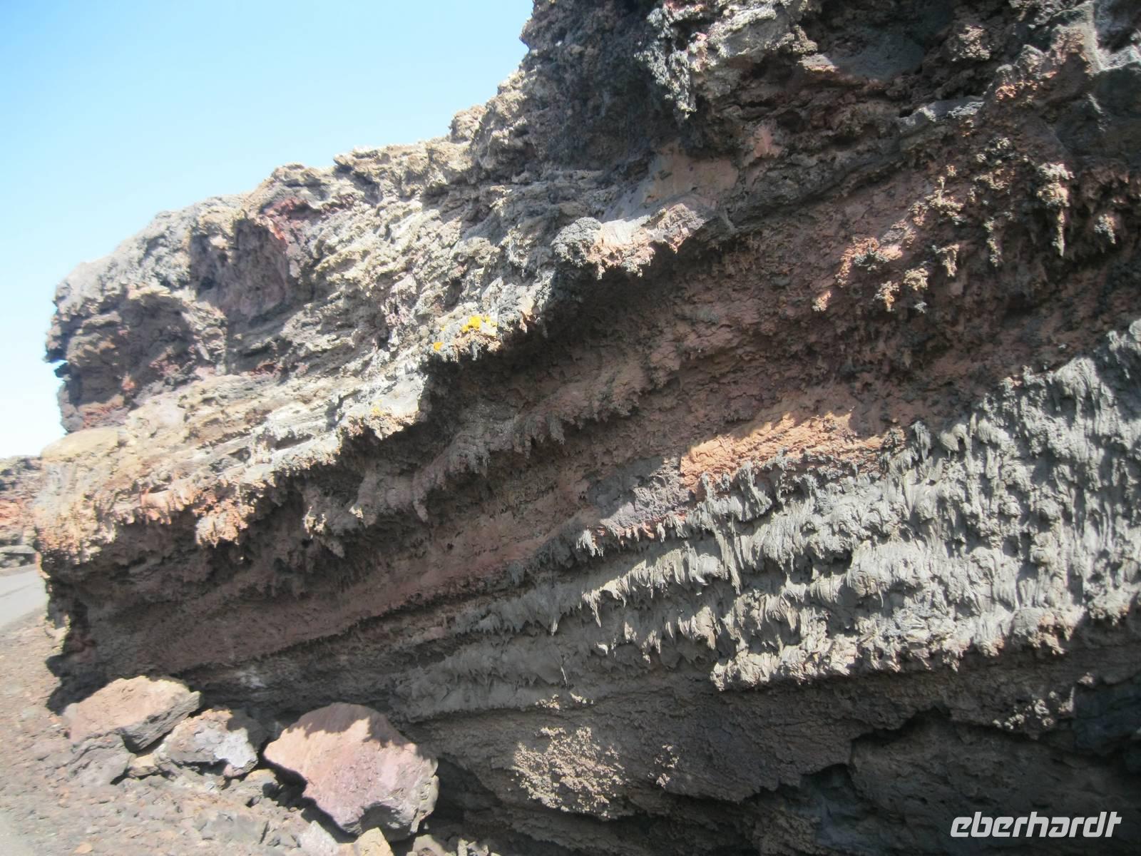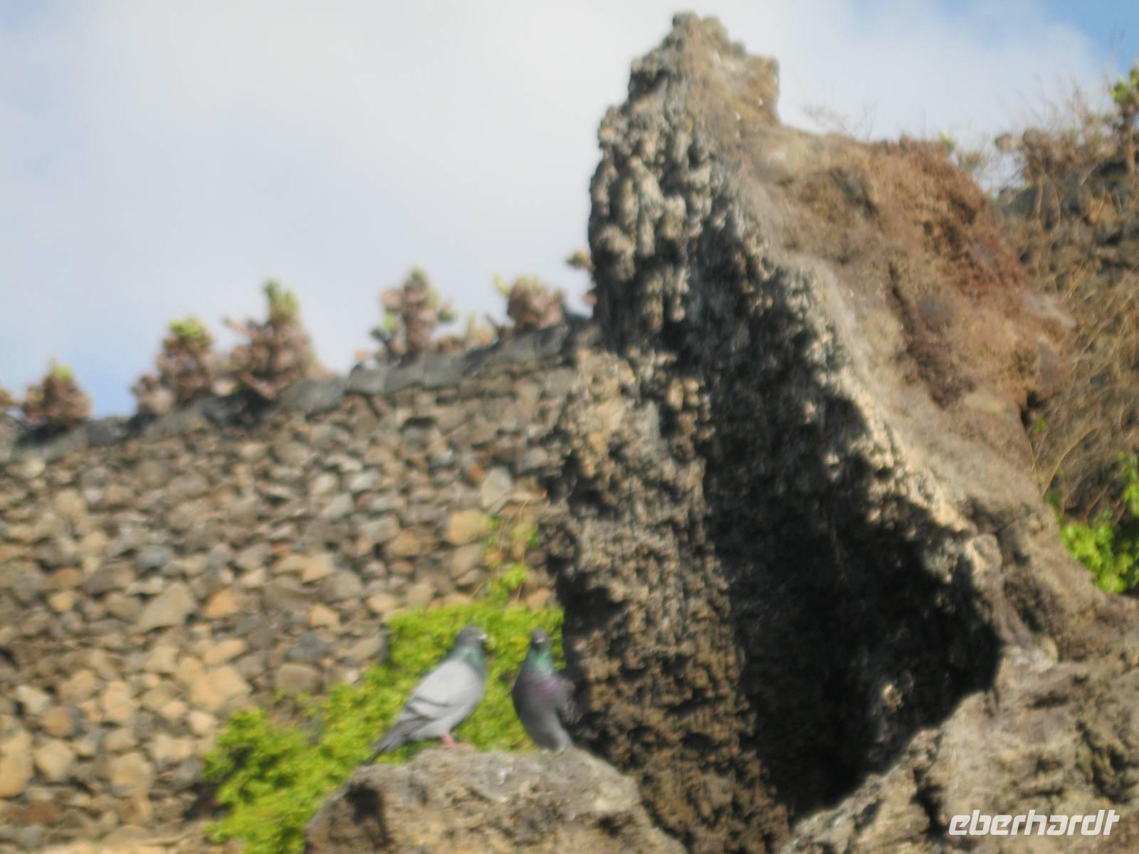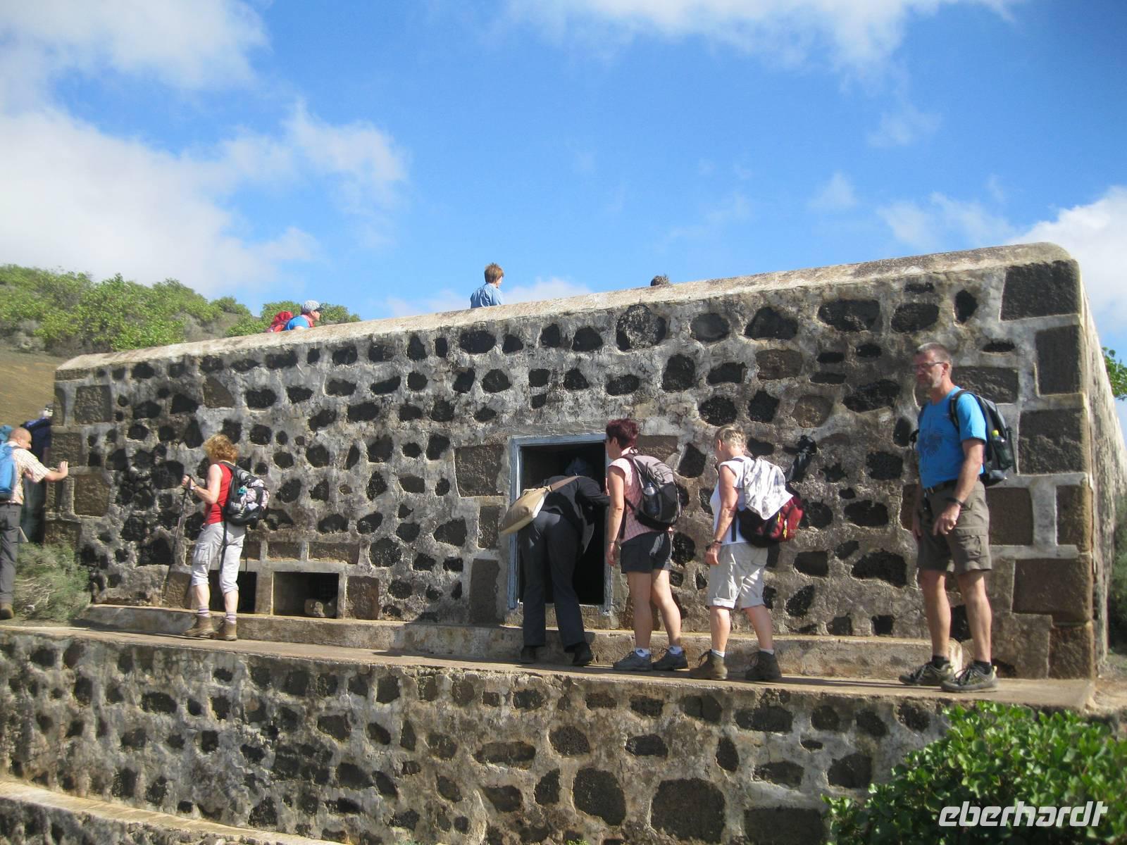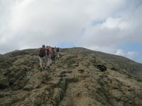 Mit den Jeeps fuhren wir nach Norden, in den Monumento Natural la Corona.Der Ort Ye sollte unser Ausgangspunkt sein.Wir stiegen hinauf und konnten in den Schlund des Kraters sehen.Die Wanderung führte uns nun in halber höhe um den Vulkan Corona ,mit 609m der zweithöchste der Insel.Für Wandergruppen ist der Aufstieg, bis ganz nach oben, verboten.Über Lapilli Felder und vorbei an Zisternen ging es hinunter zu den Klippen von Famara.An der Steilküste suchten wir uns einen romantischen Picknickplatz und sahen hinüber zur Insel Graciosa,die der El Rio von uns trennte.Unser Ausflug war noch nicht zu Ende.Durch das Tal der 1000 Palmen und an Haria (dem letzten Wohnort Manriques)vorbei,über eine atemberaubende Kurvenstraße,erreichten wir, mit viel "Gehupe",das Agrar Museum in Tiagua.Nach einem Rundgang, durch die Geschichte der Landwirtschaft Lanzarotes,wurden uns einfache Köstlichkeiten vom Land serviert.Mojo u.Salzkrustenkartoffeln sowie Wein waren köstlich.Das Federvieh fand dies auch und ließ sich von uns füttern.