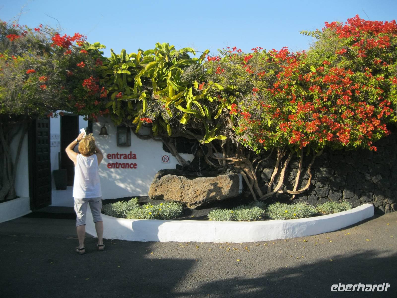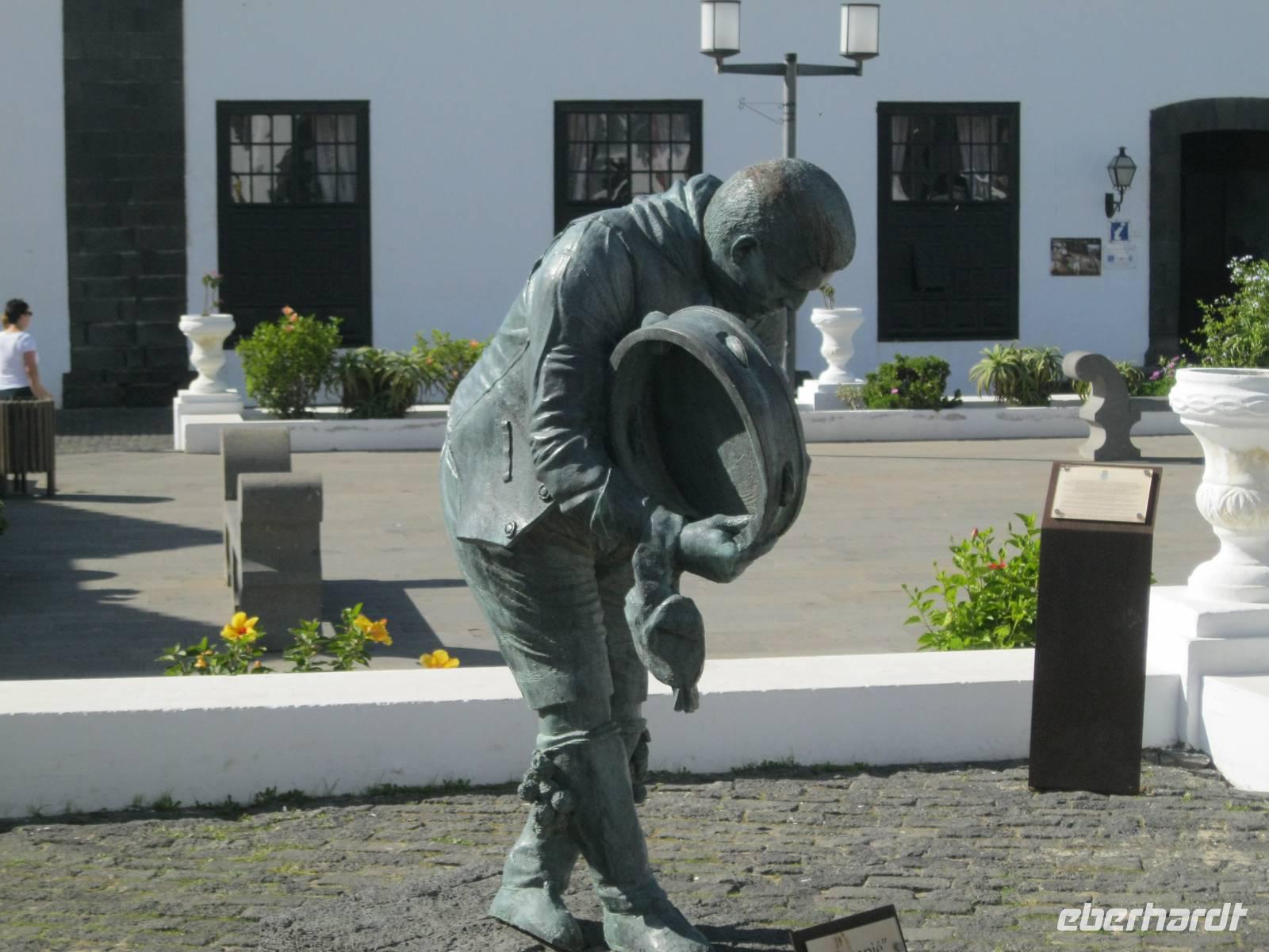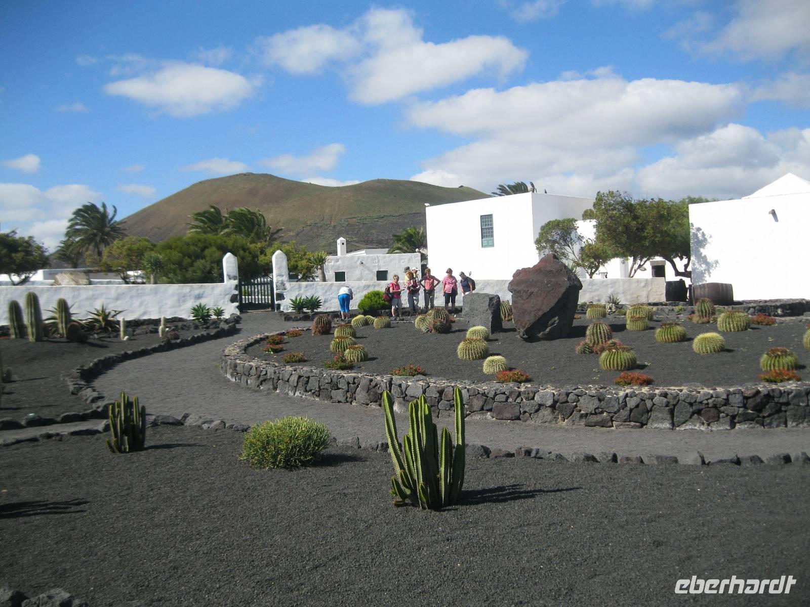 Heute sollten wir erst einmal ,mit Ronny,die Schönheiten der Insel ,per Bus und ohne große Anstengung,kennenlernen.Zuerst fuhren wir, mit einem kleinen Bus,an den Salinas de Janubio vorbei.Diese Anlagen dienen nach wie vor, der nicht ganz so einfachen,Salzgewinnung.An den Klippen von Los Hervideros machten wir einen ersten Fotostop und waren von der Kraft des Wassers beeindruckt ,wie es doch eine Landschaft formen kann.Los Clicos war einen weiteren Stop wert.Links der smaragdgrüne Kratersee,dazwischen schwarzer Lavasand und rechts das Blau des Atlantiks.Die Fotofreunde waren gefordert.Weiter ging es zum Nationalpark Timanfaya,mit dem Teufelchen als Symbol.Zuvor besuchten wir die Dromedare der Insel ,die in der Vergangenheit eine wichtige Rolle ,in der Wirtschaft,spielten und heute eine Touristenattraktion bildet.Oben, am El Diabolo, wurden uns Vorführungen zum vulkanischen Gestein geboten.z.B.wie Wasser in die Luft schnellt ,wie schnell ein Feuer entfacht werden kann und wie lange man heiße Steine in der Hand balancieren kann !!!Danach schloß sich eine Fahrt in die Feuerberge an und spätestens am"Mantel der Jungfrau"wurden die Fotoapparate gezückt.Mancha blanca,dort ,wo durch Gebete 1736 der Lavastrom zum stehen gebracht wurde,steht heute die berühmteste Kirche u.ein Kreuz der Insel.Die Insel wurde aber auch von Cesar Manrique (einem Sohn der Insel)stark geprägt.So bestaunten wir sein, aus ausrangierten Trinkwasserbehältern alter Fischerboote, gestaltetes Bauernmonument und genehmigten uns, in dieser wunderbaren Umgebung, einen Tapasteller und Wein.Teguise ,die ehemalige Inselhauptstadt,brachte uns einen zusätzlichen Besichtigungsstop ein.Der 1989 von C.Manrique,inmitten von Oputienfeldern u.einem ausgedienten Steinbruch,angelegte Kaktusgarten war unser nächstes Ziel.Leider wenig Zeit.Nach einem Espresso unter der Windmühle ging es nun endlich auch in das Wohnhaus von Manrique nach Tahiche.Hier schuf er für sich,seine Freunde und Mitstreiter und letztlich für uns Touristen ,ein einmaliges Refugium.Nach so vielen verschiedenen Nuancen der Insel kehrten wir erschöpft ins Hotel zurück.