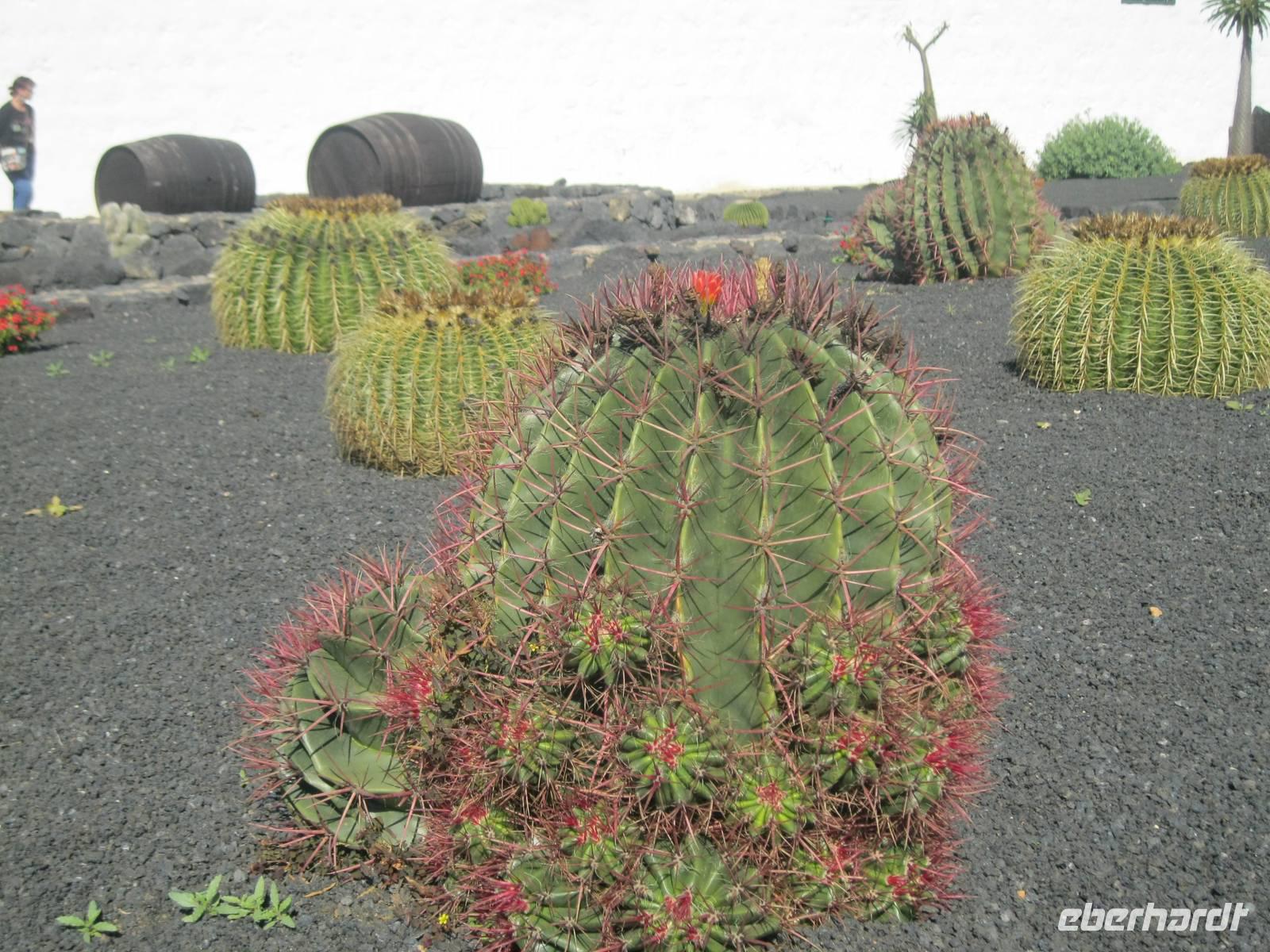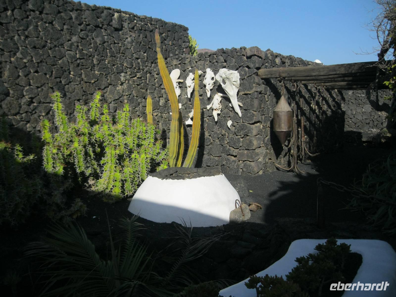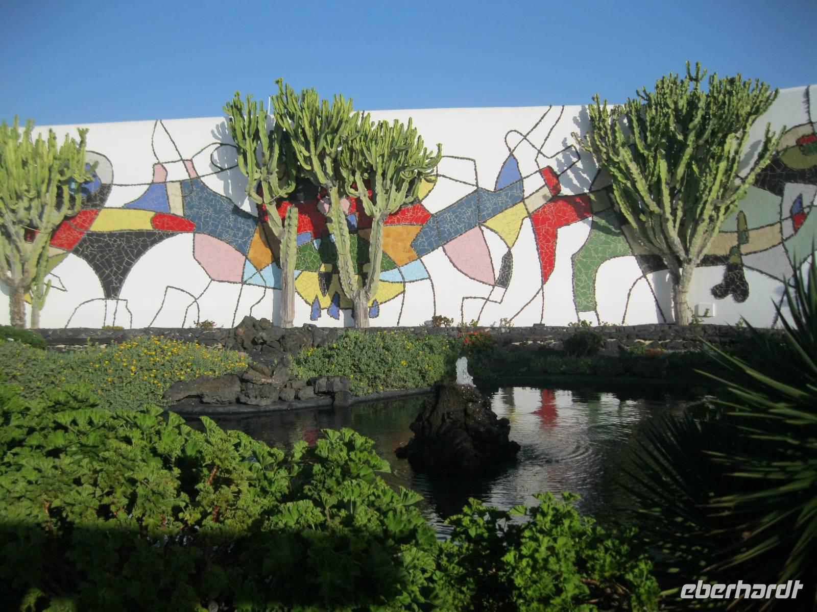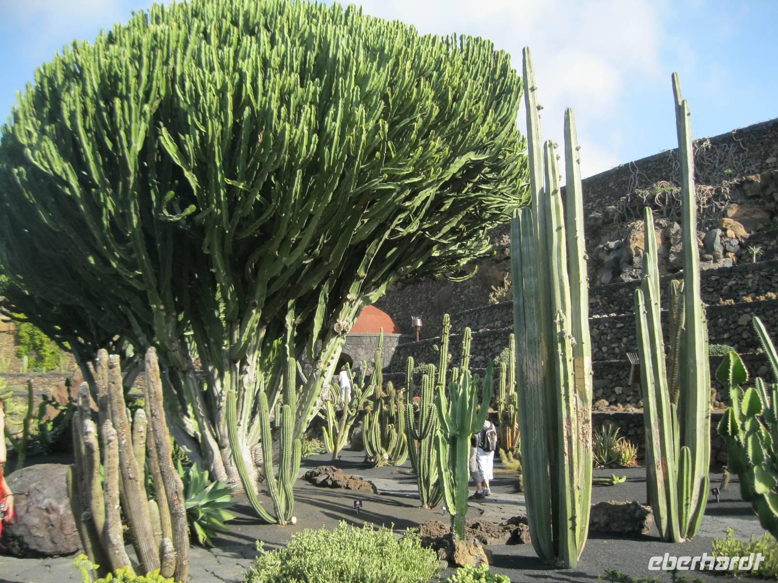 Heute sollten wir erst einmal ,mit Ronny,die Schönheiten der Insel ,per Bus und ohne große Anstengung,kennenlernen.Zuerst fuhren wir, mit einem kleinen Bus,an den Salinas de Janubio vorbei.Diese Anlagen dienen nach wie vor, der nicht ganz so einfachen,Salzgewinnung.An den Klippen von Los Hervideros machten wir einen ersten Fotostop und waren von der Kraft des Wassers beeindruckt ,wie es doch eine Landschaft formen kann.Los Clicos war einen weiteren Stop wert.Links der smaragdgrüne Kratersee,dazwischen schwarzer Lavasand und rechts das Blau des Atlantiks.Die Fotofreunde waren gefordert.Weiter ging es zum Nationalpark Timanfaya,mit dem Teufelchen als Symbol.Zuvor besuchten wir die Dromedare der Insel ,die in der Vergangenheit eine wichtige Rolle ,in der Wirtschaft,spielten und heute eine Touristenattraktion bildet.Oben, am El Diabolo, wurden uns Vorführungen zum vulkanischen Gestein geboten.z.B.wie Wasser in die Luft schnellt ,wie schnell ein Feuer entfacht werden kann und wie lange man heiße Steine in der Hand balancieren kann !!!Danach schloß sich eine Fahrt in die Feuerberge an und spätestens am"Mantel der Jungfrau"wurden die Fotoapparate gezückt.Mancha blanca,dort ,wo durch Gebete 1736 der Lavastrom zum stehen gebracht wurde,steht heute die berühmteste Kirche u.ein Kreuz der Insel.Die Insel wurde aber auch von Cesar Manrique (einem Sohn der Insel)stark geprägt.So bestaunten wir sein, aus ausrangierten Trinkwasserbehältern alter Fischerboote, gestaltetes Bauernmonument und genehmigten uns, in dieser wunderbaren Umgebung, einen Tapasteller und Wein.Teguise ,die ehemalige Inselhauptstadt,brachte uns einen zusätzlichen Besichtigungsstop ein.Der 1989 von C.Manrique,inmitten von Oputienfeldern u.einem ausgedienten Steinbruch,angelegte Kaktusgarten war unser nächstes Ziel.Leider wenig Zeit.Nach einem Espresso unter der Windmühle ging es nun endlich auch in das Wohnhaus von Manrique nach Tahiche.Hier schuf er für sich,seine Freunde und Mitstreiter und letztlich für uns Touristen ,ein einmaliges Refugium.Nach so vielen verschiedenen Nuancen der Insel kehrten wir erschöpft ins Hotel zurück.