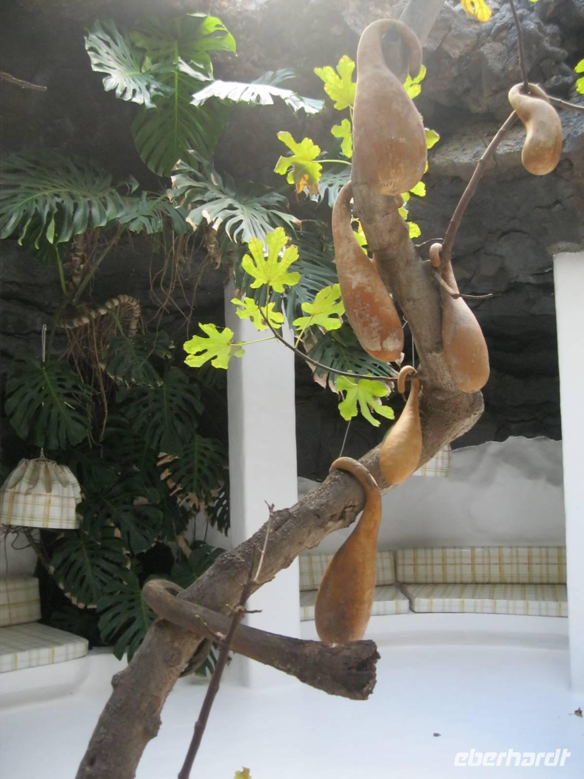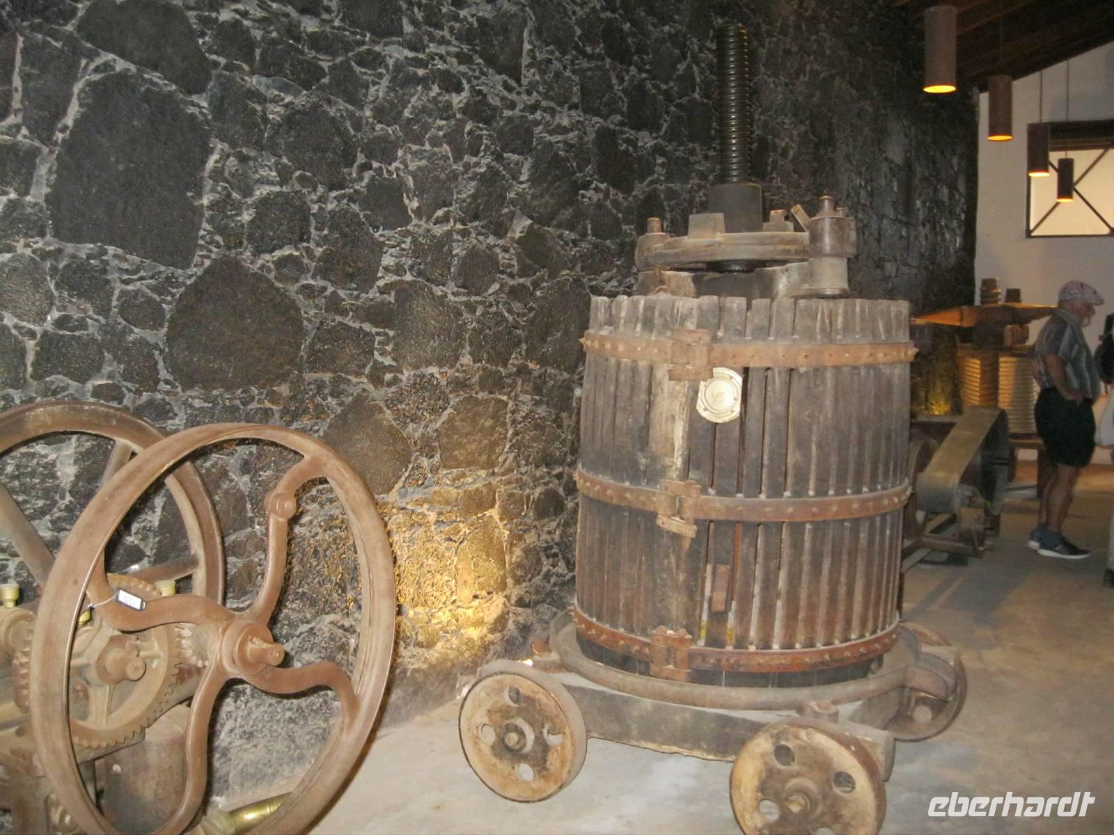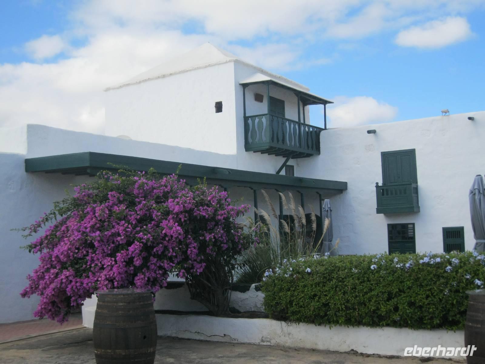 Die heutige Tour sollte etwas ruhiger werden.Wir fuhren in das einzigartige Weinbaugebiet von La Geria.Bereits 1960 wurden die von Menschenhand geschaffenen Trichter und Mauern,in denen die Weinreben geschützt sind,in der Lavalandschaft ,unter Schutz gestellt.Wir streiften über die Lapilli Felder und schauten einigen Weinbauern bei der Arbeit zu.Eine kleine Gruppe wollte trotzdem hoch hinaus und bestieg den Hausberg der Gegend.Wir "Restlichen"kehrten in einer Bodega ein und ließen uns unter alten Eukalyptus Bäumen die Spezialität des Hauses,Moscatel Wein,schmecken.Als die Gruppe wieder vereint war ,fuhren wir in die älteste u.traditionsreichste Kellerei der Insel.Seit 1775 hat man sich dem Weinanbau verschrieben.Kein geringerer als Manrique hat das Logo der Firma"EL Grifo"entworfen.Im kleinen Museo del Vino bekamen wir einen Einblick in die Geschichte des Weinbaus vor Ort.Am ältesten Weinstock der Insel wurde ein Gruppenfoto aufgenommen bevor es zur Weinprobe überging.Der Rotwein war sehr "herb",aber der Sekt sowie die Weißweine fanden unseren Beifall.Gut gelaunt fuhren wir in Richtung Hotel.Einige Gäste wollten sich die Altstadt u.den Hafen von Puerto del Carmen anschauen u.stiegen unterwegs aus.Nach dem Abendessen verabredeten wir uns in einem Pub an der Strandpromenade,wo Lifemusik uns zum tanzen animierte.