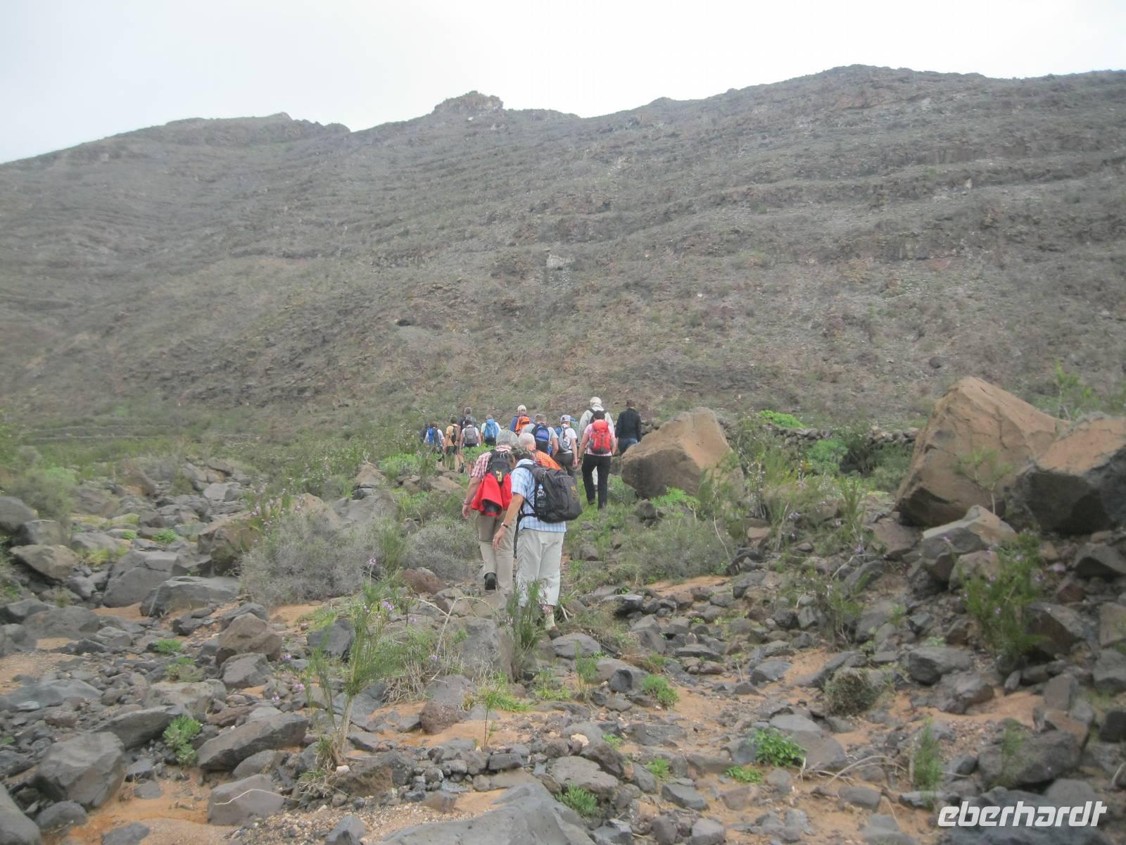 Windwarnung!!! Gruppen dürfen nicht auf die Berge rauf.Okey,wir hatten schon eine andere Tour geplant.Wir fuhren nach Guatiza und begannen unsere Wanderung im Naturschutz- Tal Tenegüime.So sahen wir auch die grüne Seite der Insel.Am Ende des Tales stiegen wir nach oben u.auf den Klippen wude gepicknickt.Über eine Hochfläche,hier beobachteten wir eine seltene Kragentrappe,erreichten wir unersn Ausgangspunkt.Da der geplante Kochkurs ausgefallen,uns aber die Mojo Soßen mundeten,hatte Joachim eine Überraschung geplant.Die Jeeps brachten uns in die Galeria Artenmala u.da wurden ,bei einen Glas Wein u.guter Stimmung ,Mojos kreiert.Wir bedankten u.verabschiedeten uns bei Carmen , Joachim u. Team für die umfassend gute Betreuung unserer Wanderwoche. Dank auch an die stara Baba ,die uns mit belegten Wanderbroten verwöhnte. Mit Cava sind wir auf Lanzarote empfangen wurden u.mit Cava verabschiedeten wir uns von der Insel.