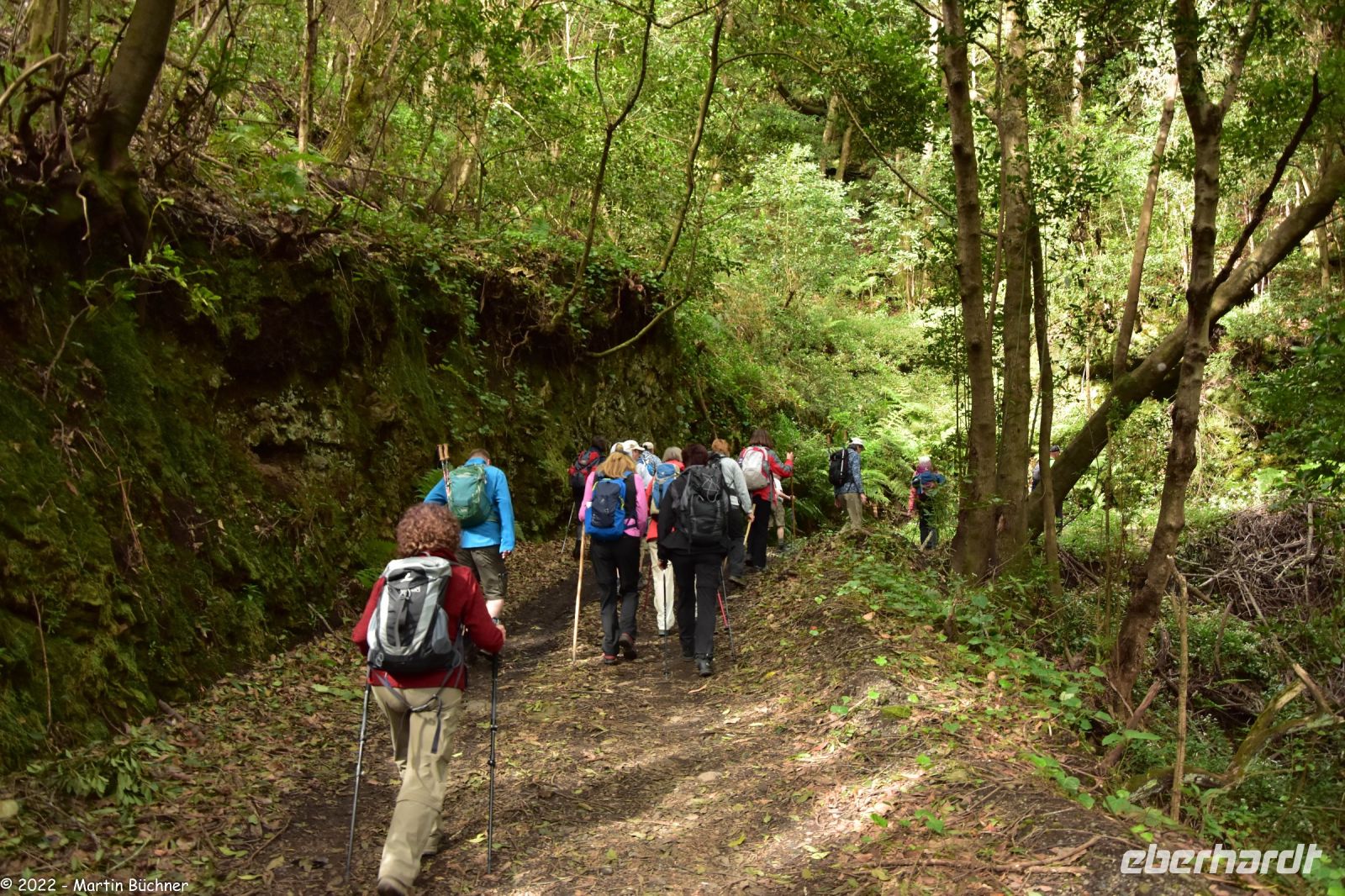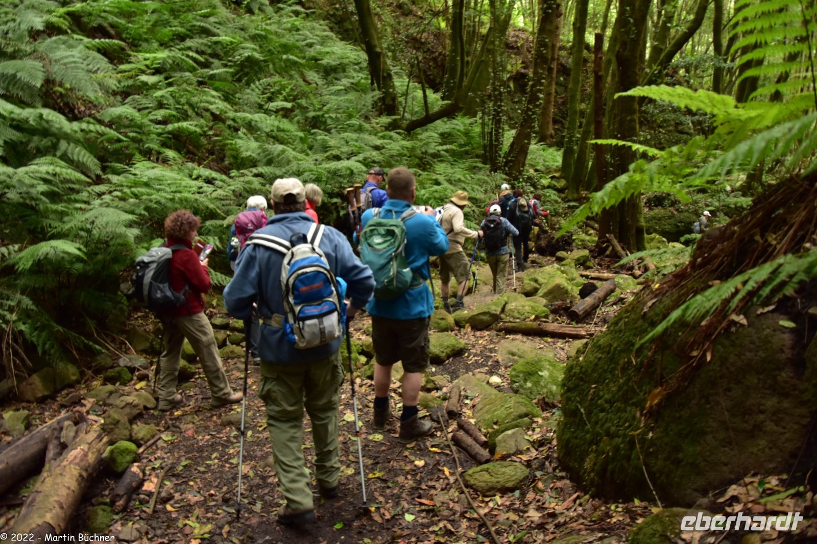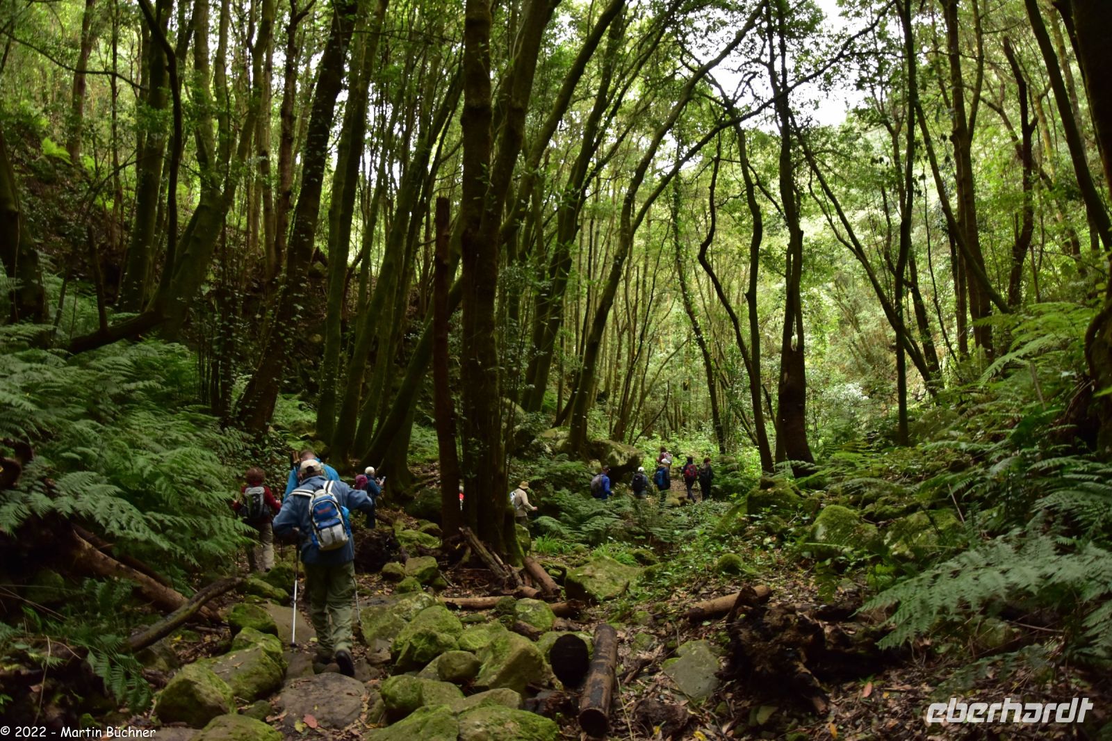 Insbesondere in den niedrigeren Lagen haben sich spezielle Nebel-Lorbeer-Wälder gebildet. Urtümlich wirkt die Landschaft unserer ersten Wanderung. Unterschiedlich hochgewachsene urwaldartige Lorbeerarten dominieren die Szenerie.